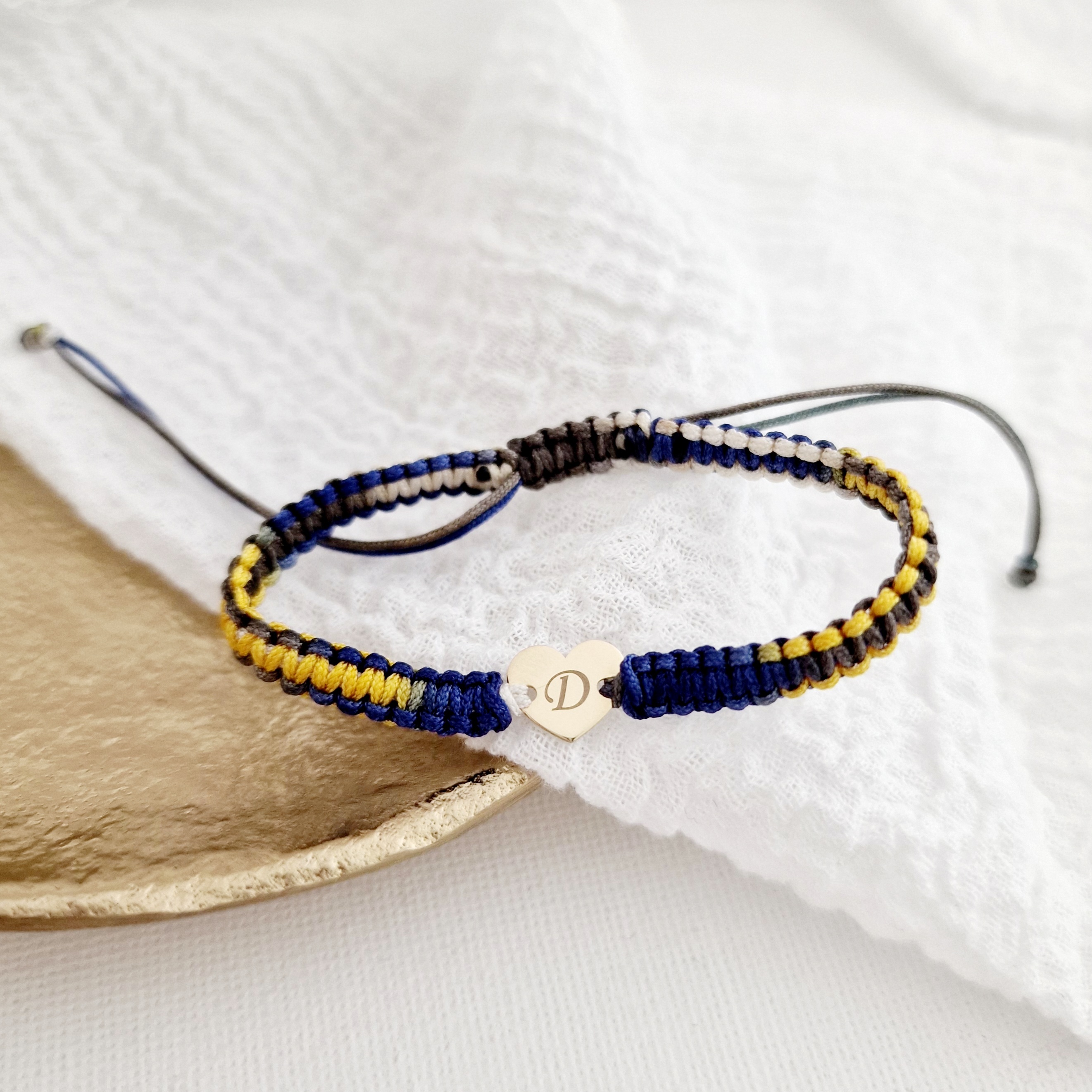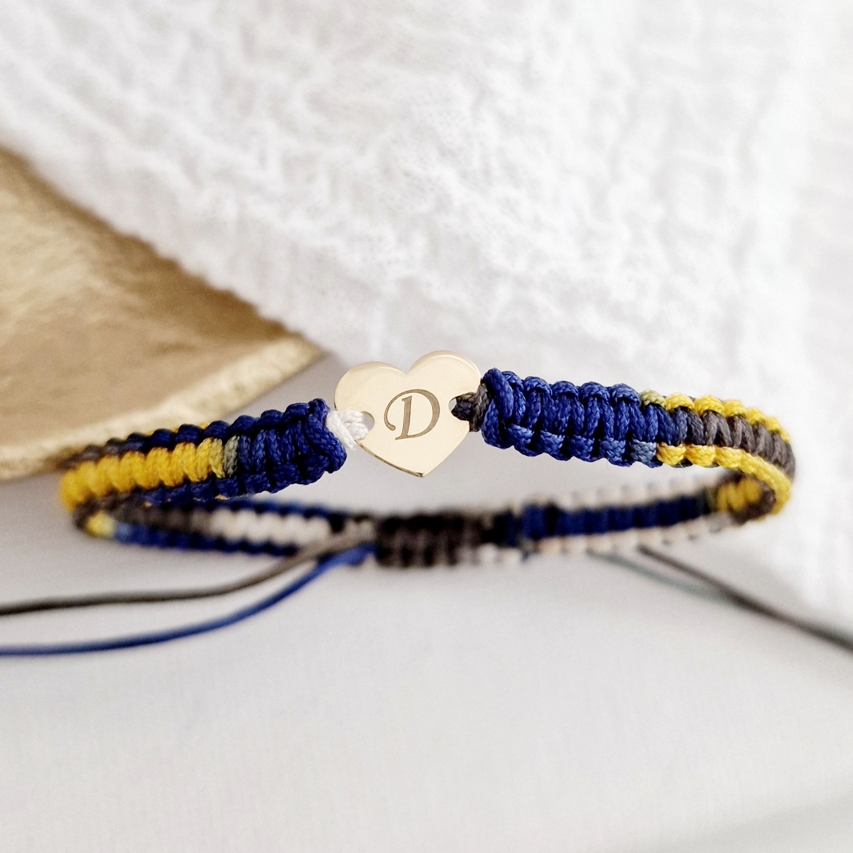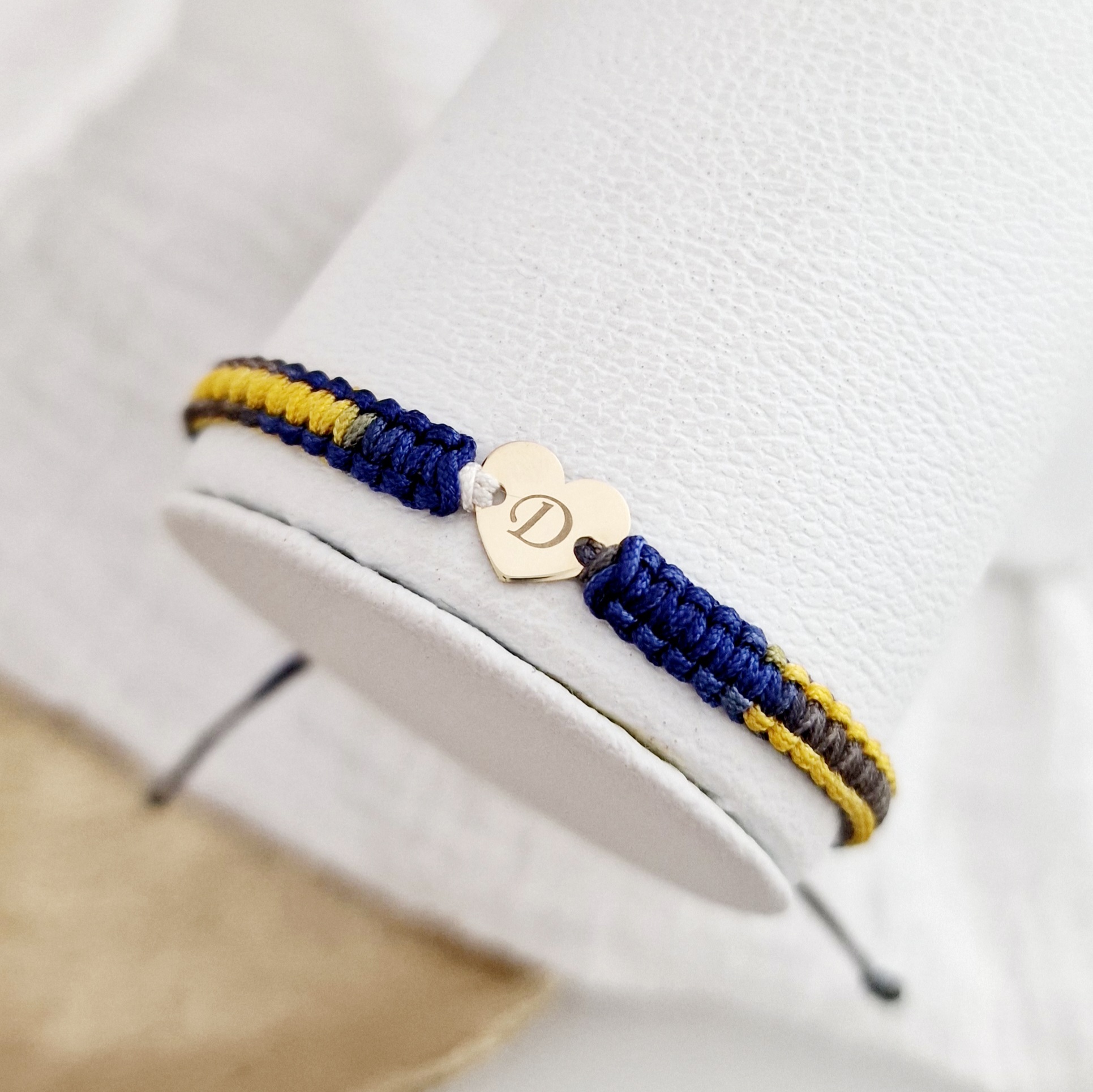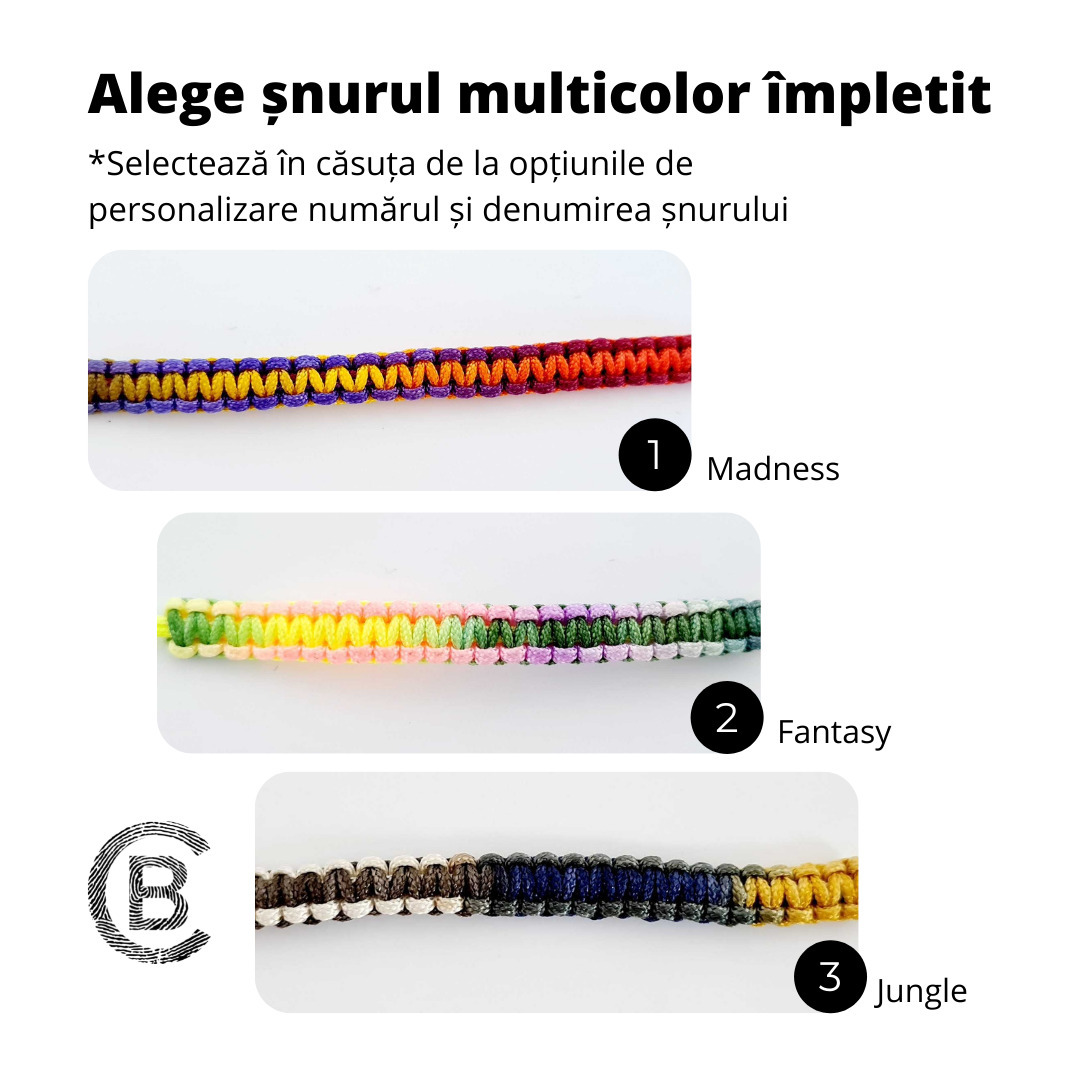 Bratara personalizata cu snur impletit multicolor - Pandantiv inima - Aur Galben 14K