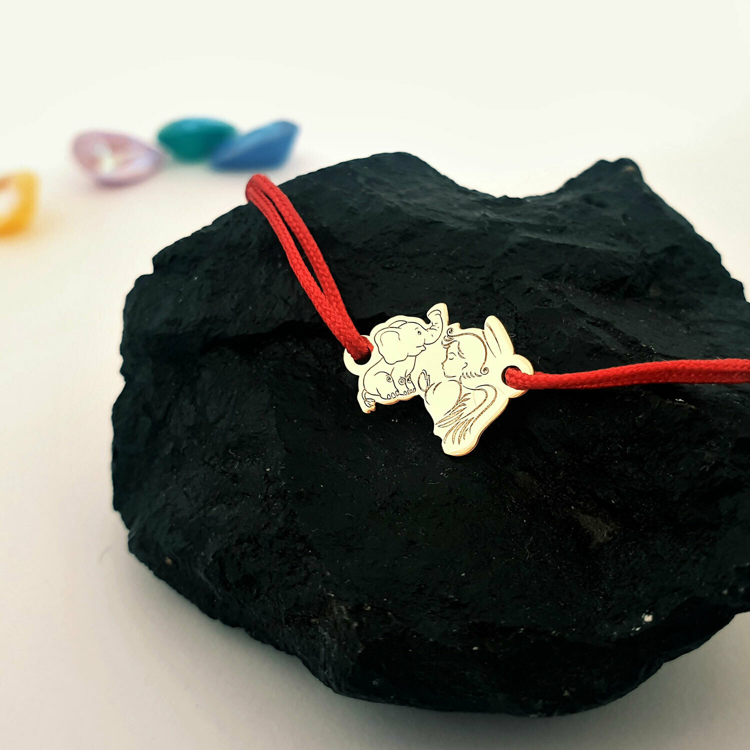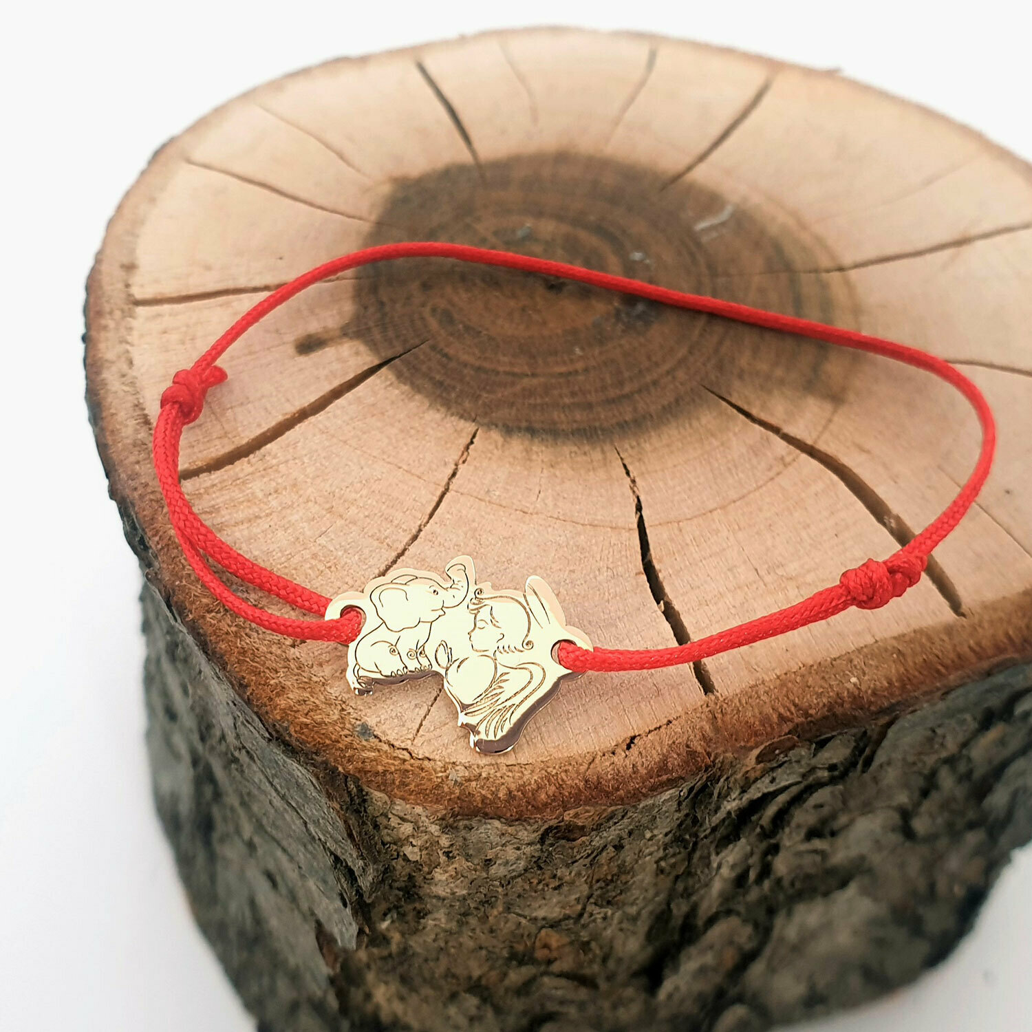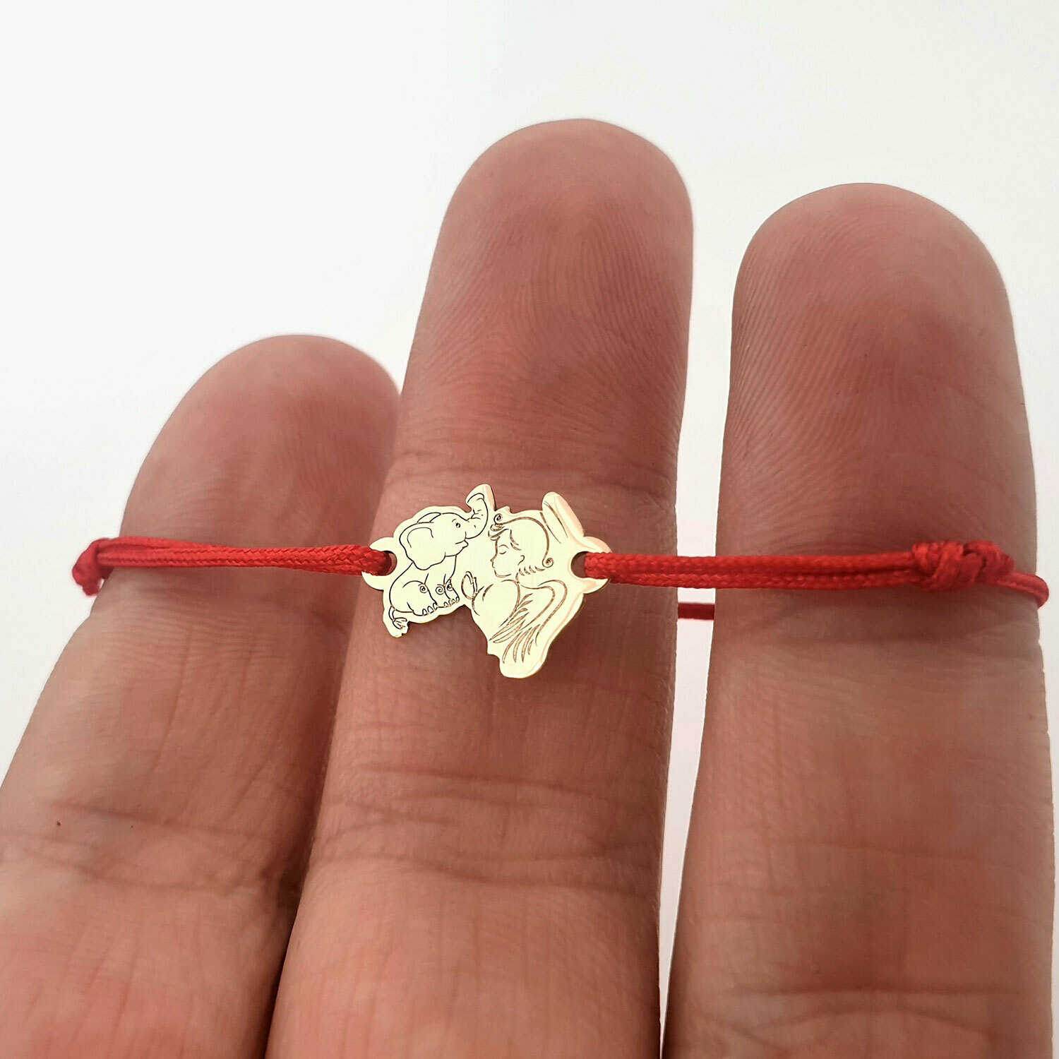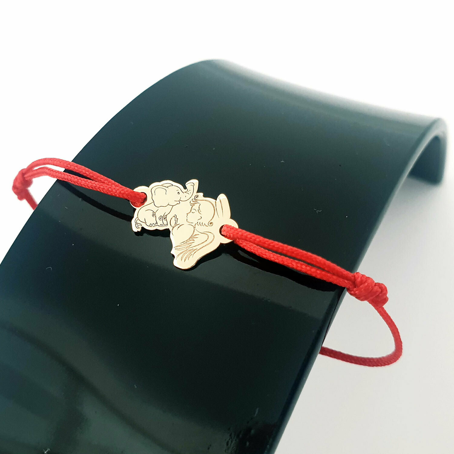 Bratara personalizata - Ingeras si elefant - Aur Galben 14K - snur reglabil