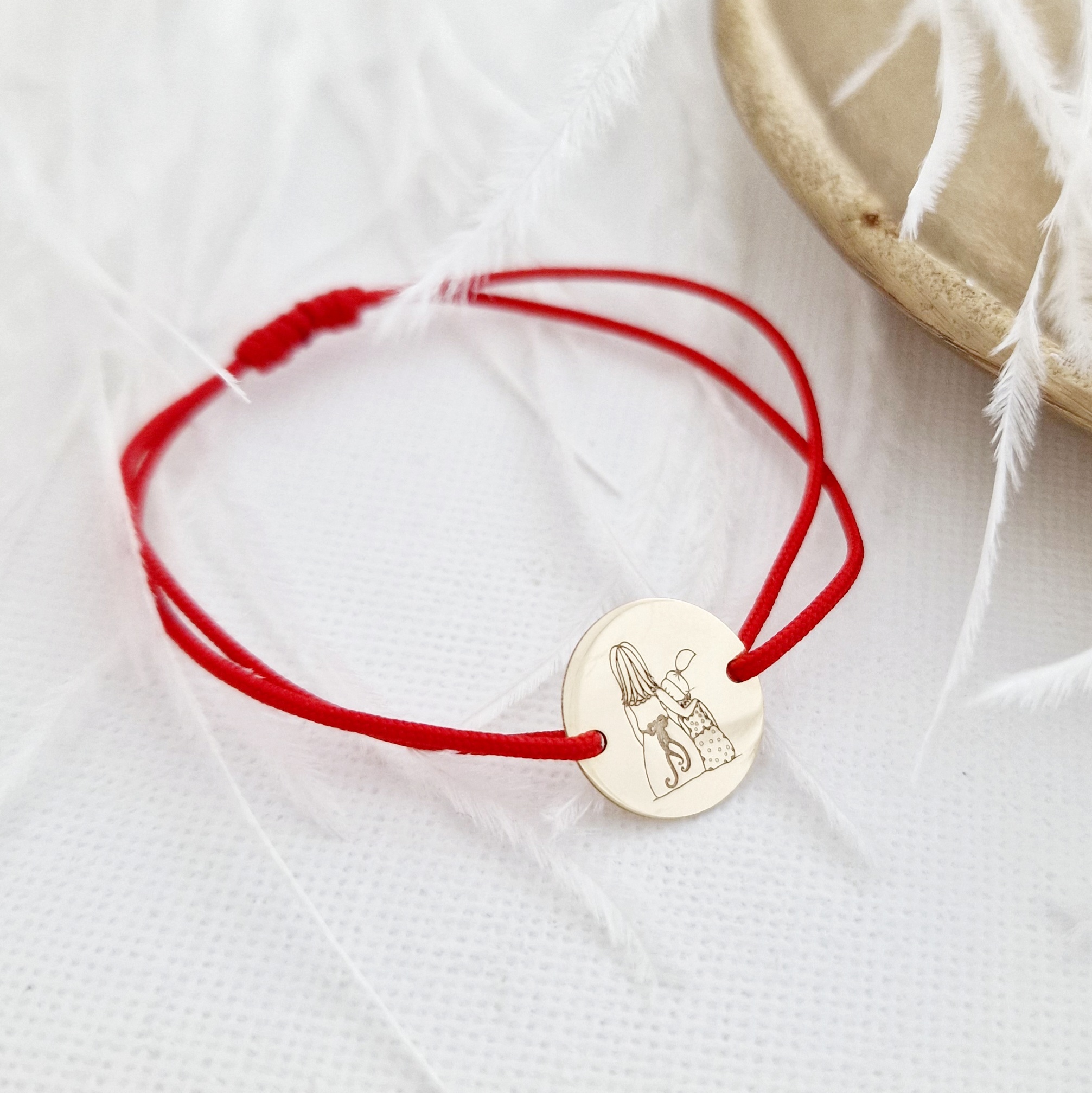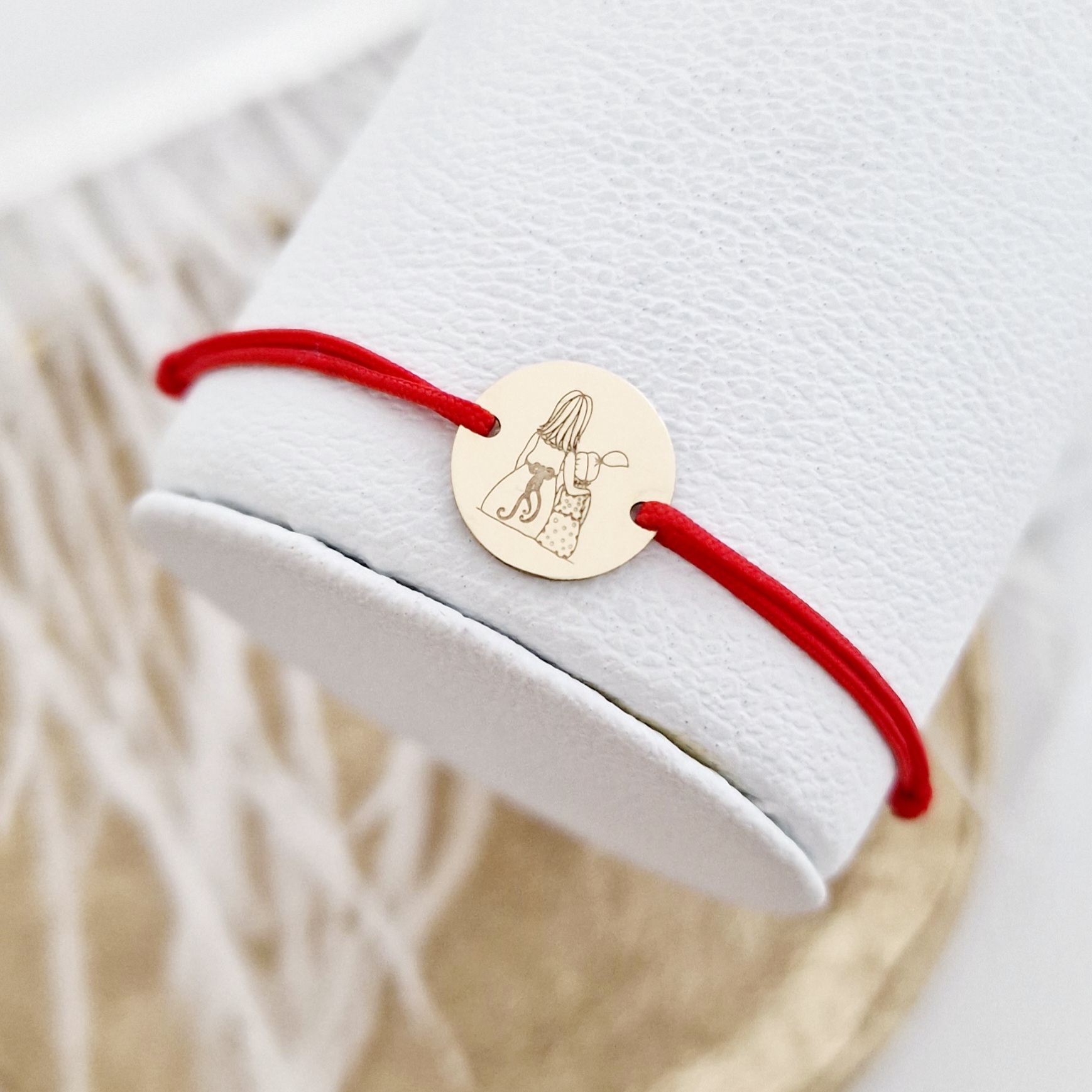 Bratara personalizata - Siluete spate - Mama si fiica - Banut de 12 mm - Aur Galben 14K - snur reglabil