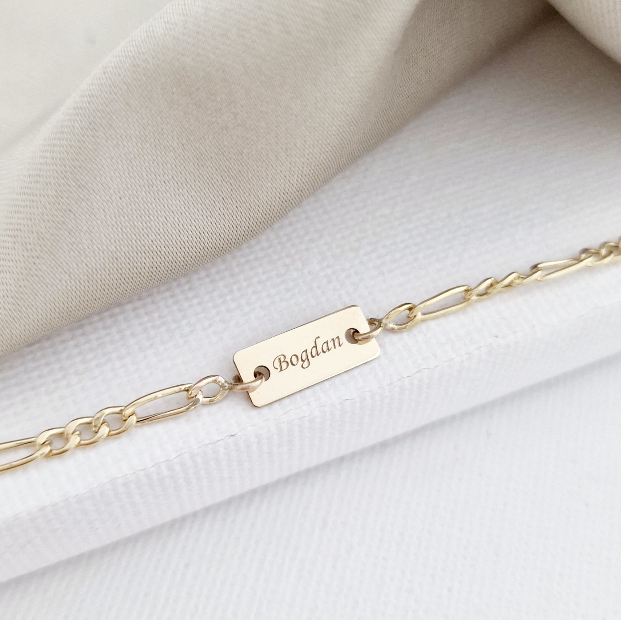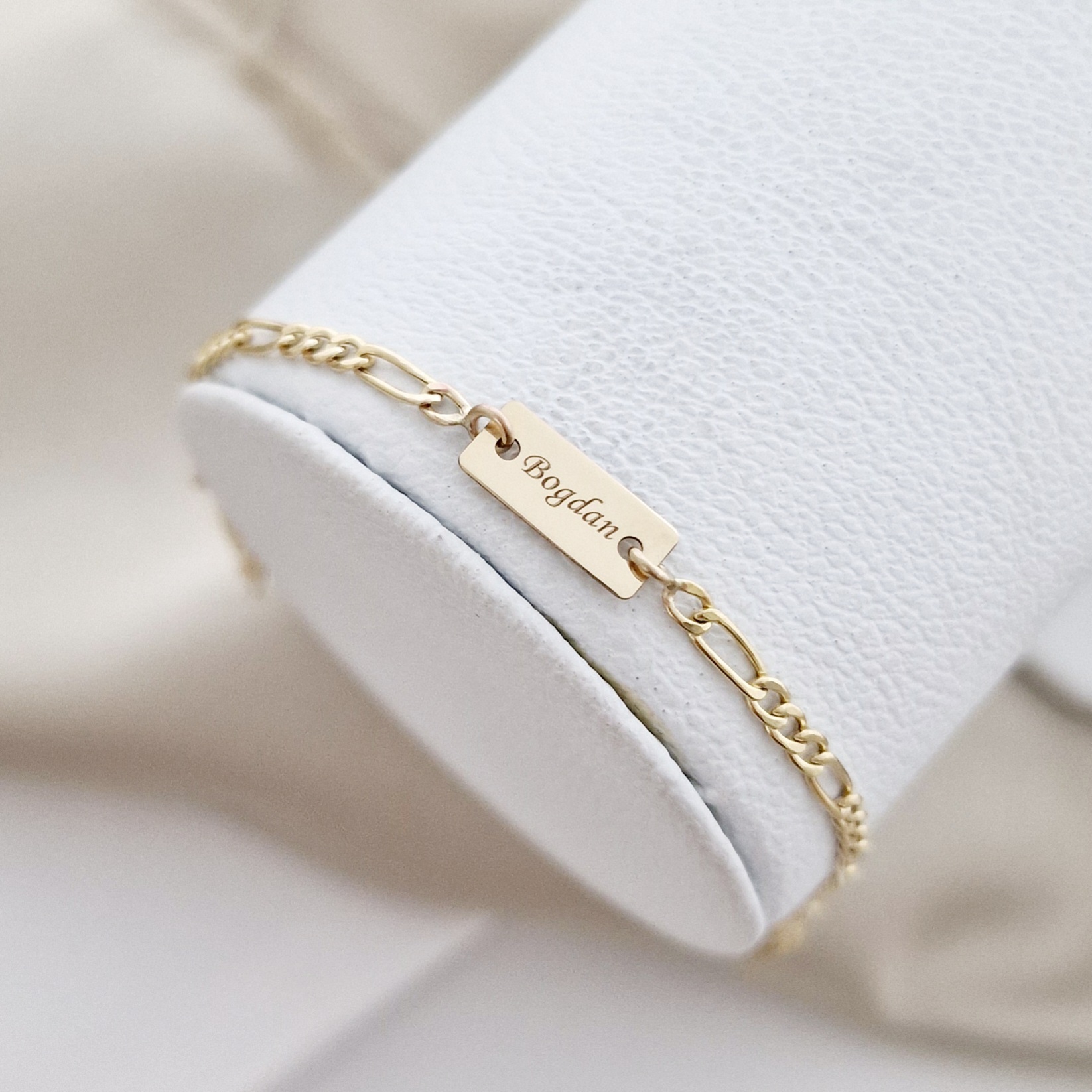 Bratara Placuta cu nume - Aur Galben 14k - Cu lantisor fata/baiat
