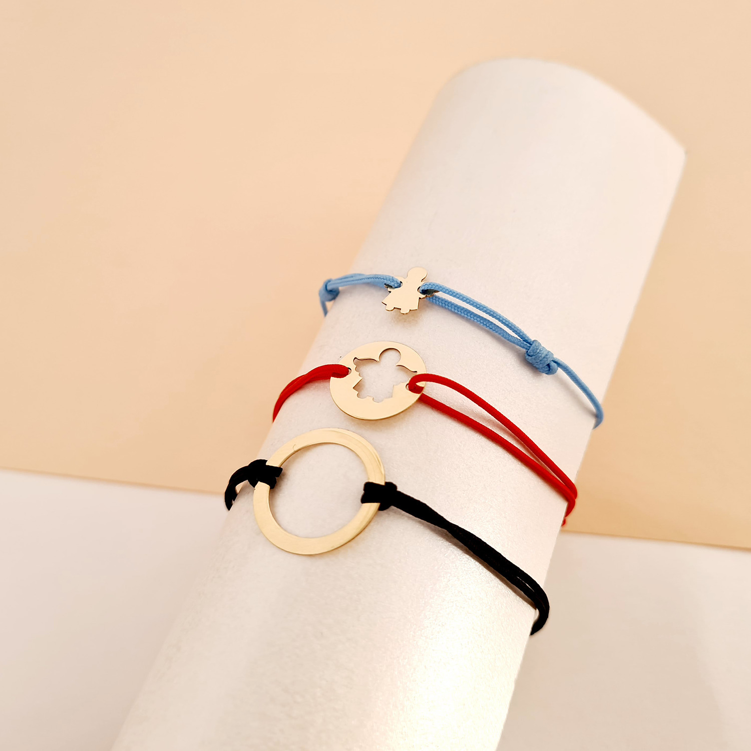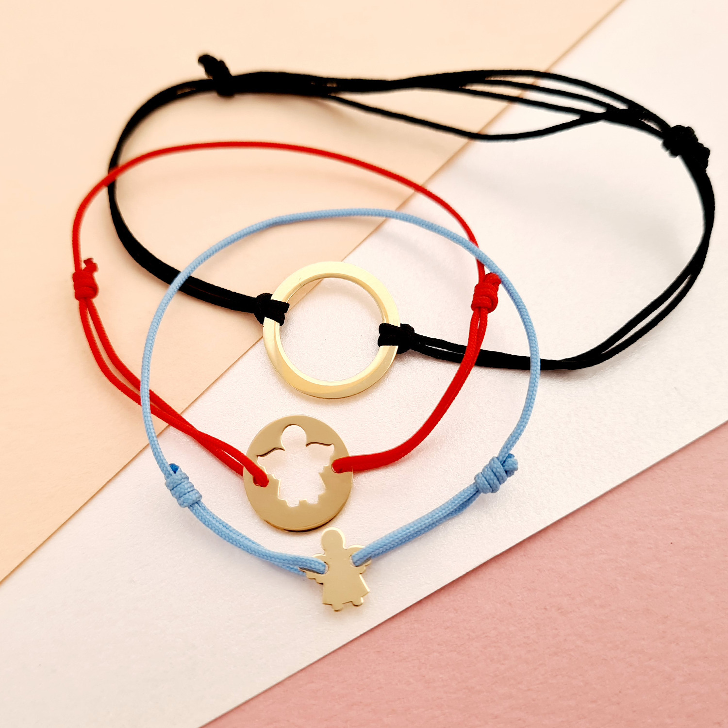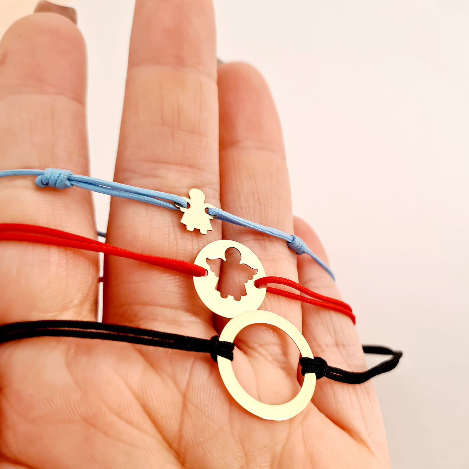 - Bratara copilului sub forma de ingeras are dimensiunea de 9 mm si este atasata de un snur reglabil, diverse culori.