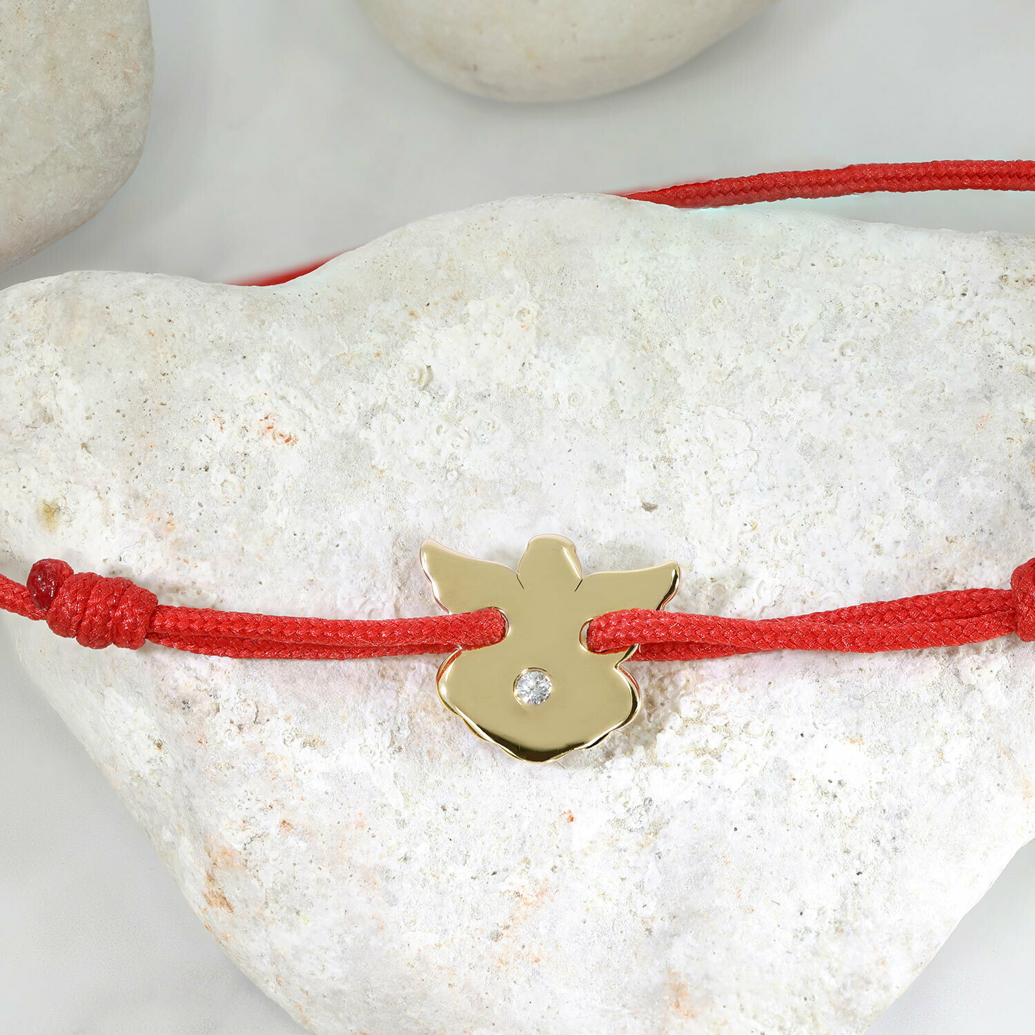 Bratara cu Diamant natural - Model Inger stilizat - Aur Galben/Roz/Alb 14K si snur reglabil