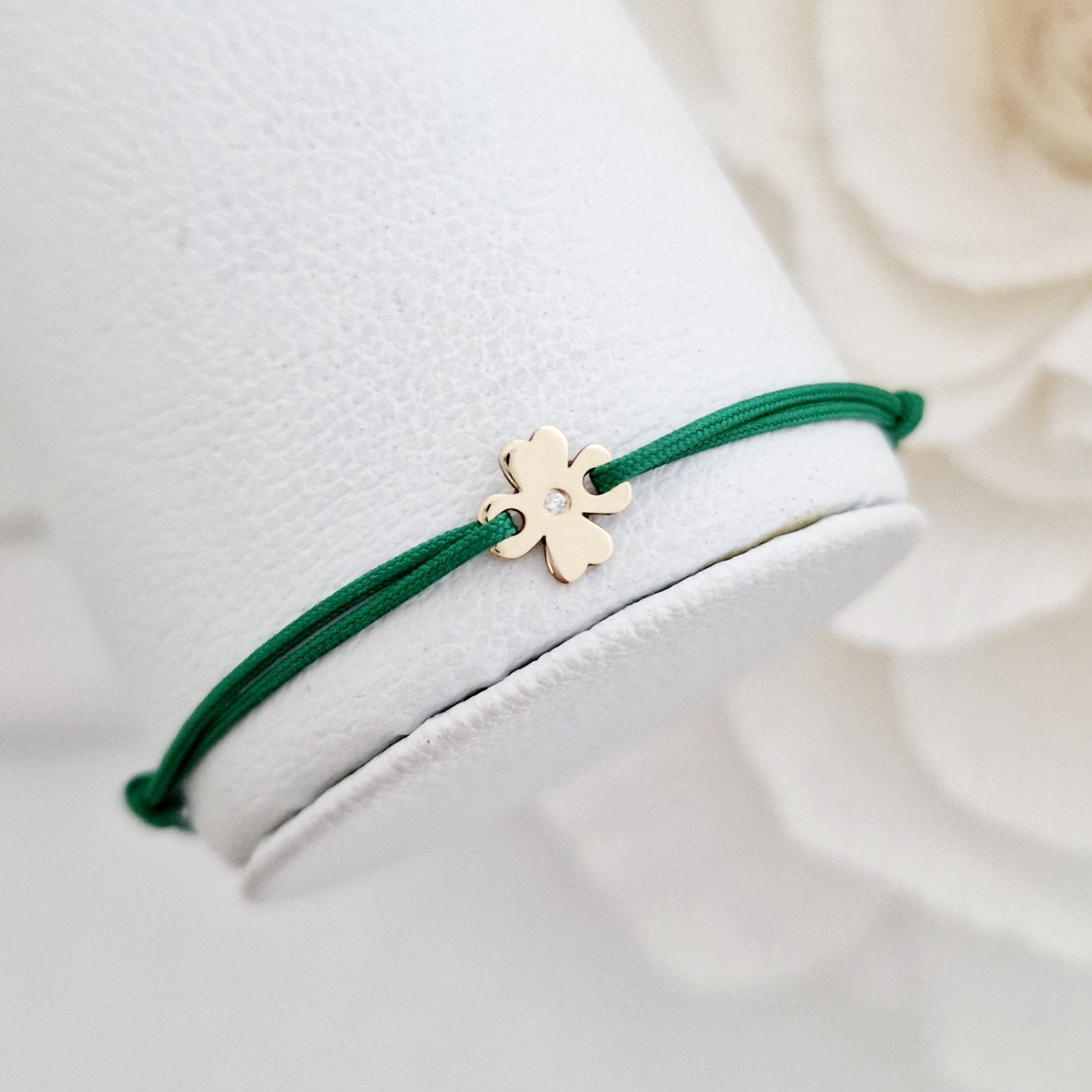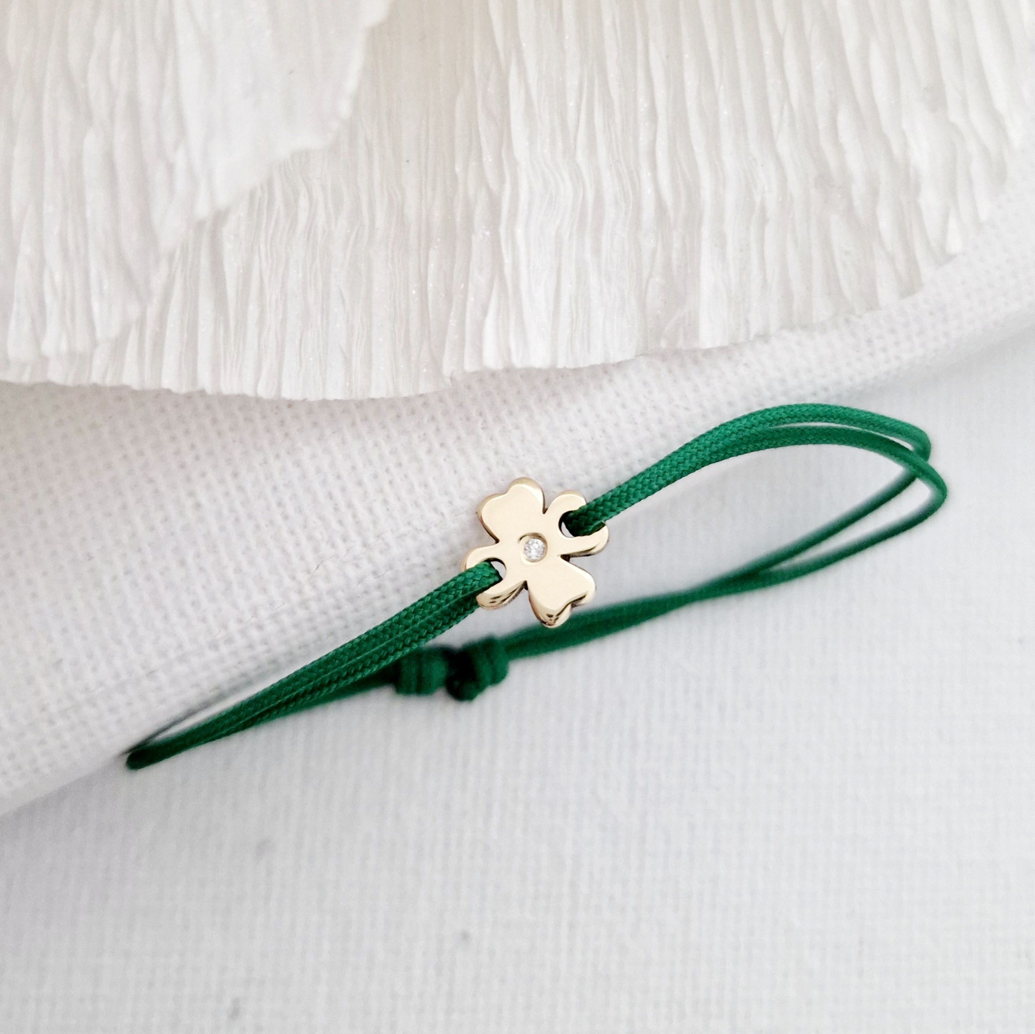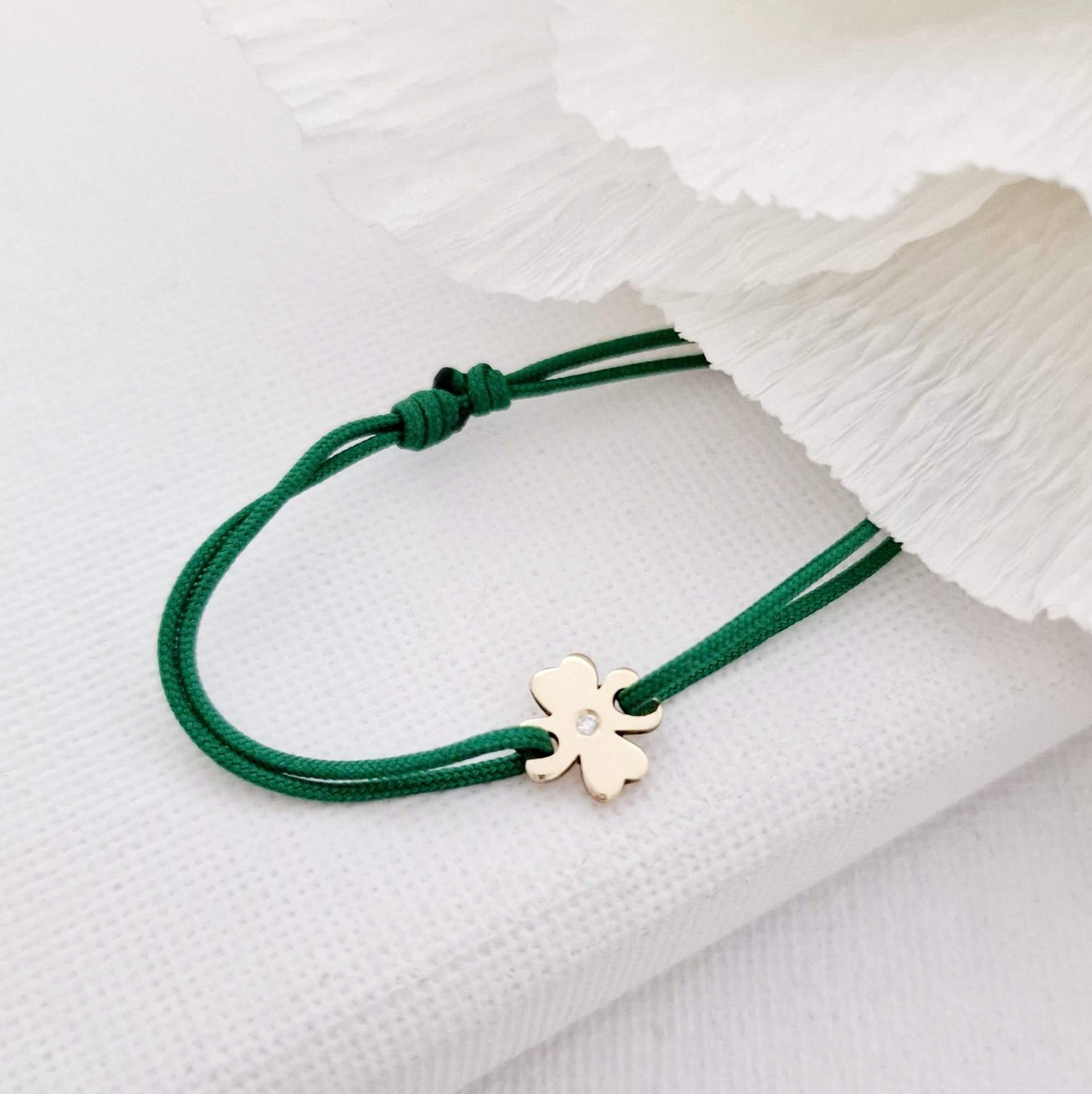 Bratara cu Diamant natural - Model trifoi - Aur Galben/Roz/Alb 14K si snur reglabil