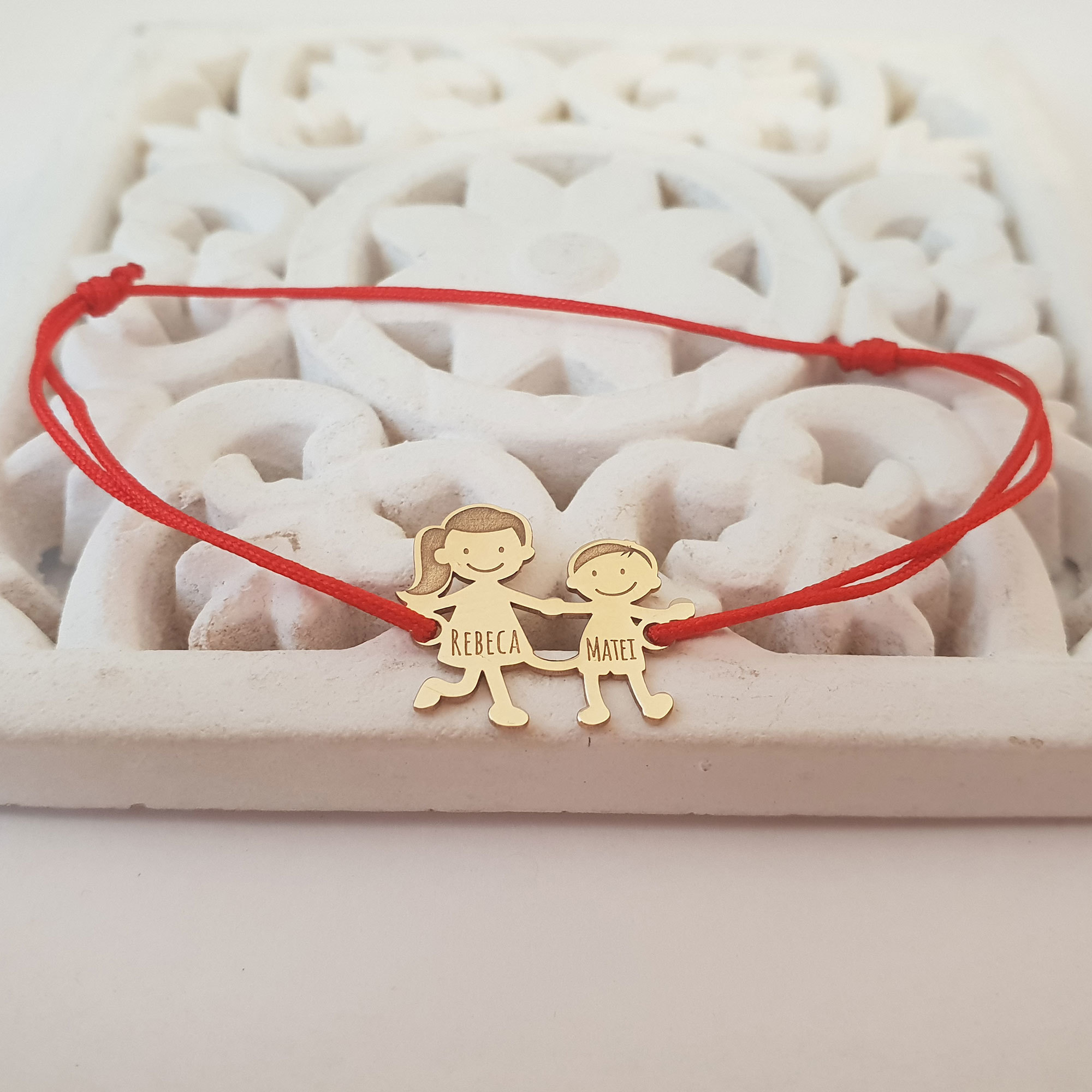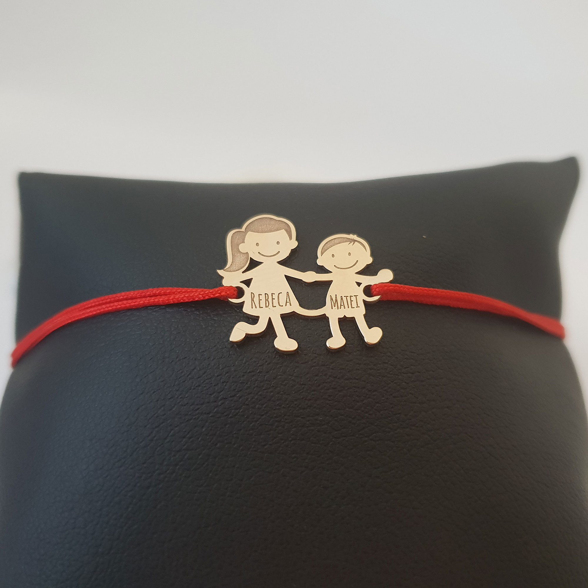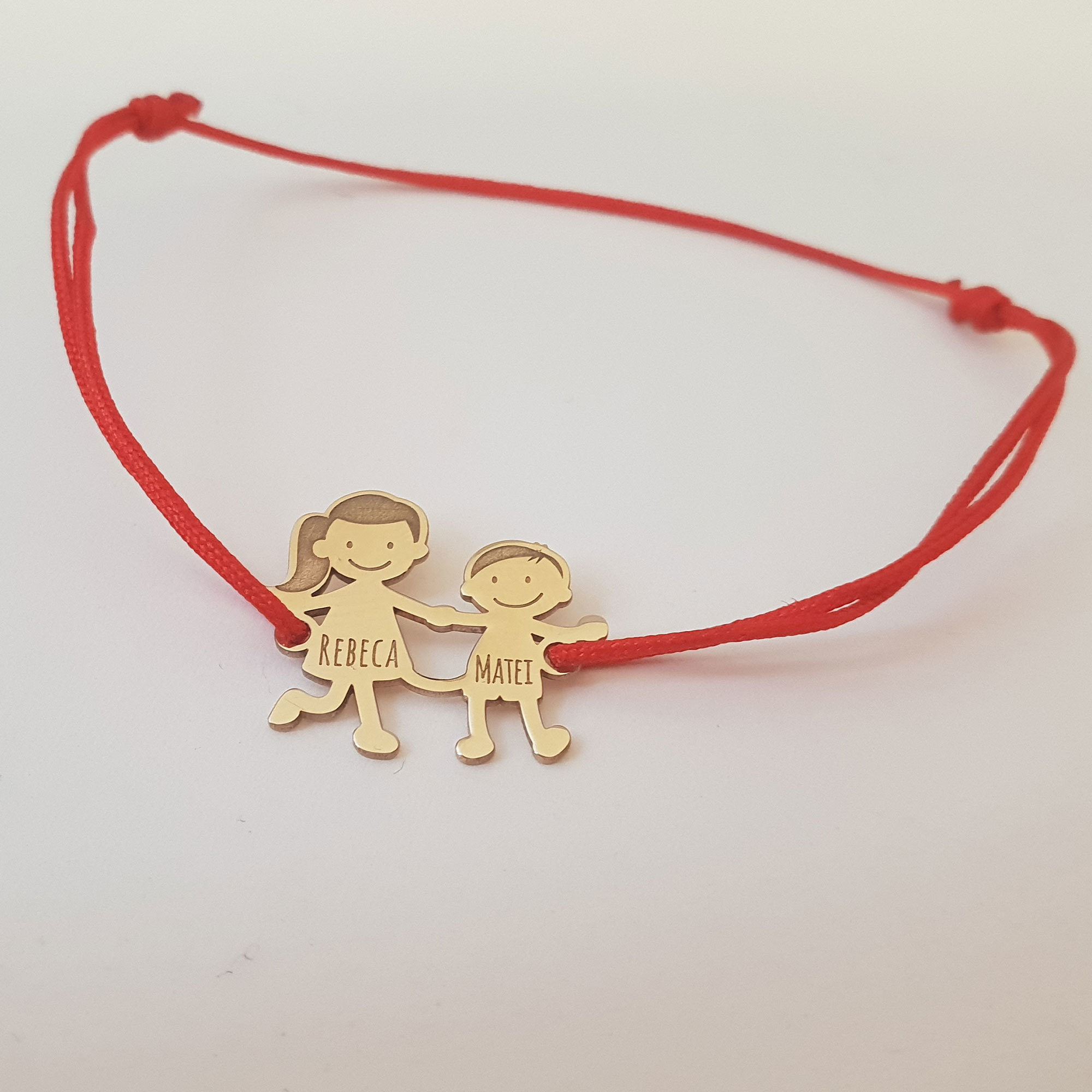 Bratara Familie - 2 Membri - pandant Aur Galben 14K - snur matase vegetala reglabil