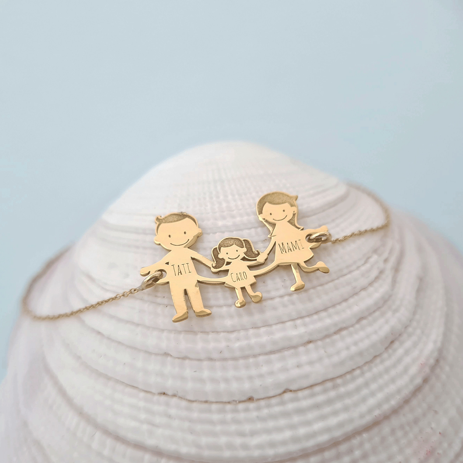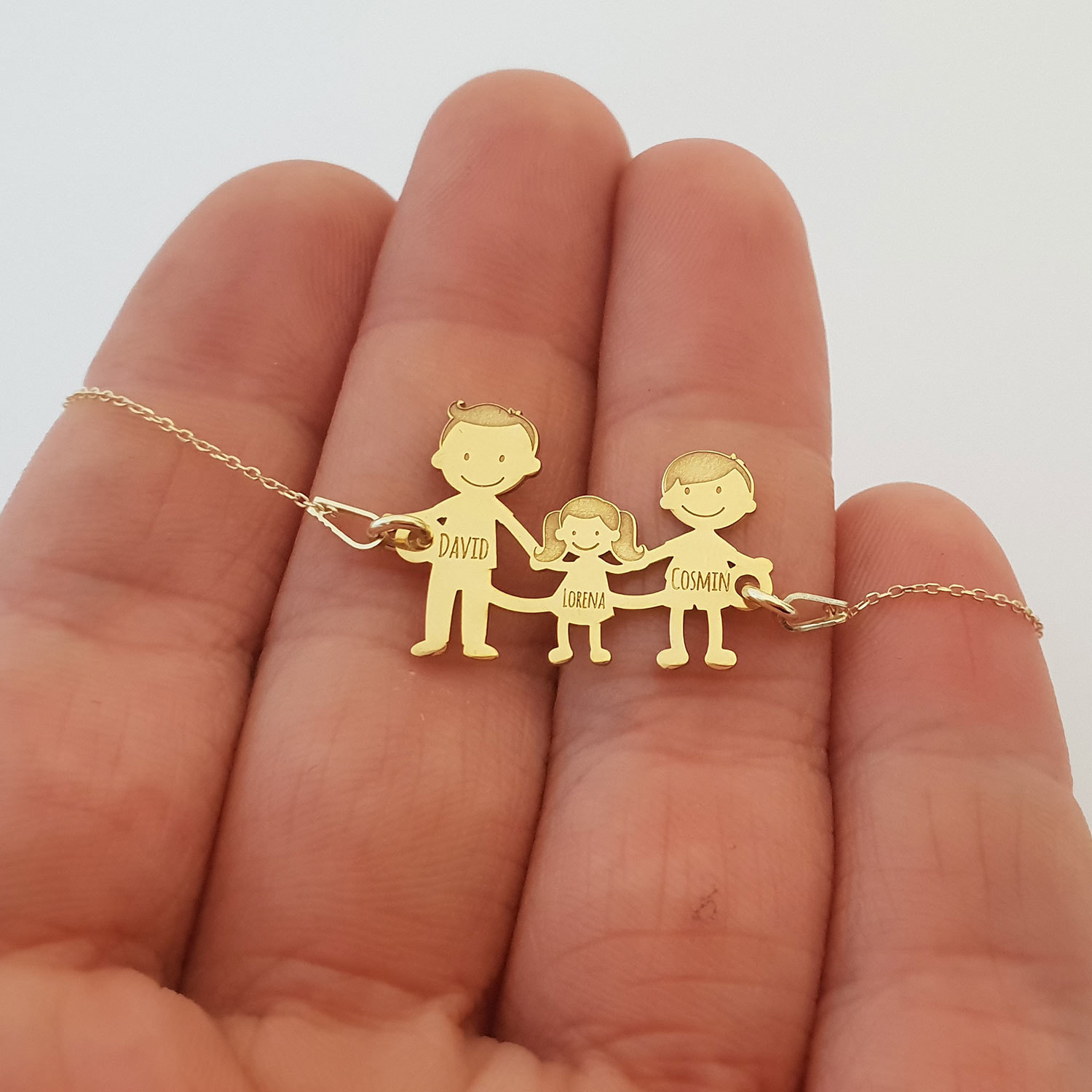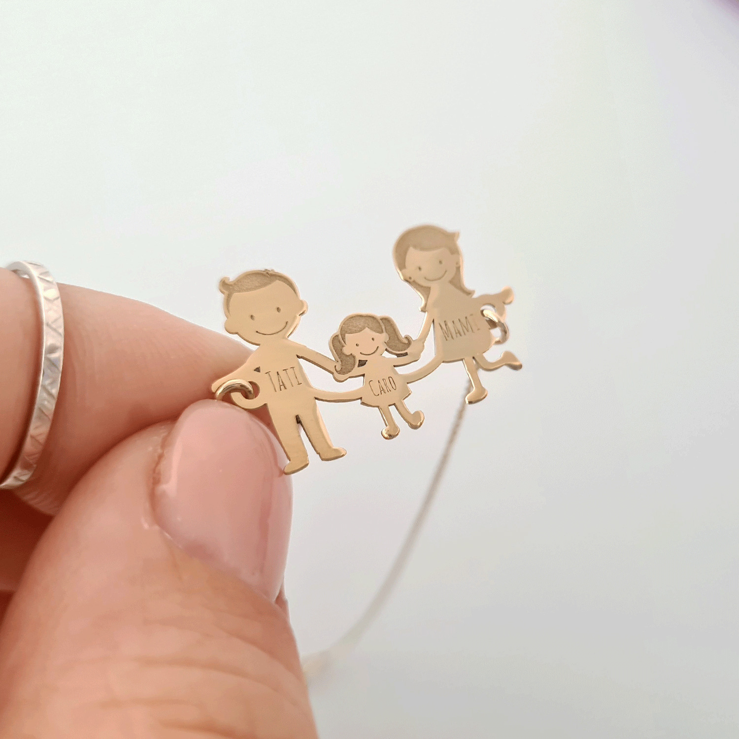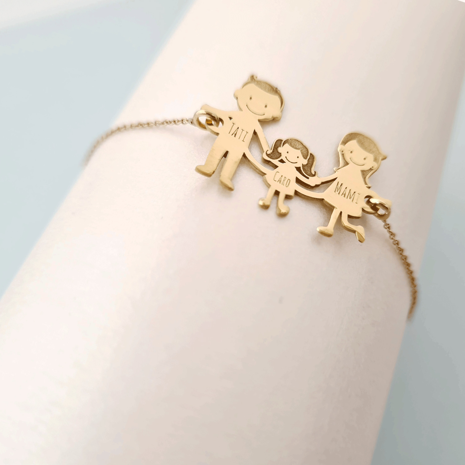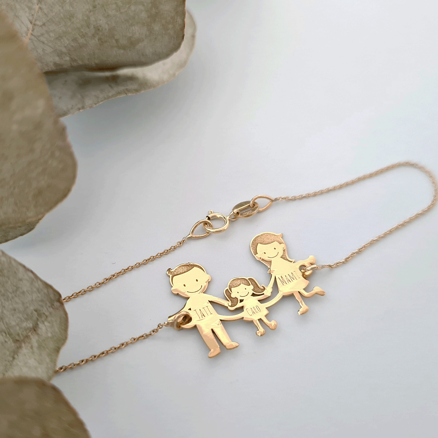 Exemple Bratara familie:1. Bratara Parinti + 1 copil2. Bratara Parinti + 2 copii3. Bratara Parinti + 3 copii4. Bratara doar cu copii5. Bratara doar parinti(cuplu)*dar si alte variante in functie de ceea ce va doriti.Gramaj aproximativ AUR 14K (585): 2.1 grame