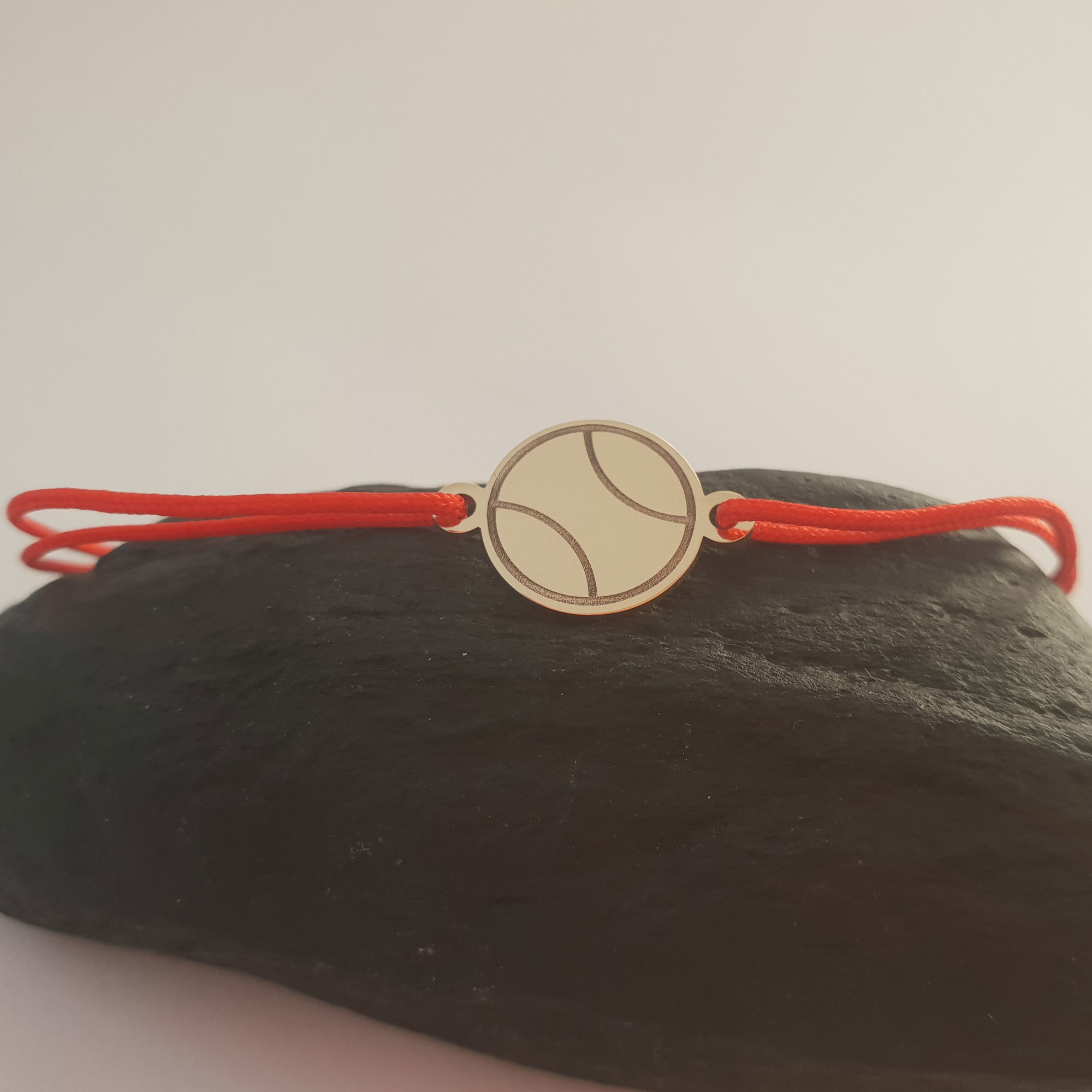 Bratara este creata din Aur Galben de 14K prin taiere si gravare laser, avand dimensiunea pandantului de 10x16 mm. Acesta este atasat unui snur de matase vegetala, marime reglabila. Un cadou deosebit!