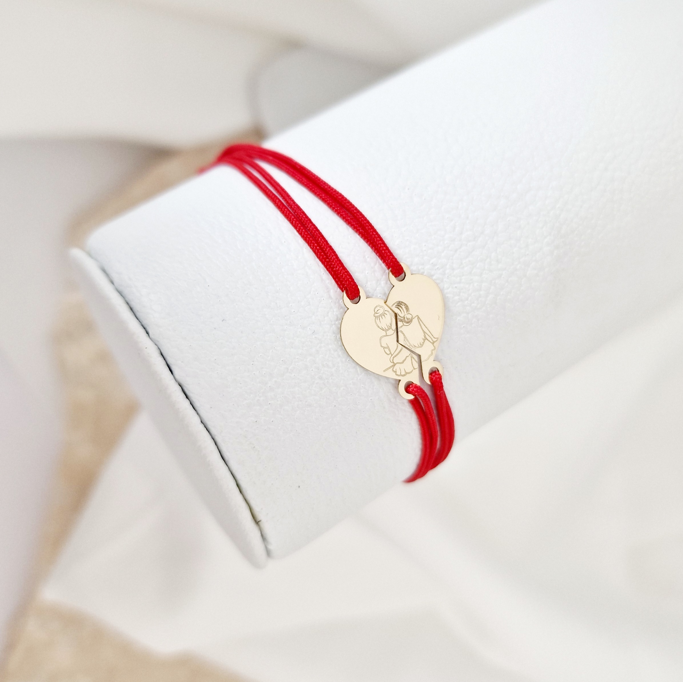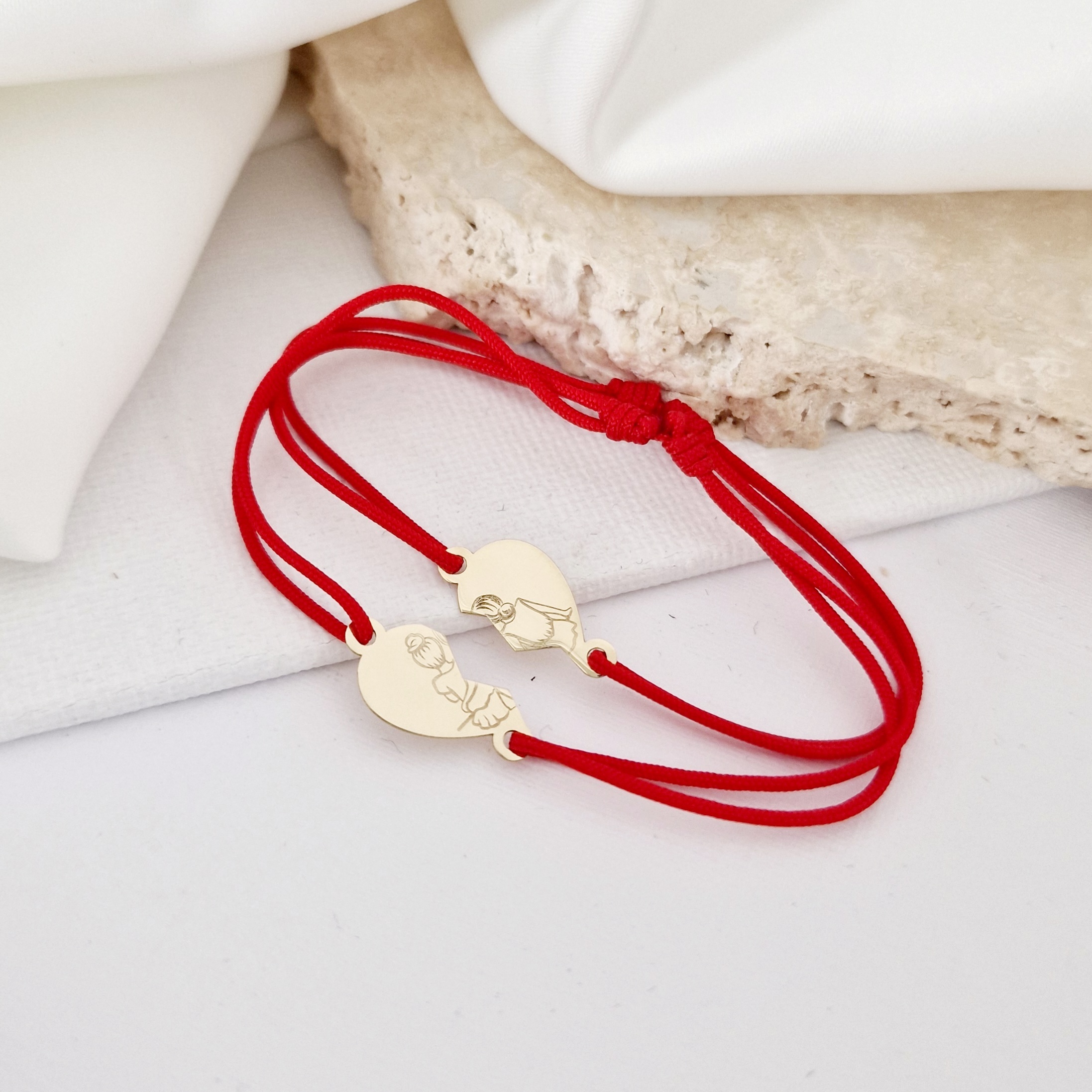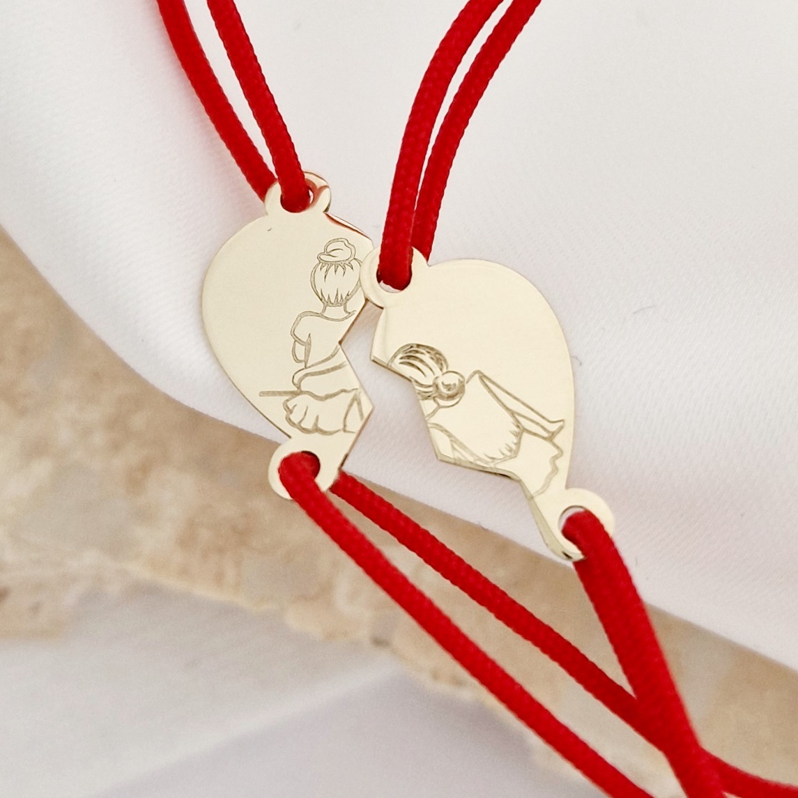 Set 2 bratari - inima puzzle - surori/prietene - pandantive de 8x15 mm - Aur Galben 14k - snur reglabil