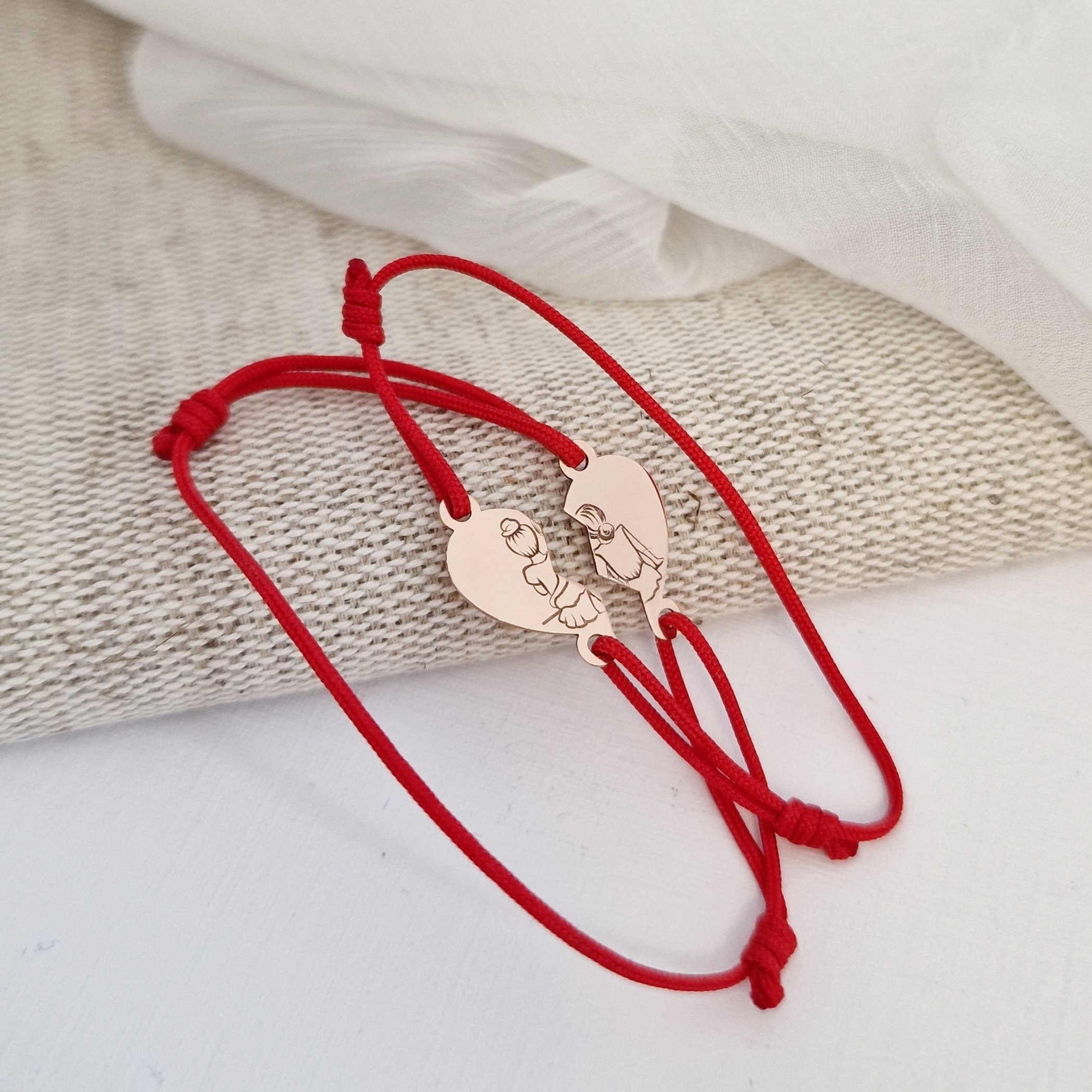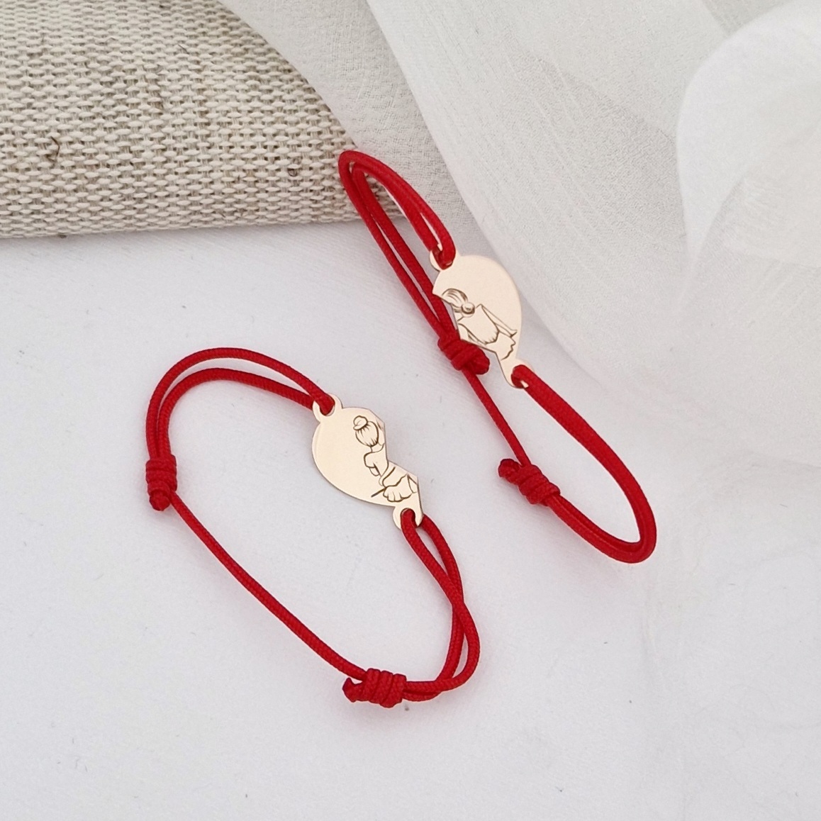 Bratarile din set sunt create integral din Aur Roz de 14K prin taiere si gravare laser de ultima generatie. Ele sunt finisate manual pentru o stralucire superioara. Fiecare bratara reprezinta o bucata de puzzle dinntr-o inima. Pandantivele sunt atasate de un snur din matase vegetala, marime reglabila.