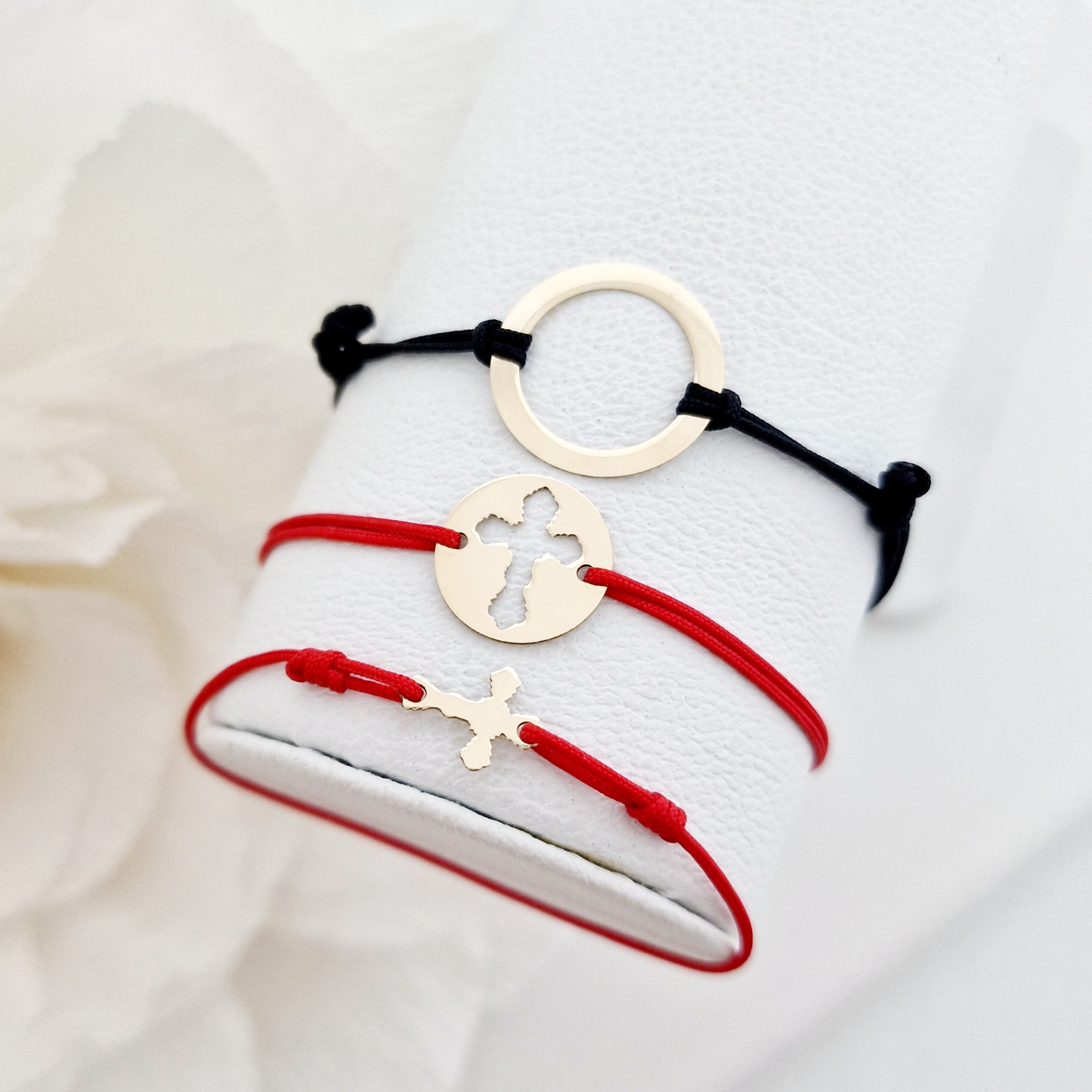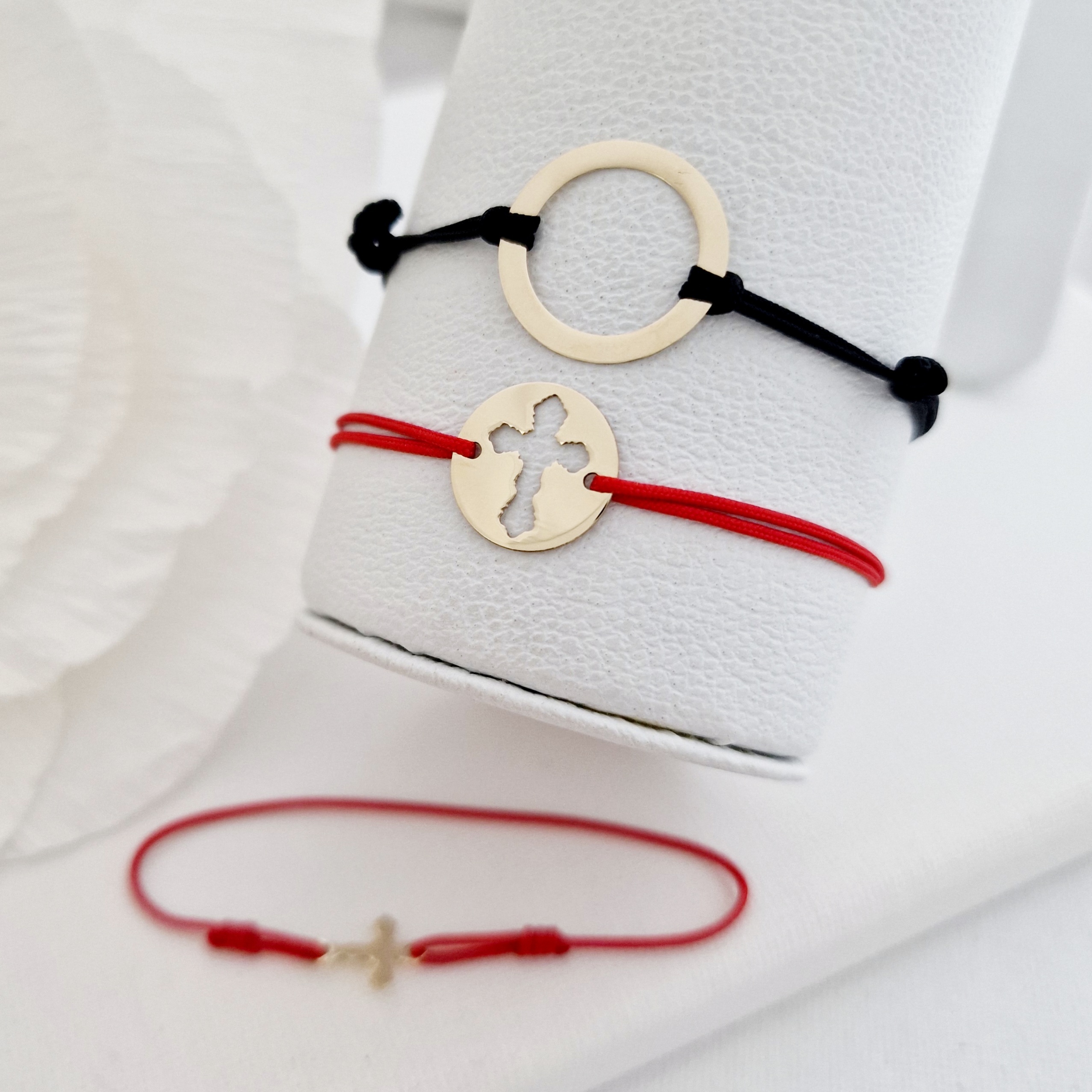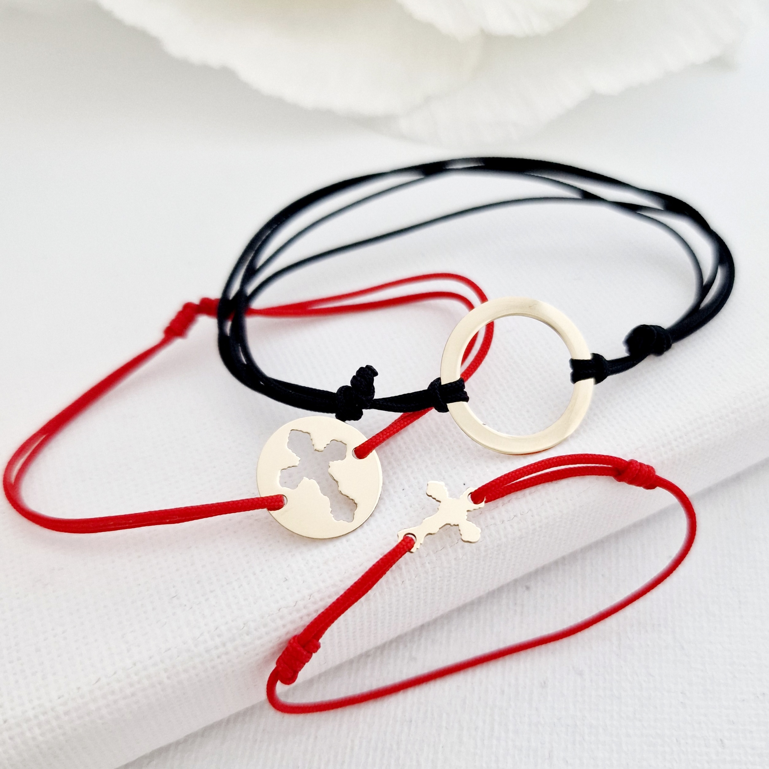 Set 3 bratari - Tata, mama si copil - Puzzle Familie - disc, banut si cruce - Aur Galben 14k