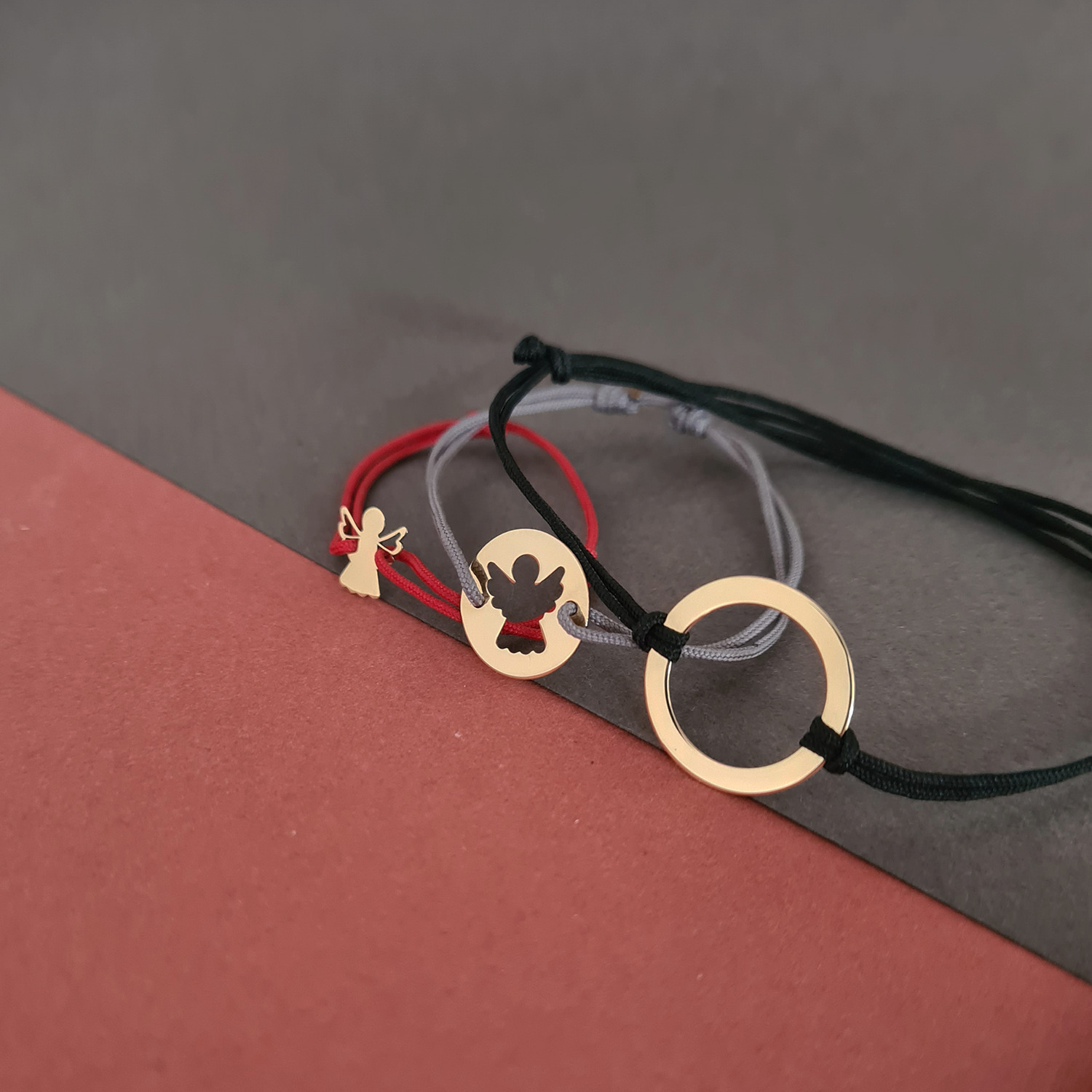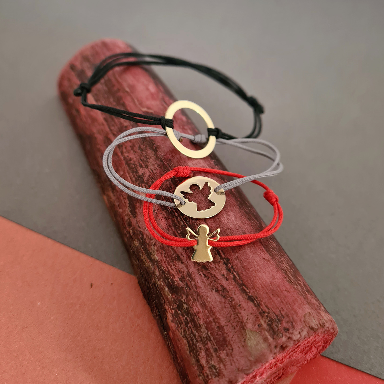 Set 3 bratari - Tata, mama si copil - Puzzle Familie - disc, banut si ingeras - Aur Galben 14k