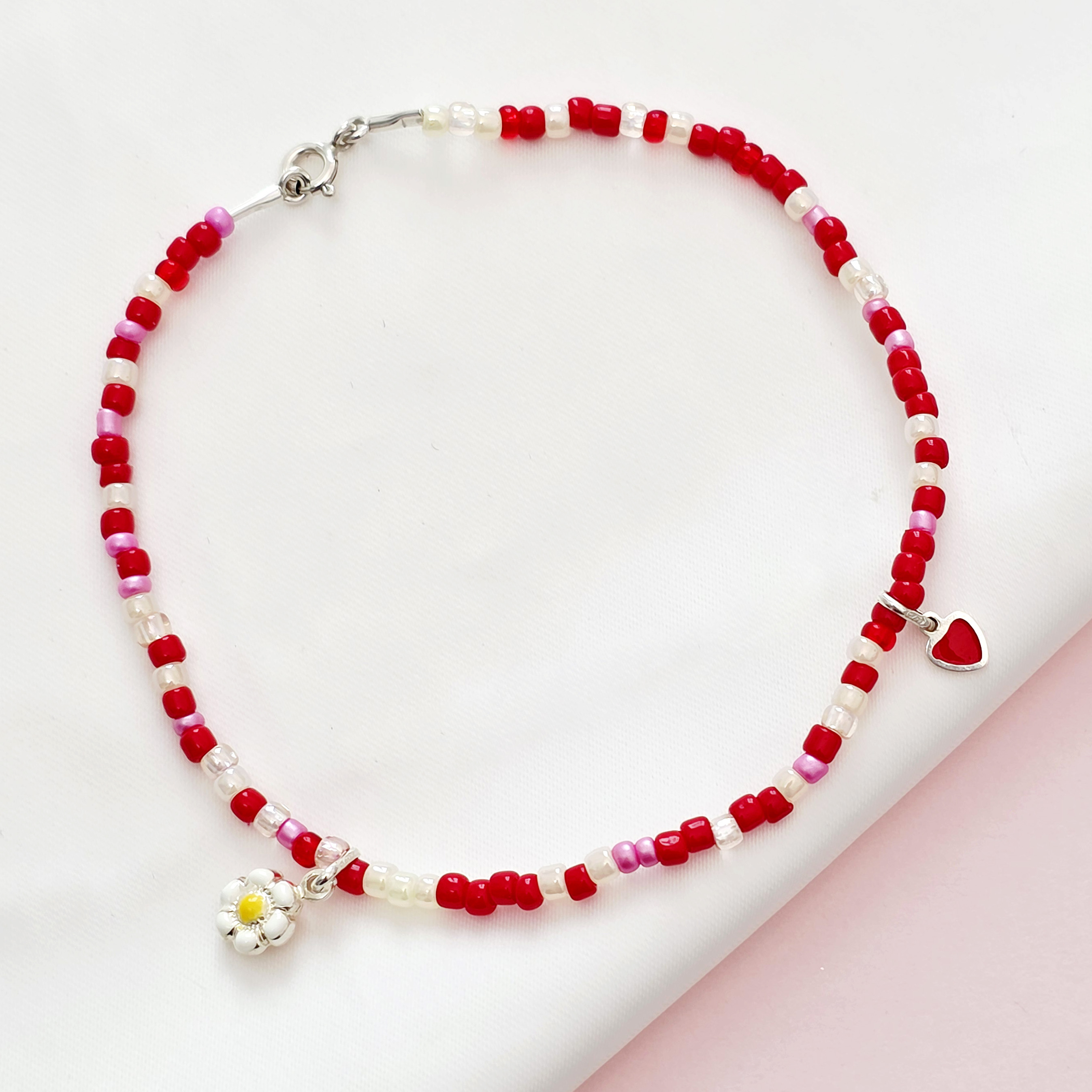 Această brățară de picior adaugă o notă de pasiune și stil fiecărei apariții. Cele 2 charmuri colorate din Argint 925 se îmbină perfect cu biluțele roșii, oferind un contrast delicat și rafinat. Ideală pentru zilele călduroase sau serile de vară, este un detaliu care nu trece neobservat.