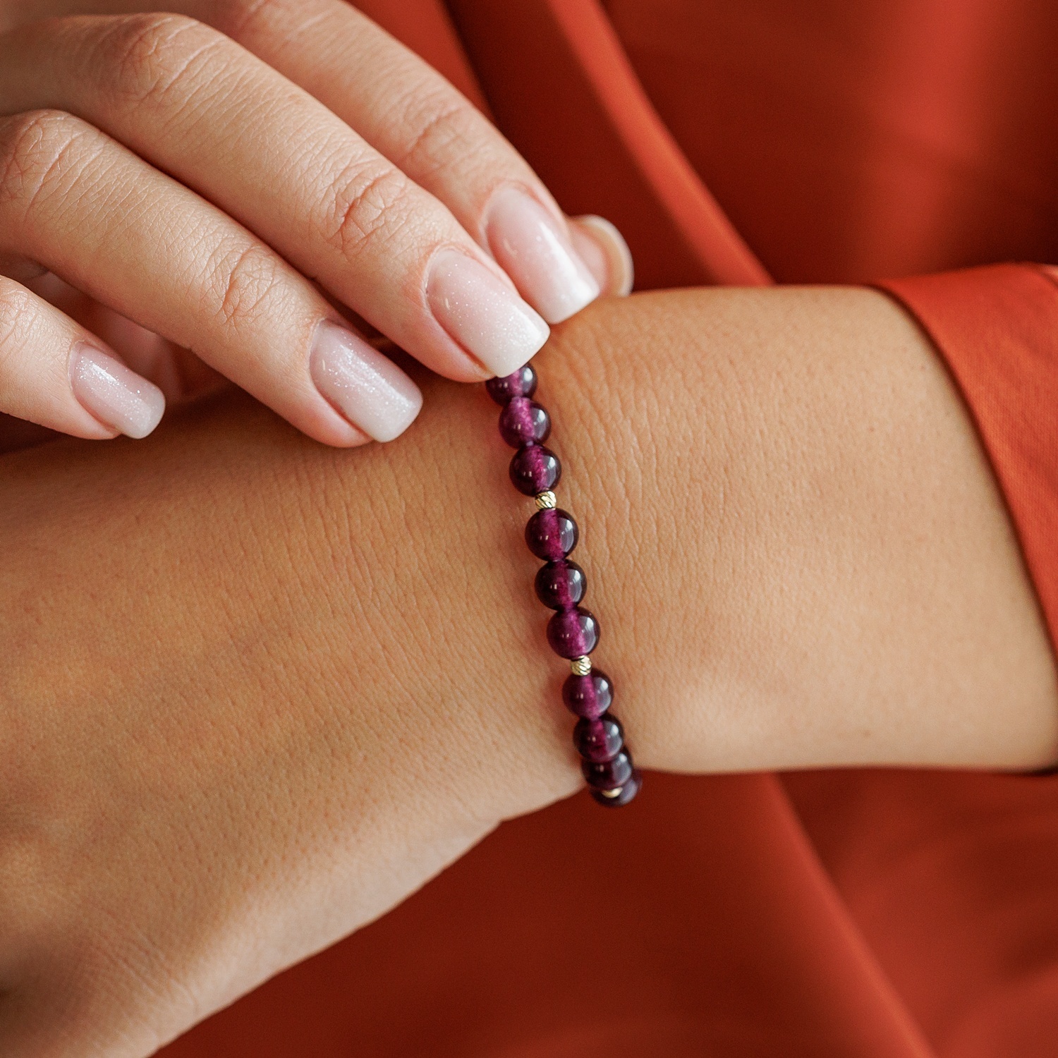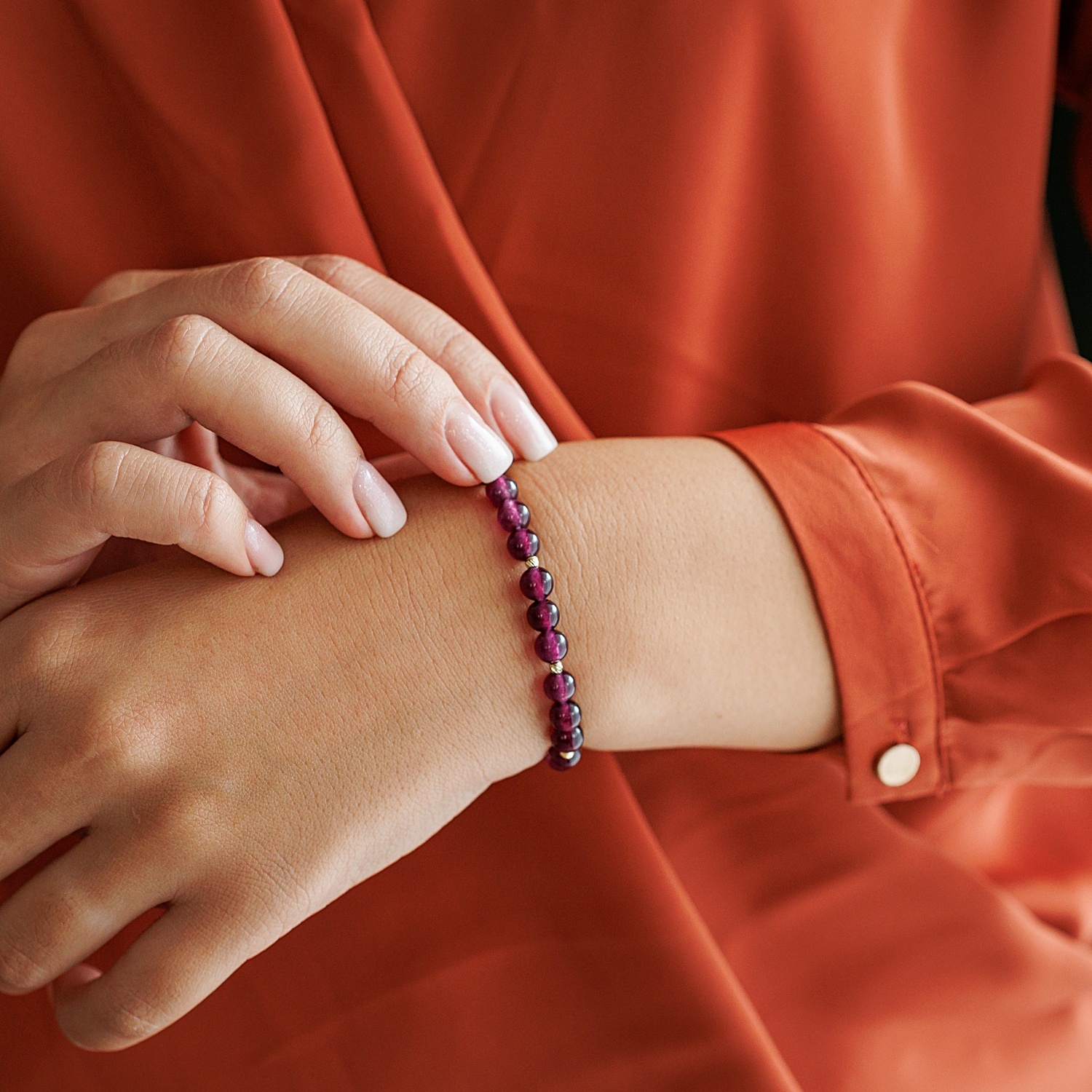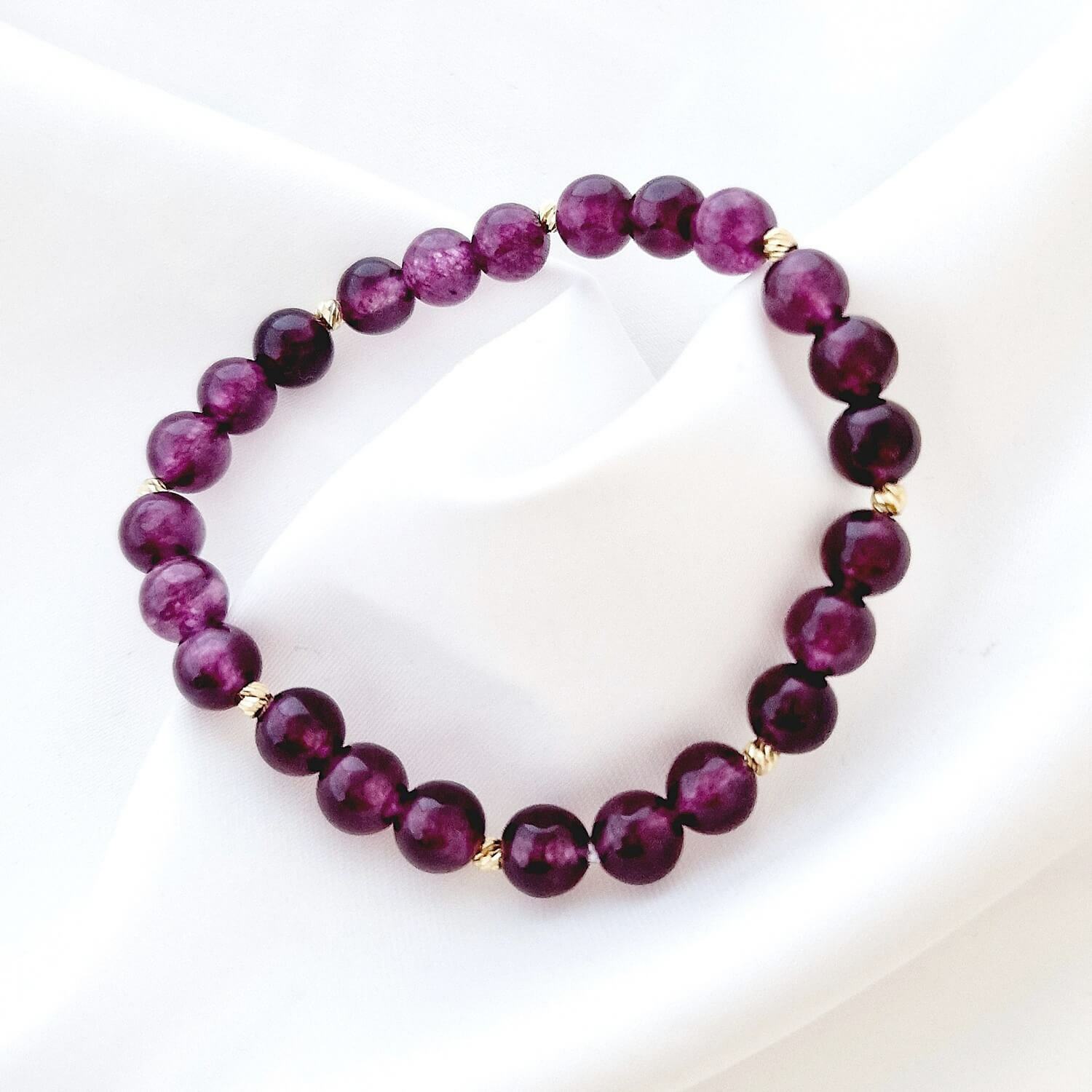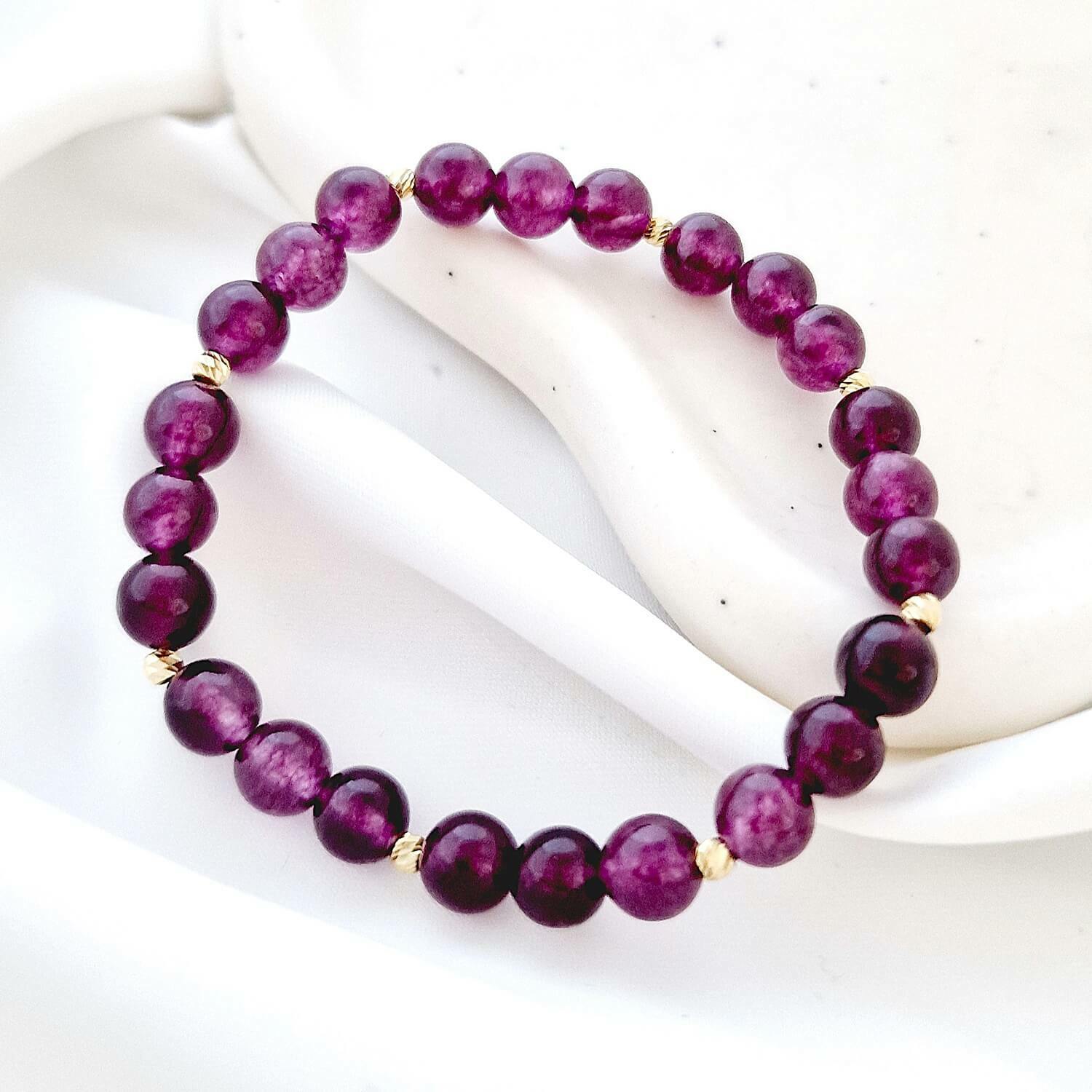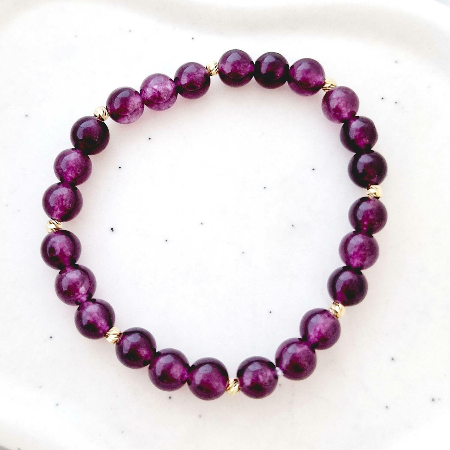 Bratara Eleganta din piatra Ametist si Bilute din Aur 14K - Snur elastic