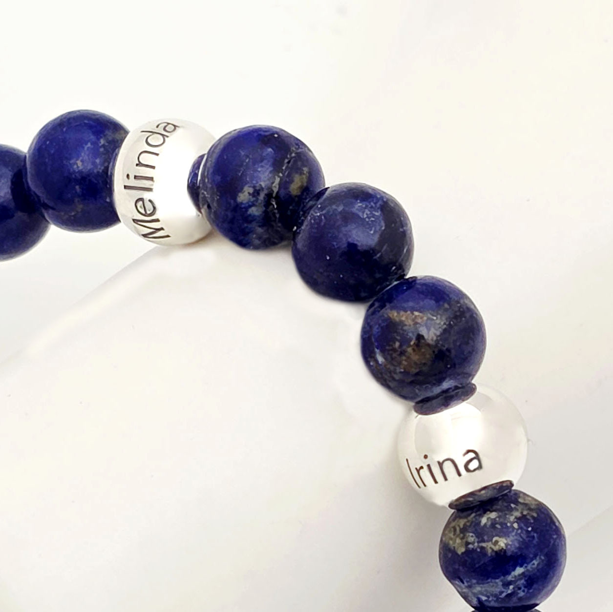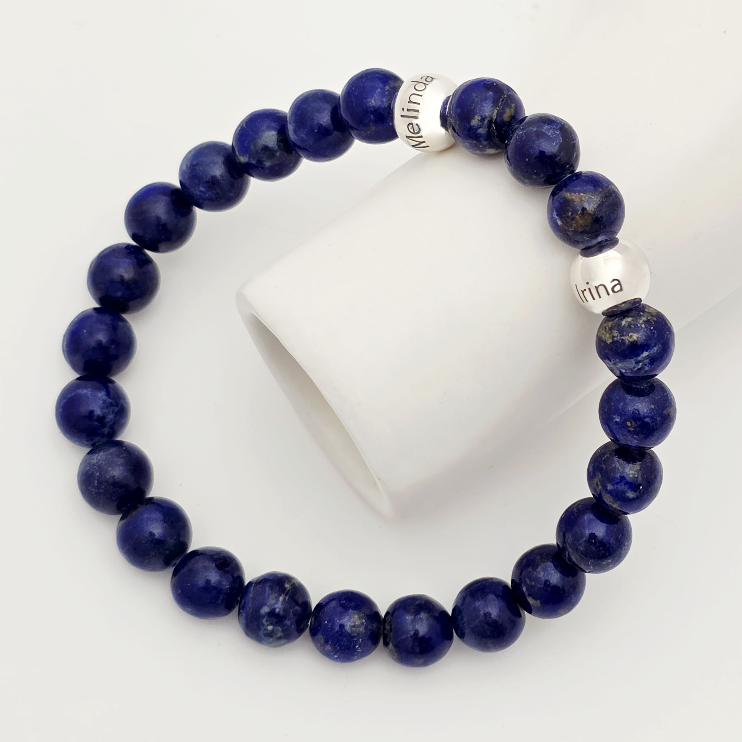 Bratara pietre semipretioase Lapis lazuli de 8 mm - Bilute din Argint 925 - Snur elastic