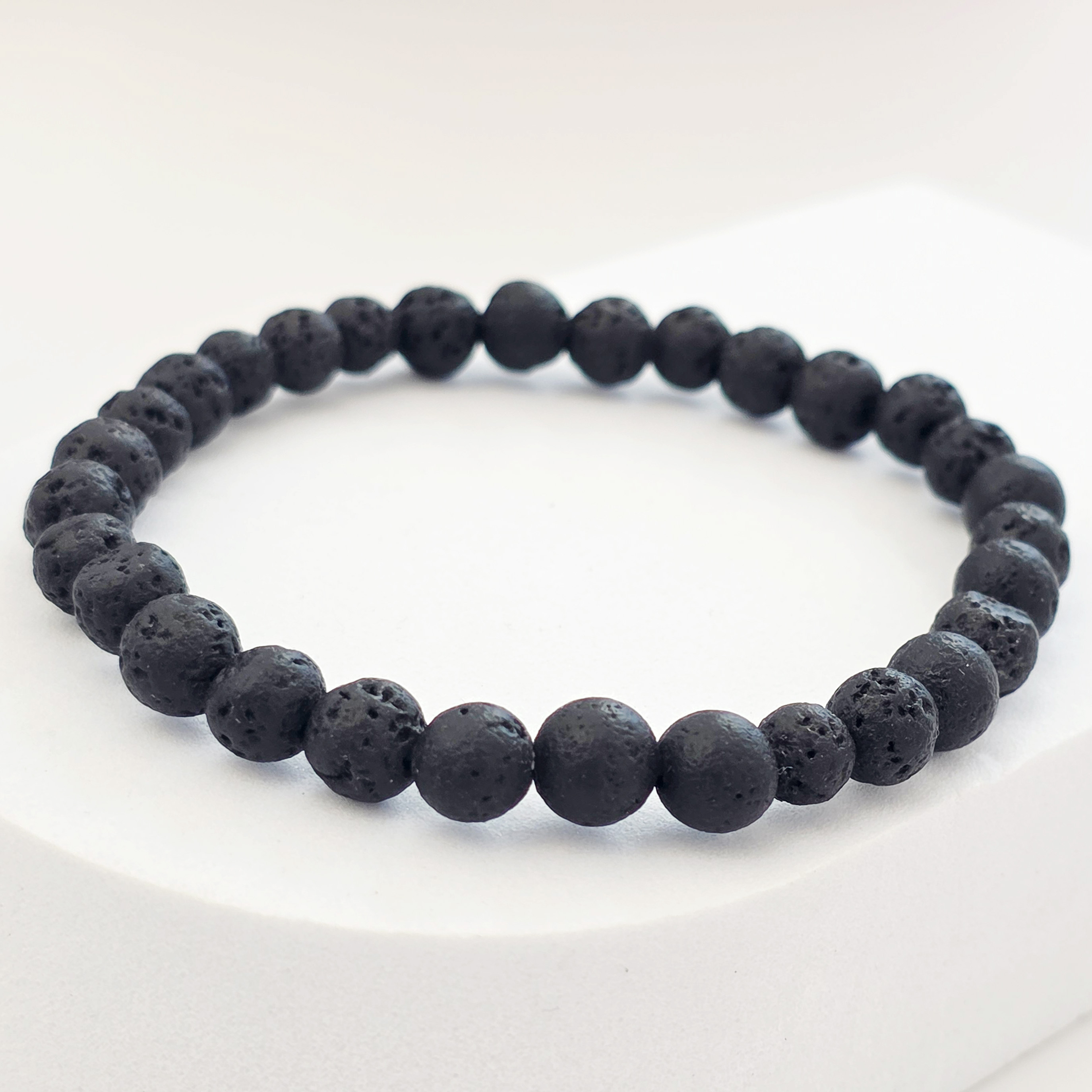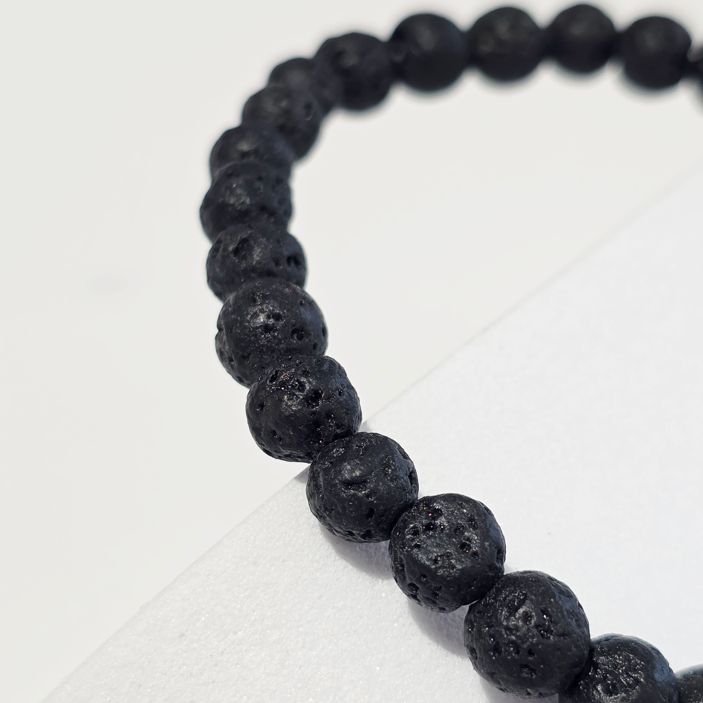 Această brățară este realizată din pietre semiprețioase de lavă naturală, recunoscute pentru proprietățile lor de calmare și protecție. Mărgelele de 6 mm sunt montate pe un șnur elastic rezistent, asigurând o potrivire confortabilă pentru orice încheietură. Textura unică a pietrelor oferă un aspect modern și rafinat, potrivit atât pentru femei, cât și pentru bărbați.