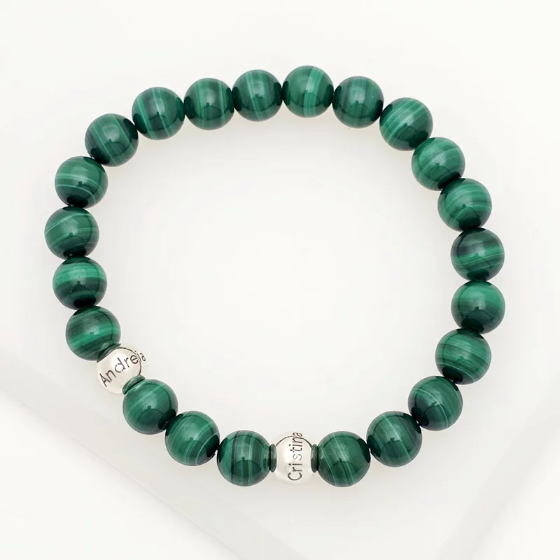 Bratara pietre semipretioase Malachit de 8 mm - Bilute din Argint 925 - Snur elastic