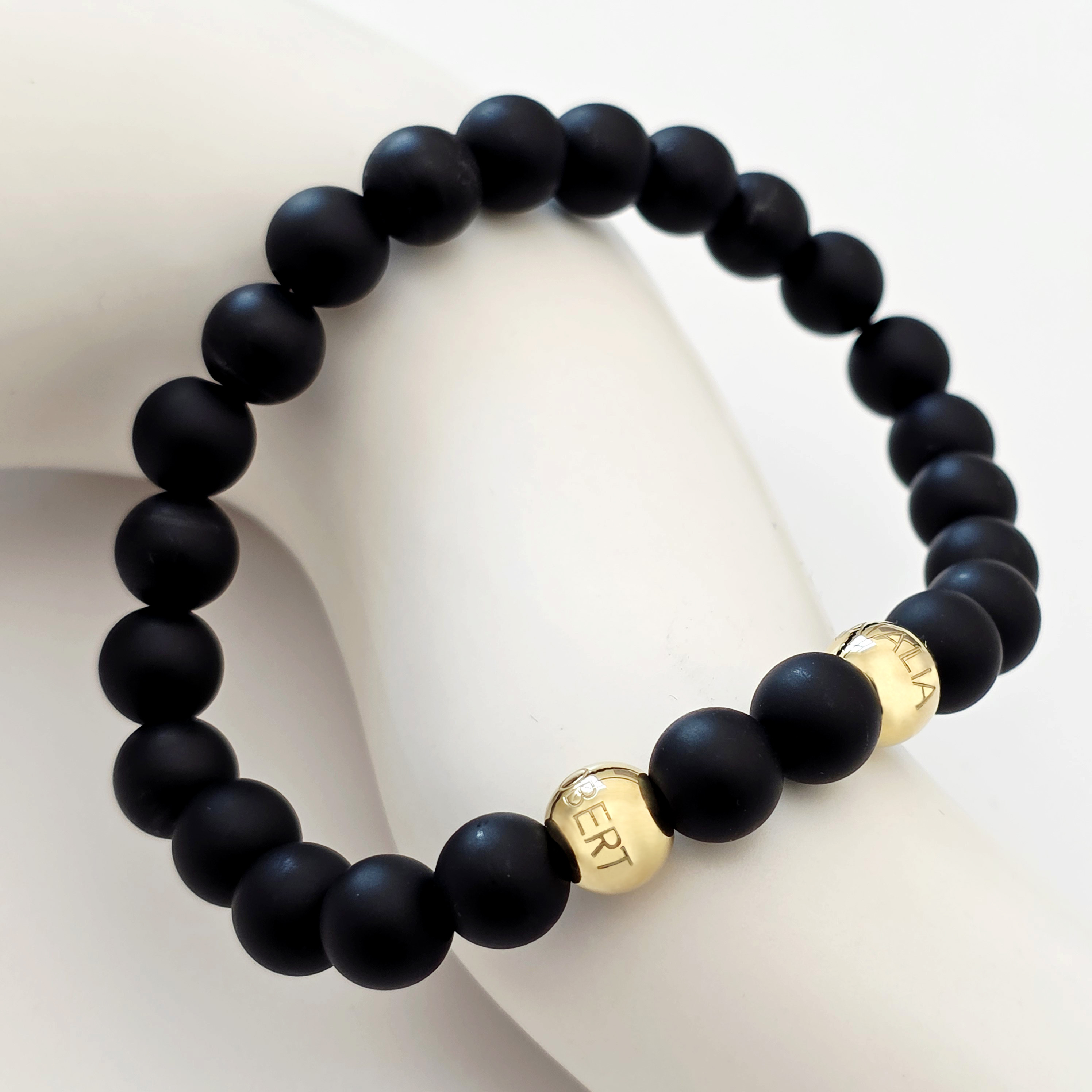 Bratara pietre semipretioase Onix mat de 8 mm - Bilute din Argint 925 placat cu Aur Galben - Snur elastic