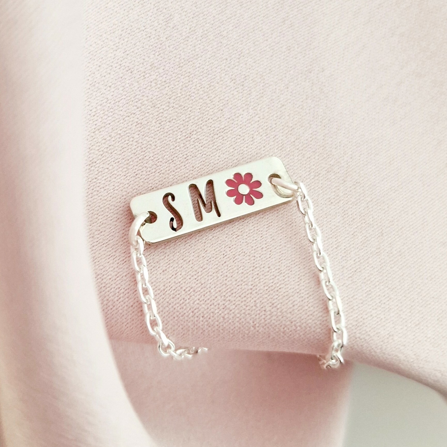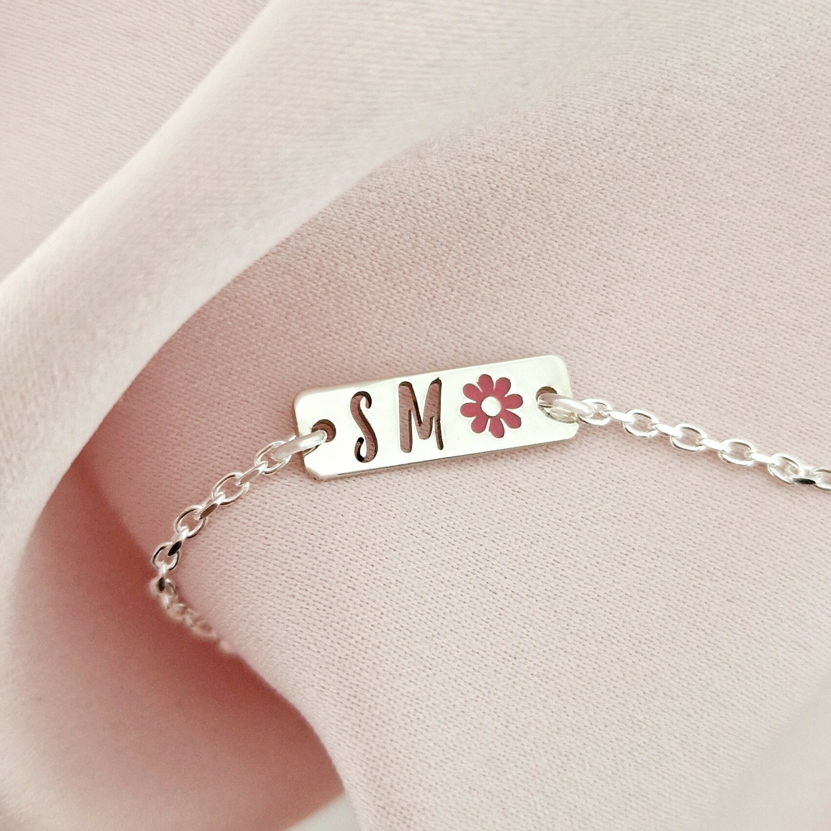 Bratara placuta simbol floare - initiale personalizate - Argint 925- Cu lantisor fata/baiat