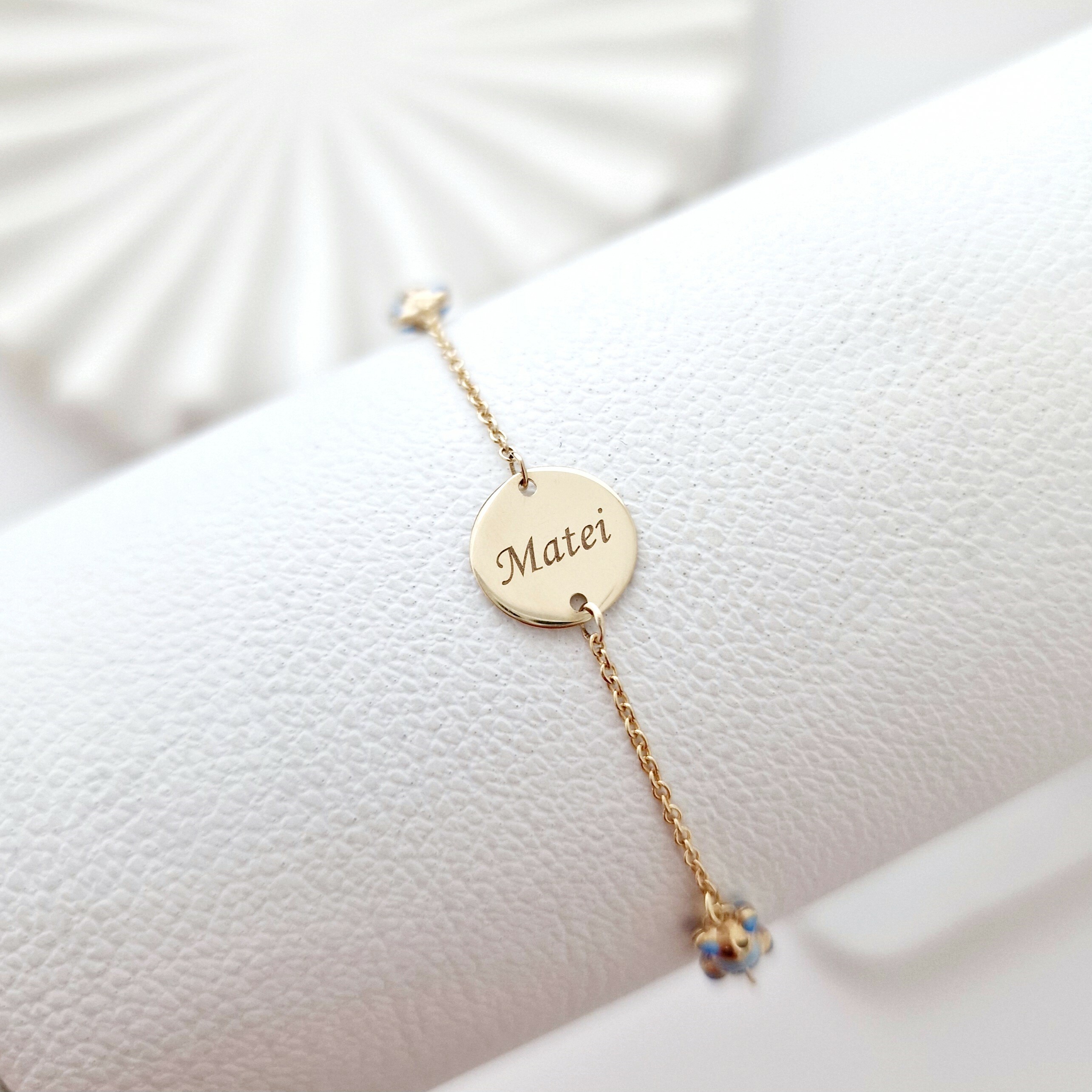 Pentru bebelusi, recomandam bratarile cu ingeras, cruciulita sau placuta din aur, gravabile cu nume sau data nasterii. Aceste sunt special create pentru siguranta si confortul copilului, avand margini finisate si rotunjite. Au un design delicat, sunt usoare si vin cu snur moale sau lant subtire, concepute pentru pielea sensibila a celor mici.
