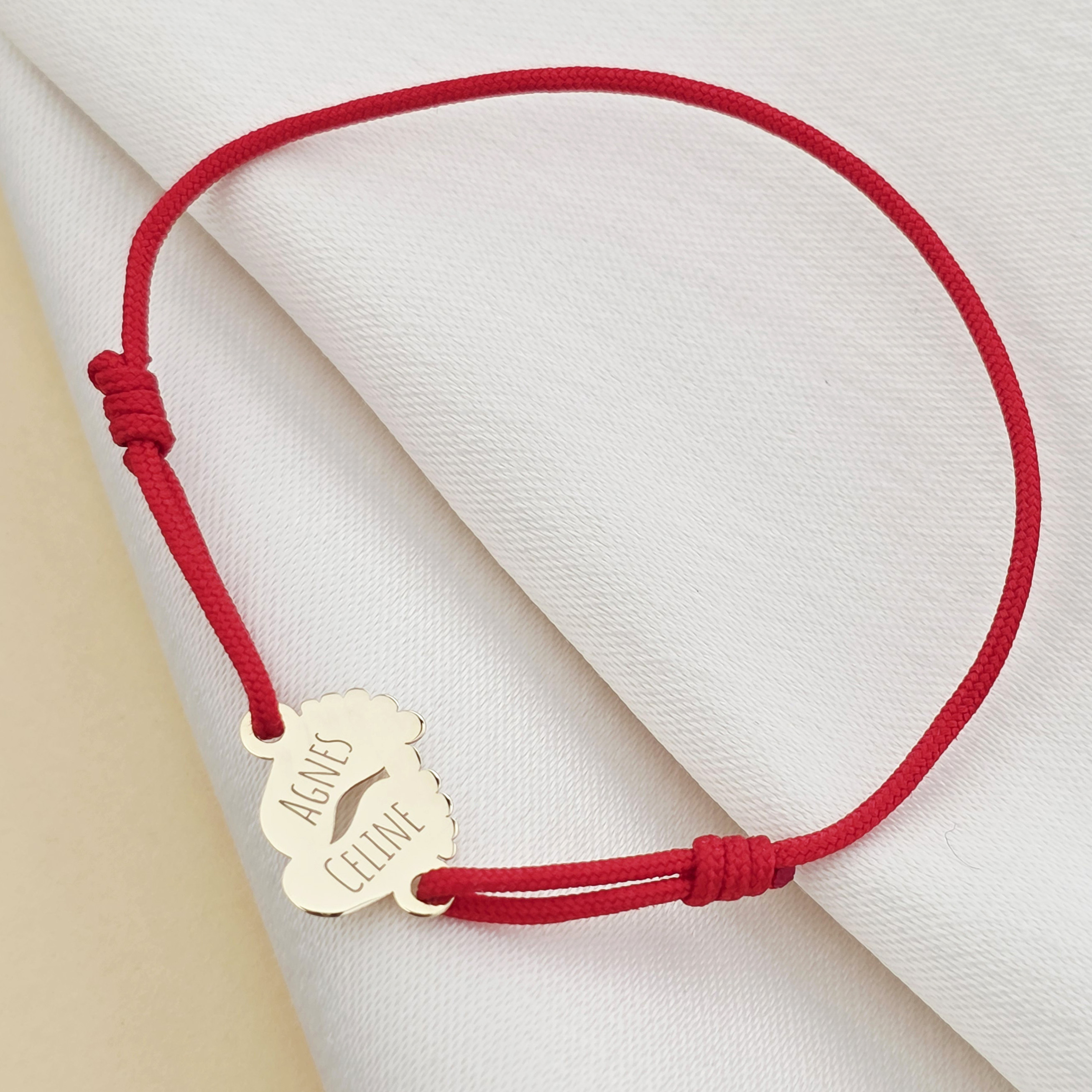 Bratara este creata din Aur Galben de 9K prin taiere si gravare laser, avand dimensiunea de 10x12 mm si fiind atasata unui snur de matase vegetala, marime reglabila. Un cadou deosebit!