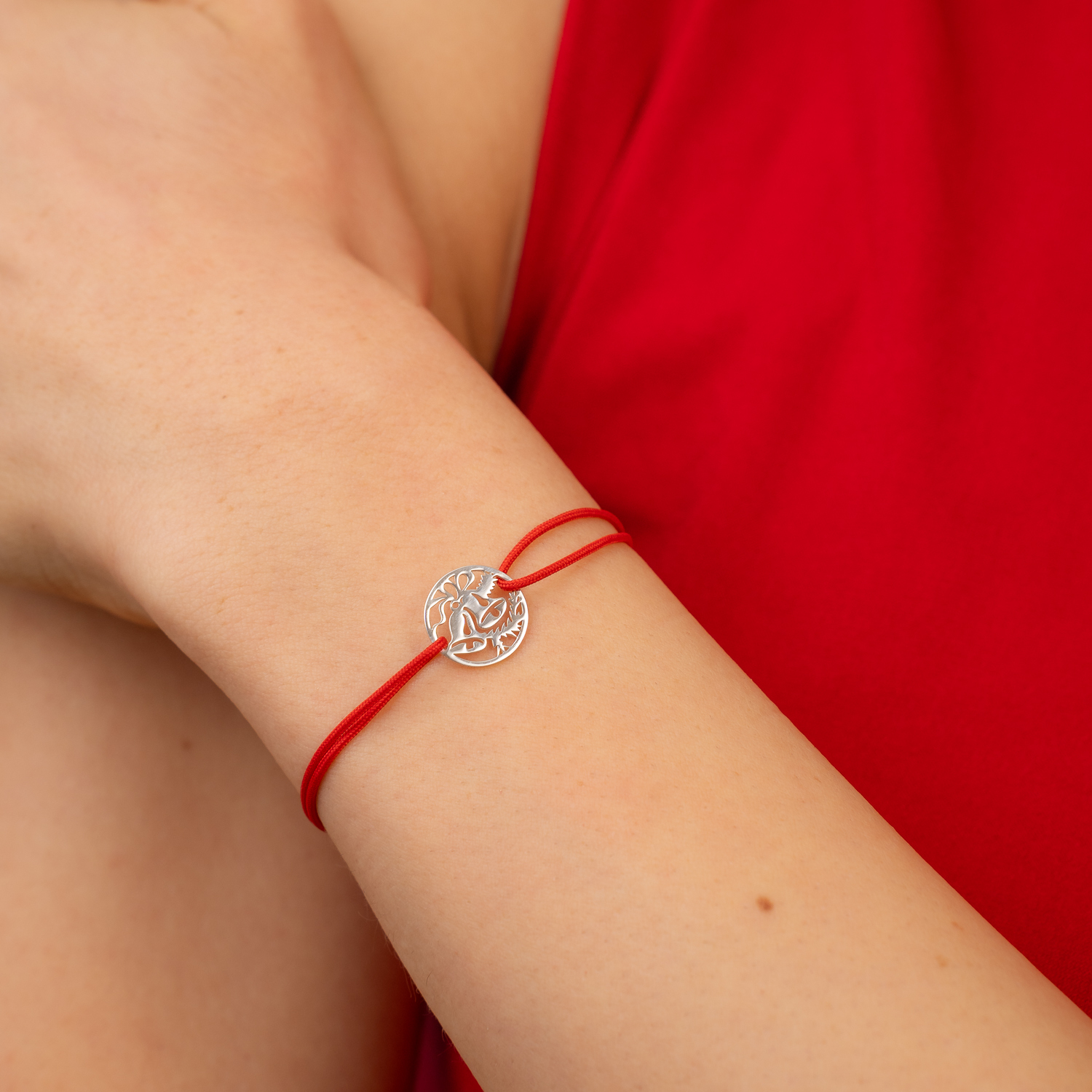 Bratara festiva - Disc si clopotel decupat - Argint 925 - Snur reglabil