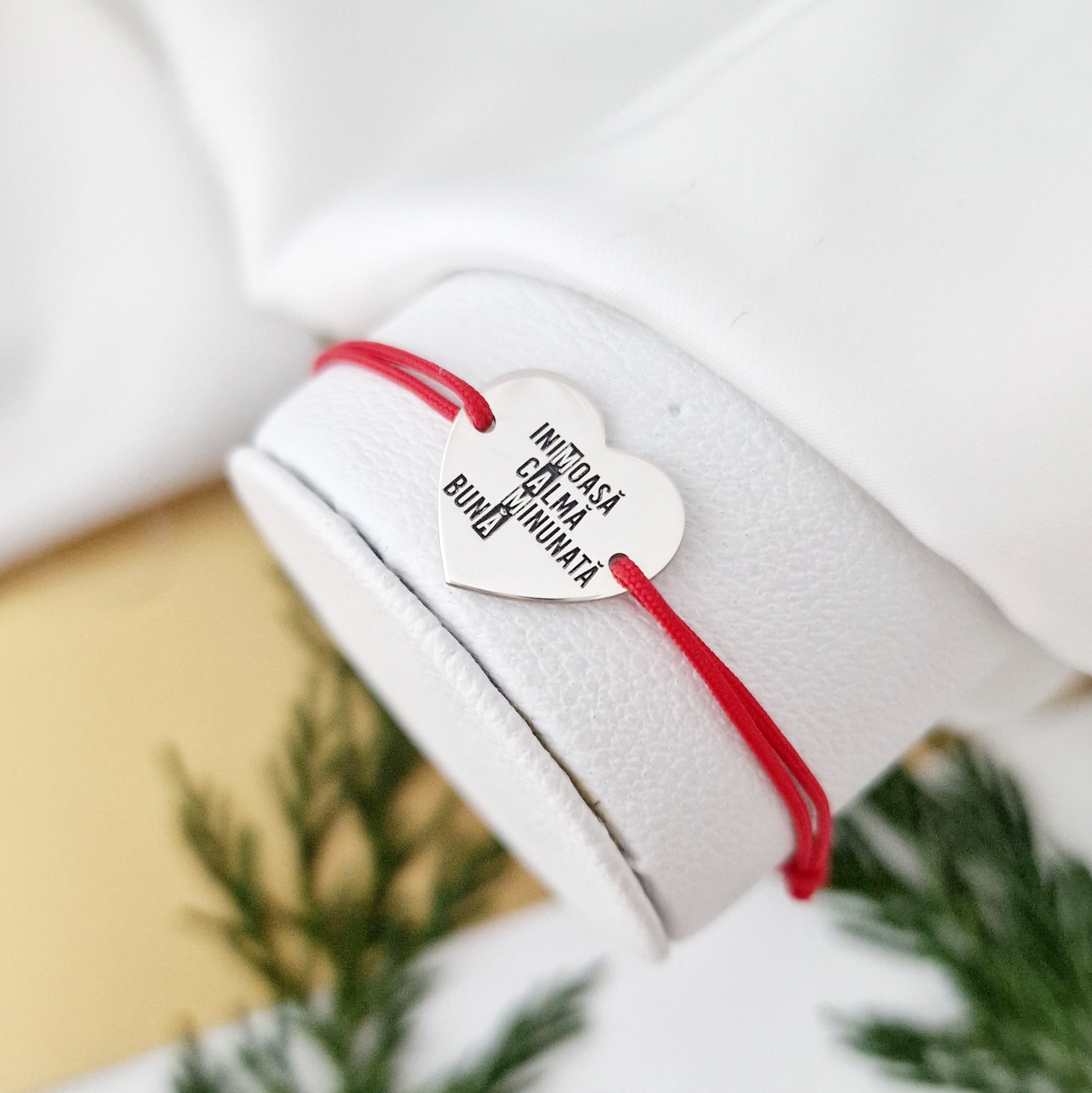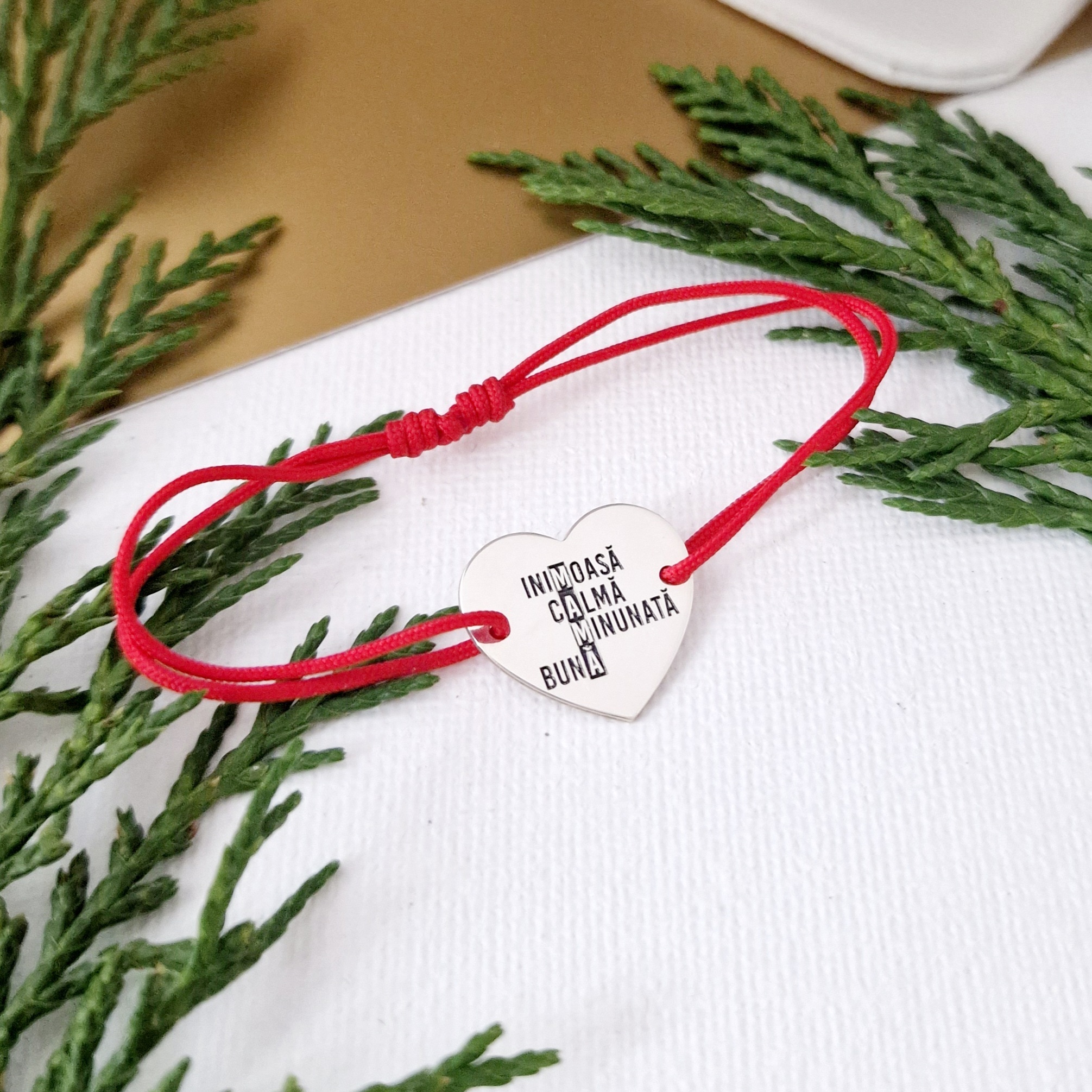 Bratara festiva - Mama inimoasă - Inima gravata - Argint 925 - Snur reglabil