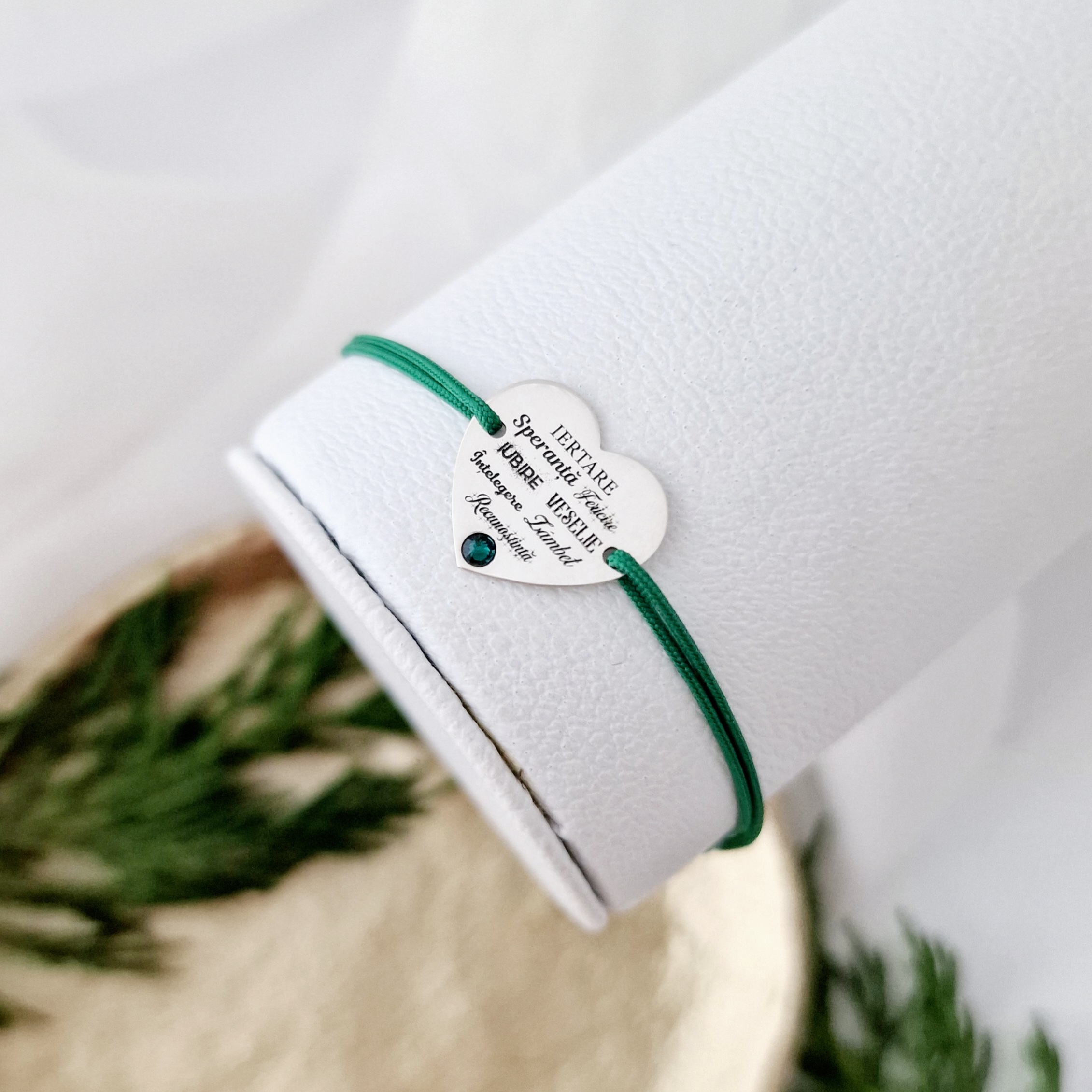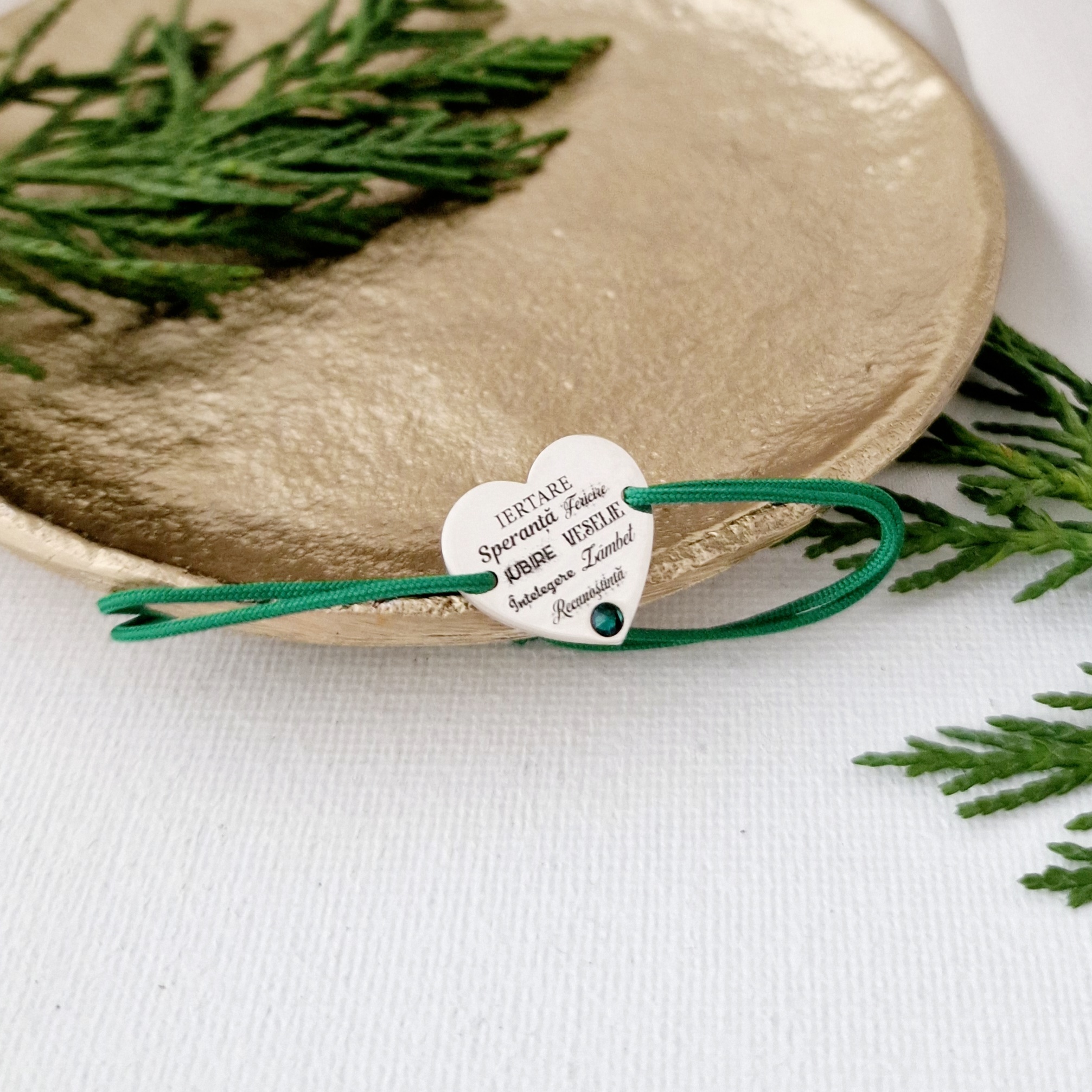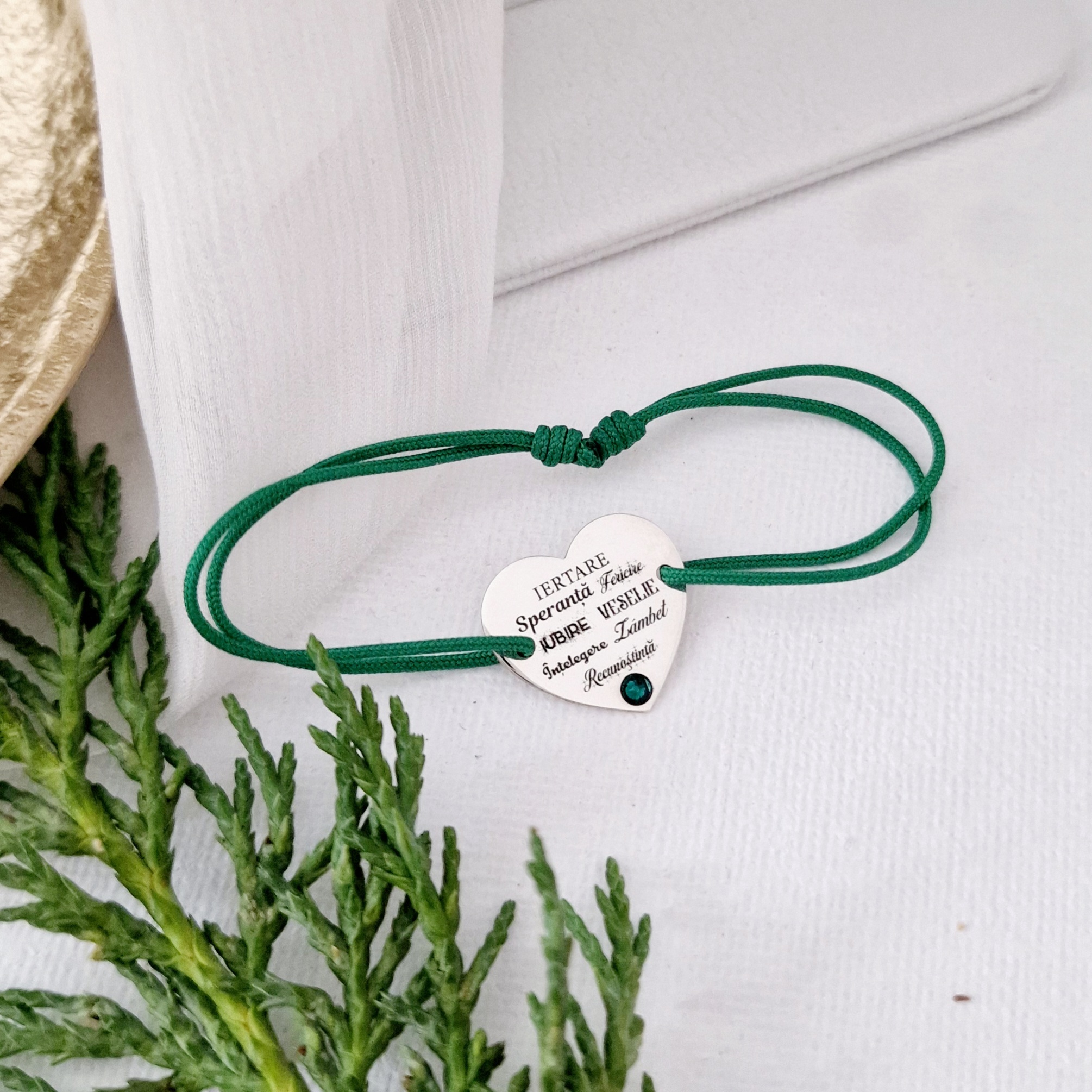 Bratara festiva - Măreția Cuvintelor - Inima gravata si cristal Swarovski - Argint 925 - Snur reglabil