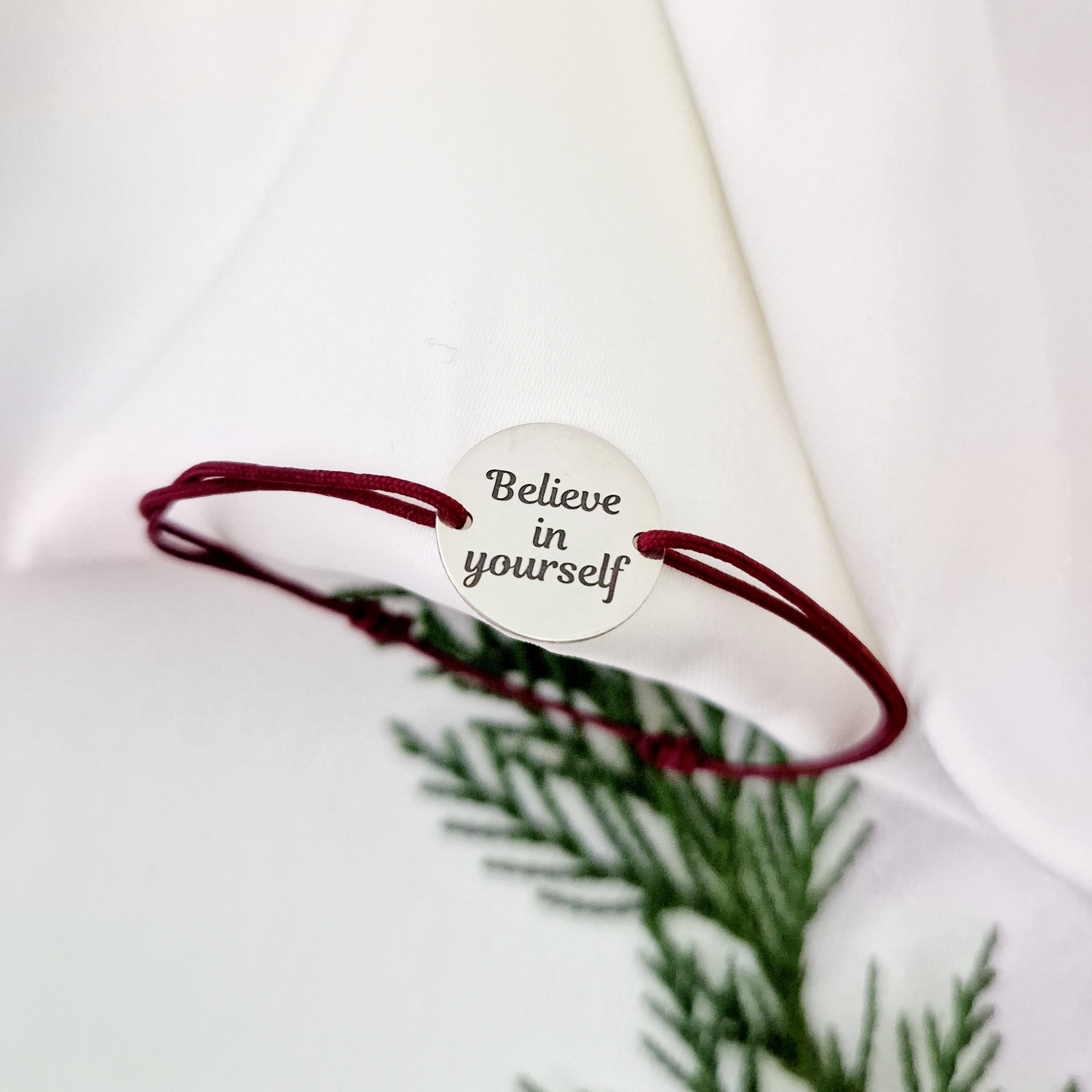 Bratara festiva - Mesaje de Bucurie - Banut gravat - Argint 925 - Snur reglabil