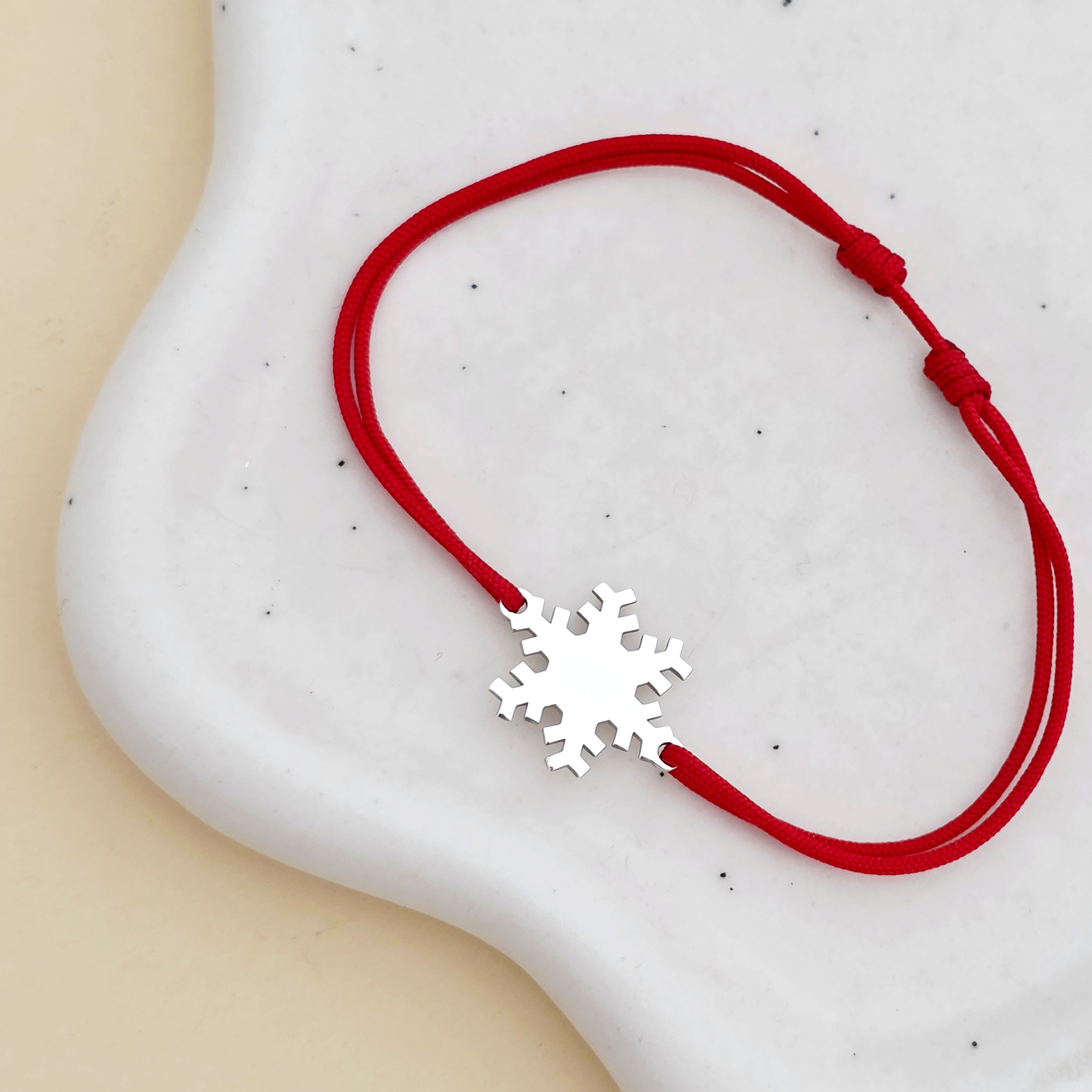 Bratara Craciun - Fulg de nea - Argint 925, snur reglabil diverse culori