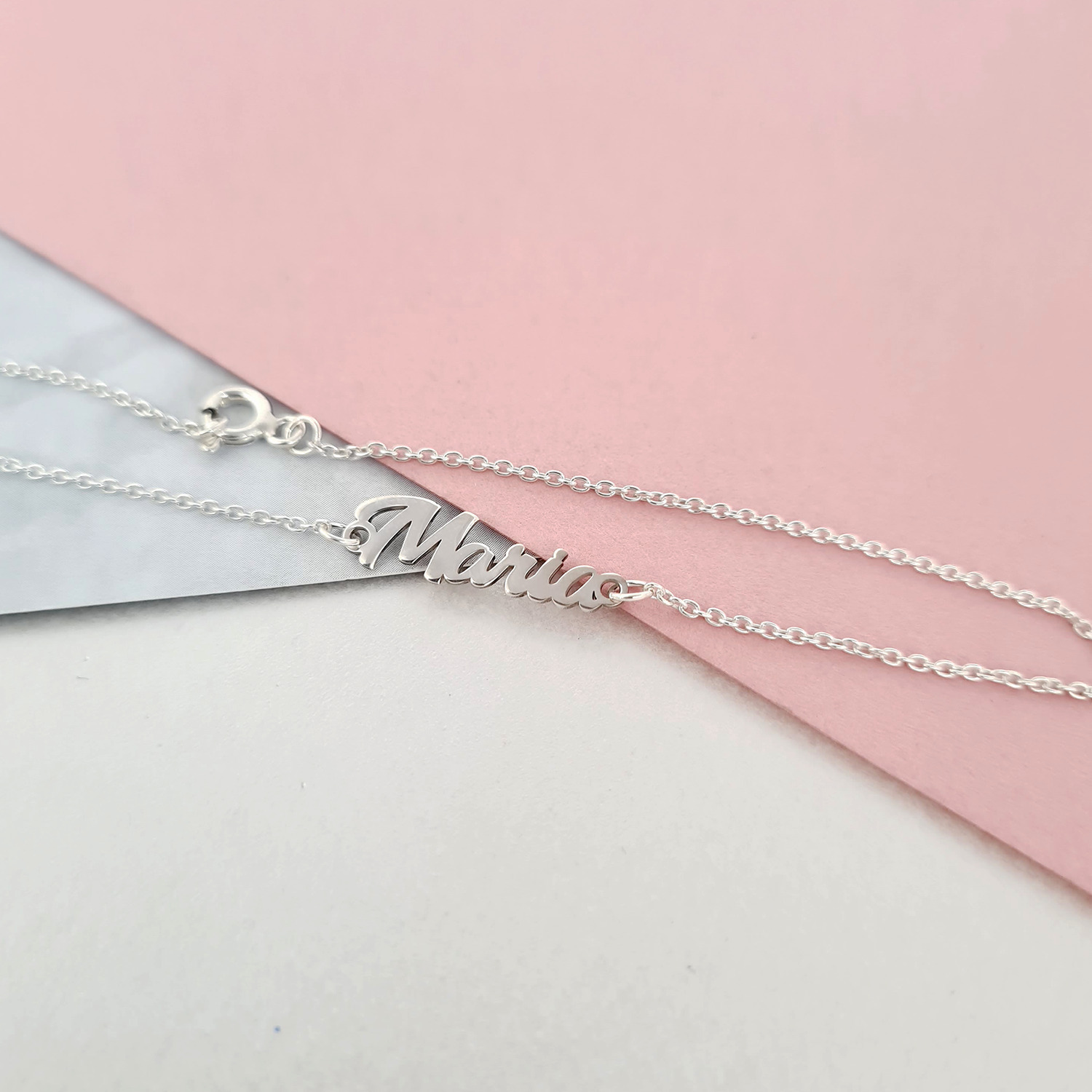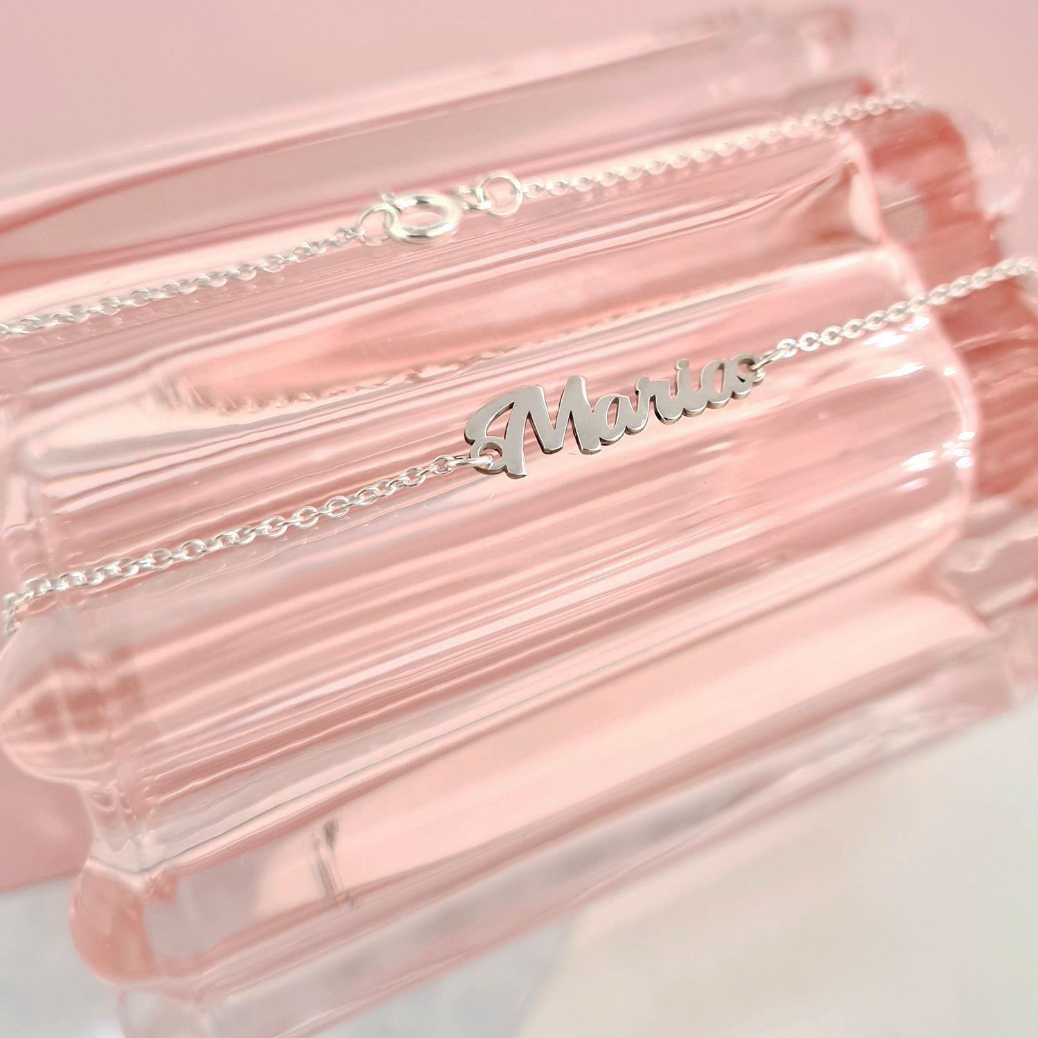 Bratara de picior personalizata - Pandantiv cu nume - Argint 925 - Lantisor realizat pe marimi