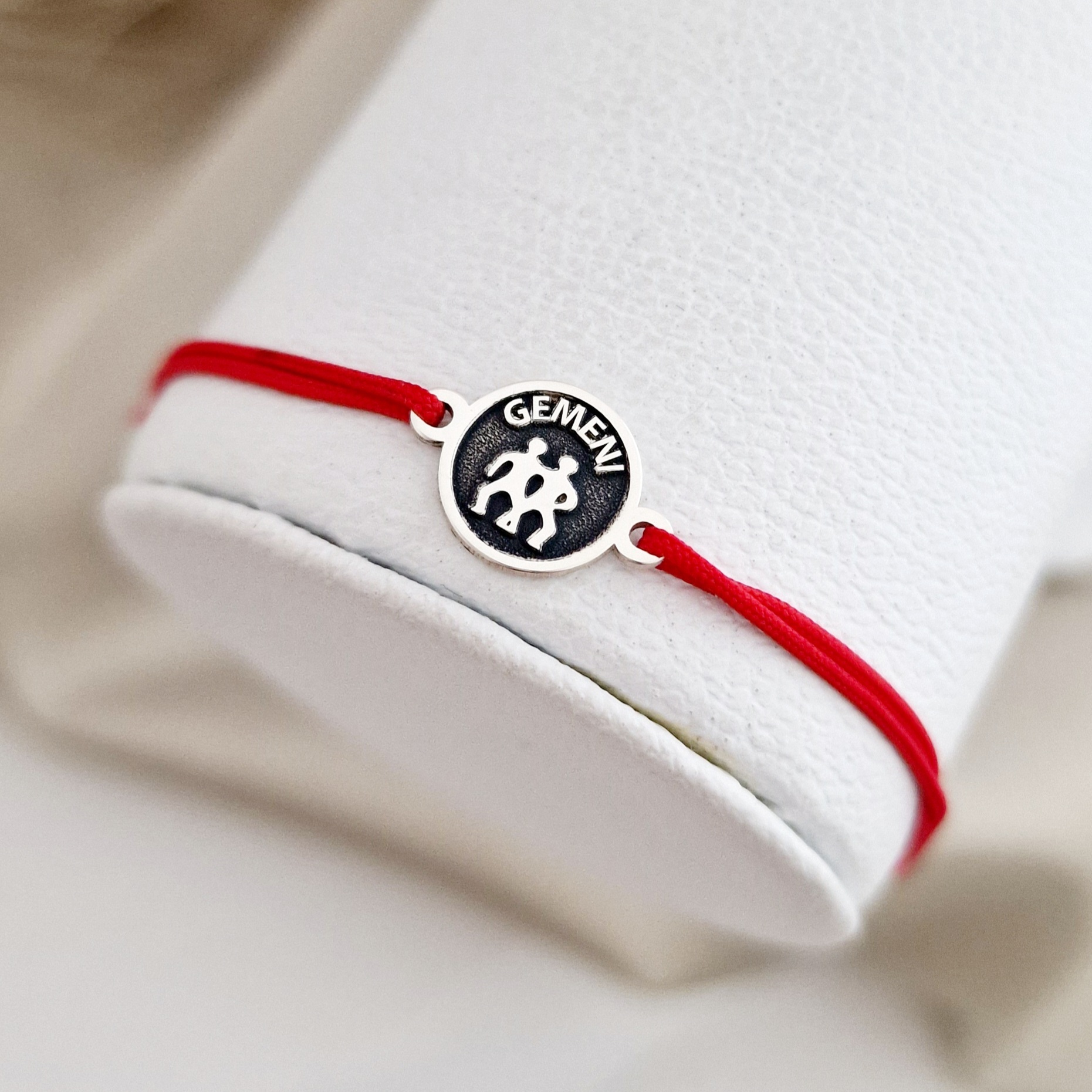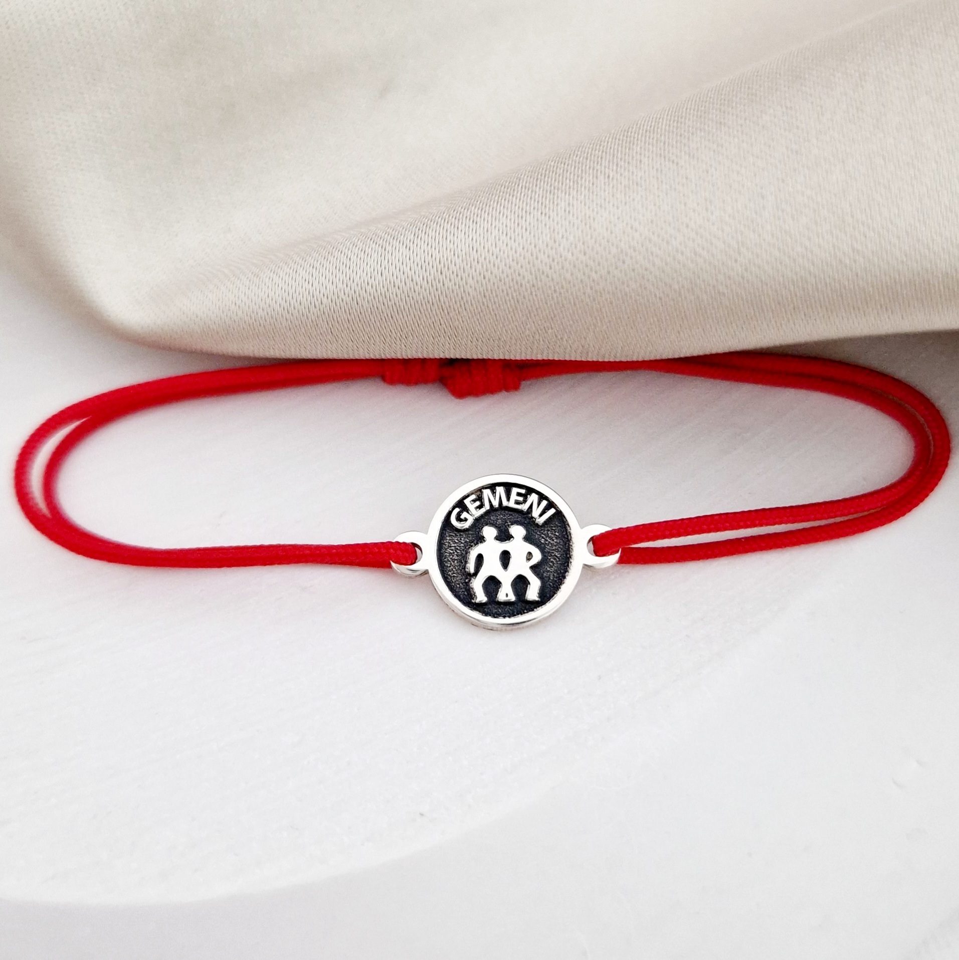 BRATARA ARGINT GEMENI - SNUR ROSU