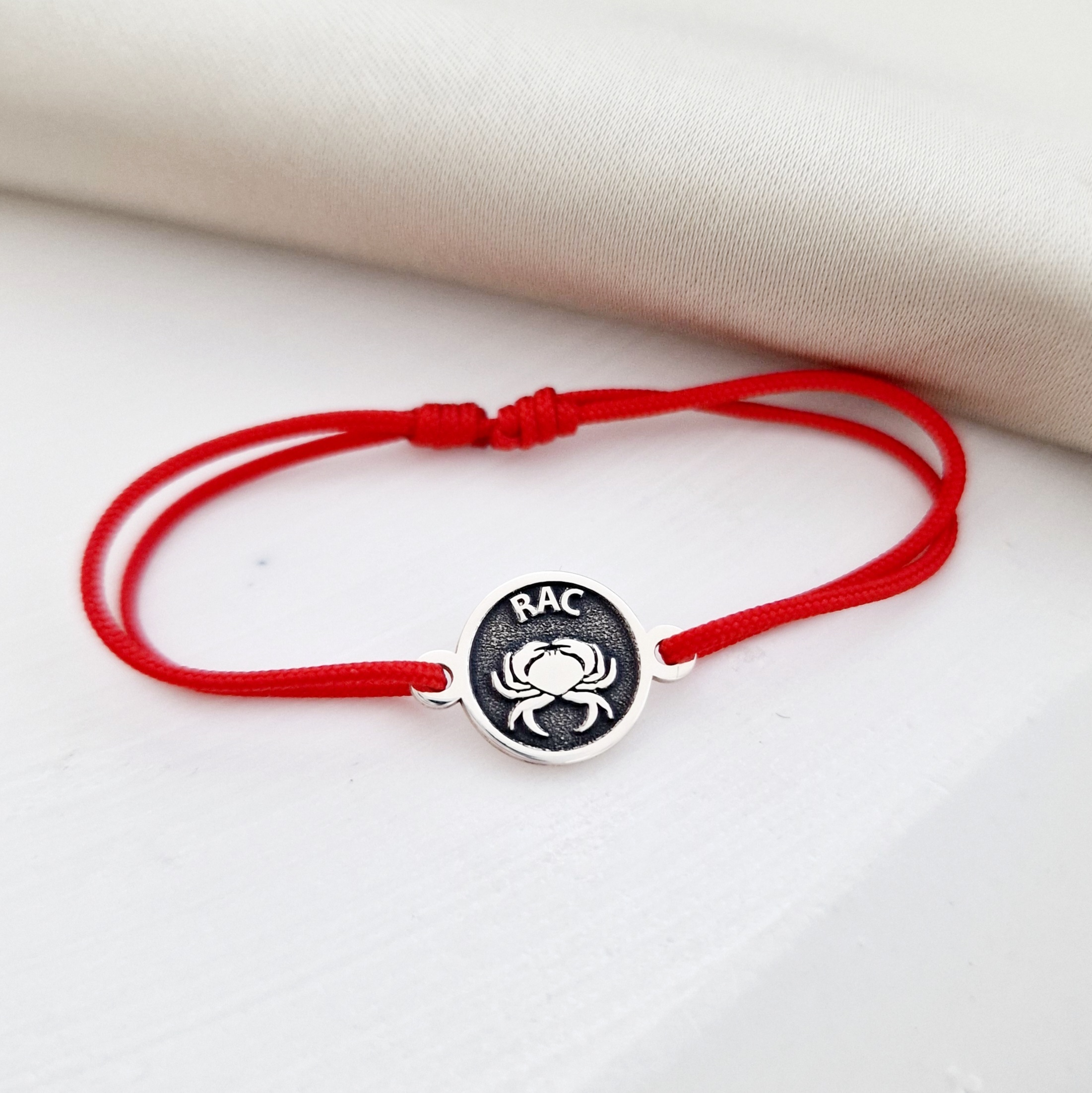 Persoanele nascute in perioada 22 Iunie-22 Iulie apartin zodiei Rac. Racul este o zodie visatoare, sensibila, simte nevoia sa ocroteasca in permanenta. Bratara are banutul din argint 925 cu diametru 10 mm.