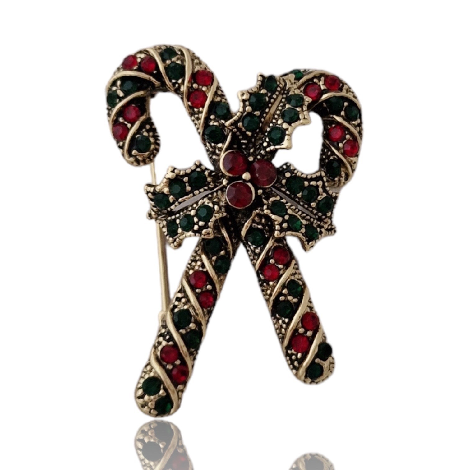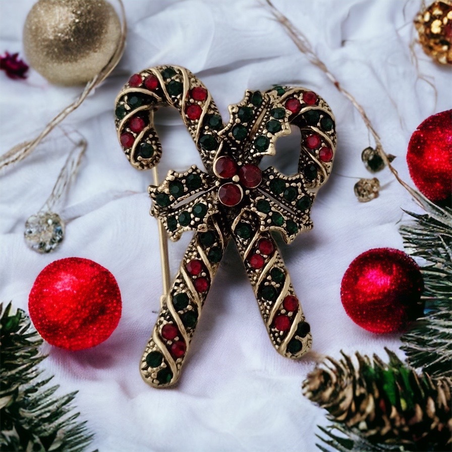 Apropierea sarbatorilor de iarna ne da o stare de bine, de bucurie si de incantare. Alege sa iti asortezi tinutele cu aceasta brosa din metal comun inoxidabil sub forma de bastonase de Craciun. Pietricelele rosii si verzi sunt Zirconii si te vor introduce pe loc in atmosfera sarbatorilor. Semnificatia bastonaselor de Craciun este una puternica ele reprezinta bastoanele folosite de catre Pastor pentru a-si aduce inapoi oile ratacite; metaforic ele ne ajuta pe fiecare dintre noi sa ne regasim, sa ne regasim drumul si directia in viata.
