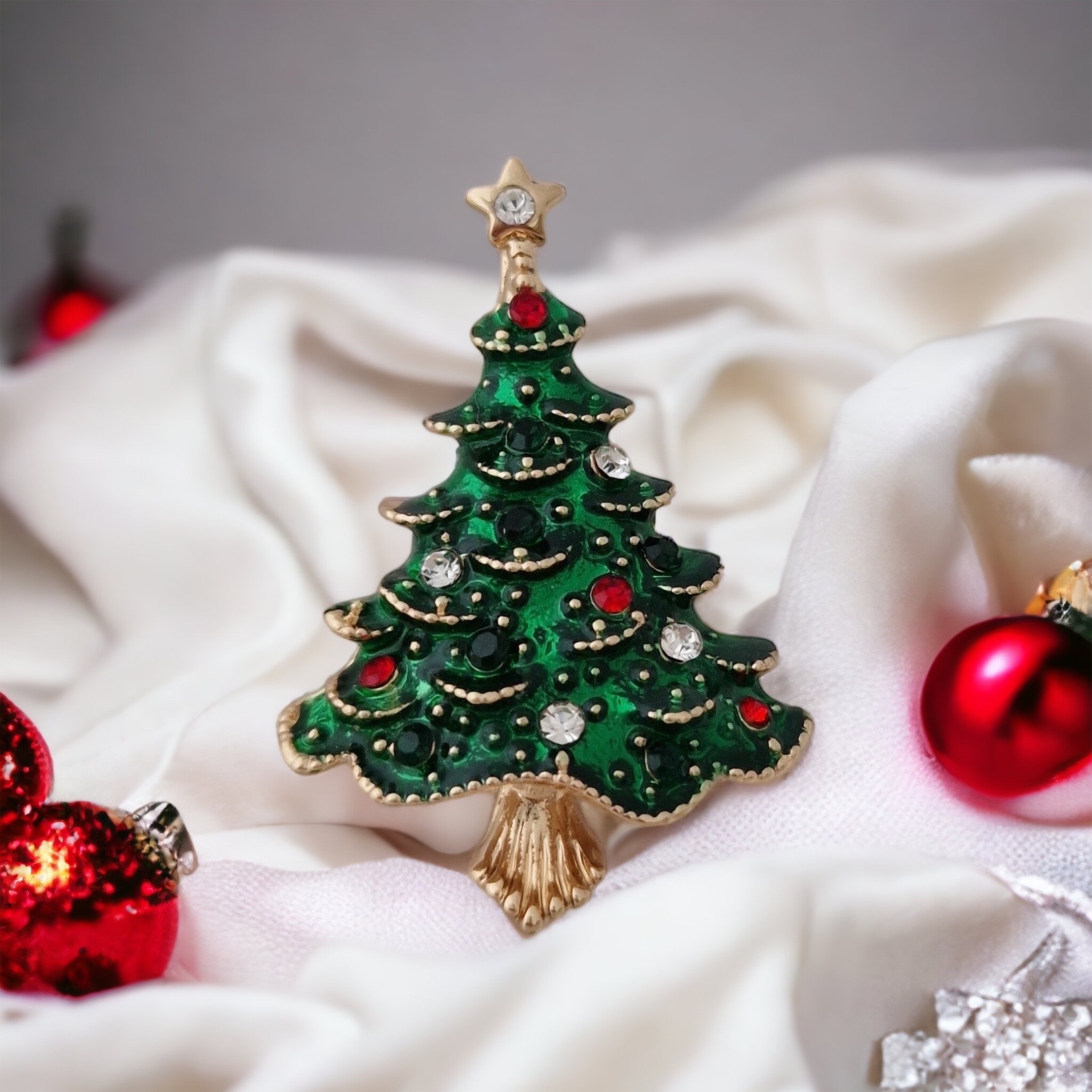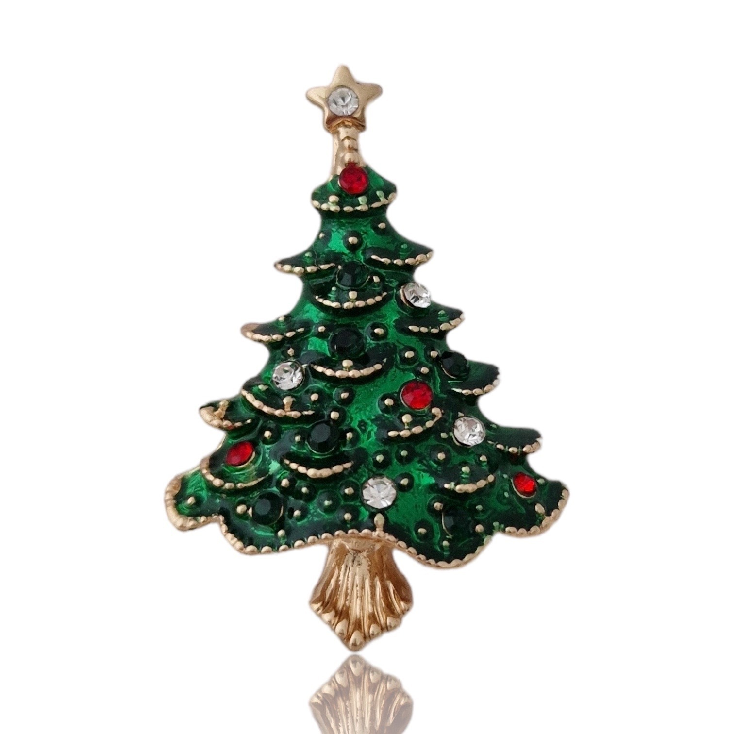 Apropierea sarbatorilor de iarna ne da o stare de bine, de bucurie si de incantare. Alege sa iti asortezi tinutele cu aceasta brosa din metal comun inoxidabil sub forma de brad de Craciun. Pietricelele rosii, verzi si albe sunt Zirconii si te vor introduce pe loc in atmosfera sarbatorilor.