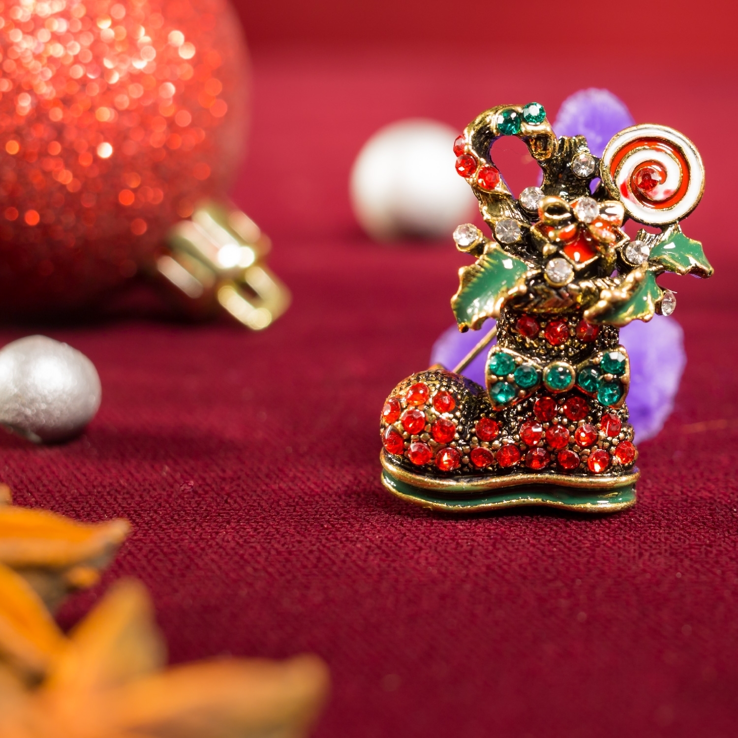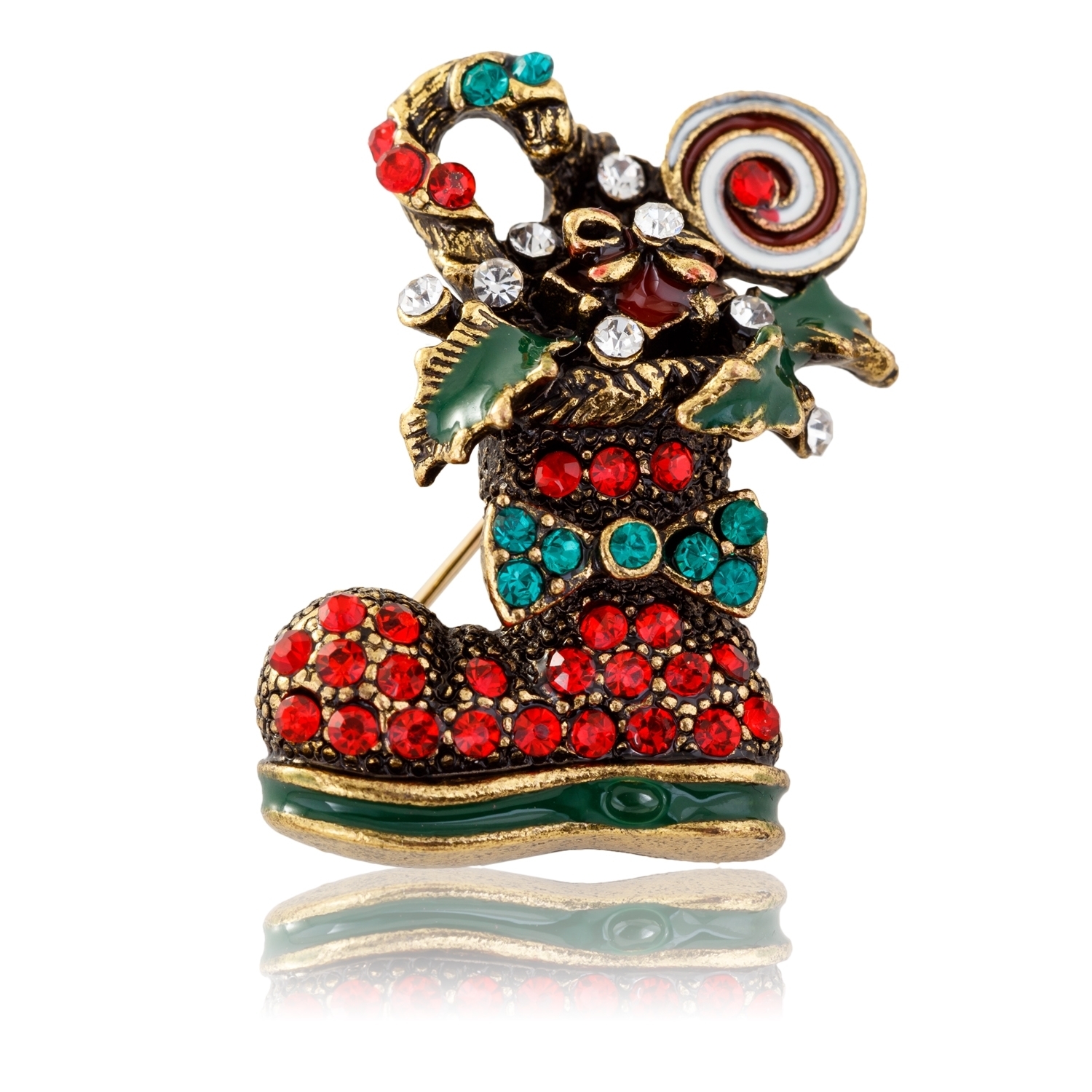 Apropierea sarbatorilor de iarna ne da o stare de bine, de bucurie si de incantare. Alege sa iti asortezi tinutele cu aceasta brosa din metal comun inoxidabil sub forma de cizmulita de Craciun. Pietricelele albe, rosii si verzi sunt Zirconii si te vor introduce pe loc in atmosfera sarbatorilor. Cizmulitele de Craciun sunt puse de copii pentru a-l astepta pe Mos Craciun. Sunt un motiv de sarbatoare cand acestia se trezesc si le gasesc pline de cadouri. Aceasta brosa este perfecta atat pentru a o purta in perioada inaintea si in timpul sarbatorilor cat si pentru a fi oferita cadou unei persoane dragi. Micuta, draguta si in culori de sarbatoare, aceasta brosa iti va scoate in evidenta tinuta de fiecare data cand o vei purta si te va inveseli.