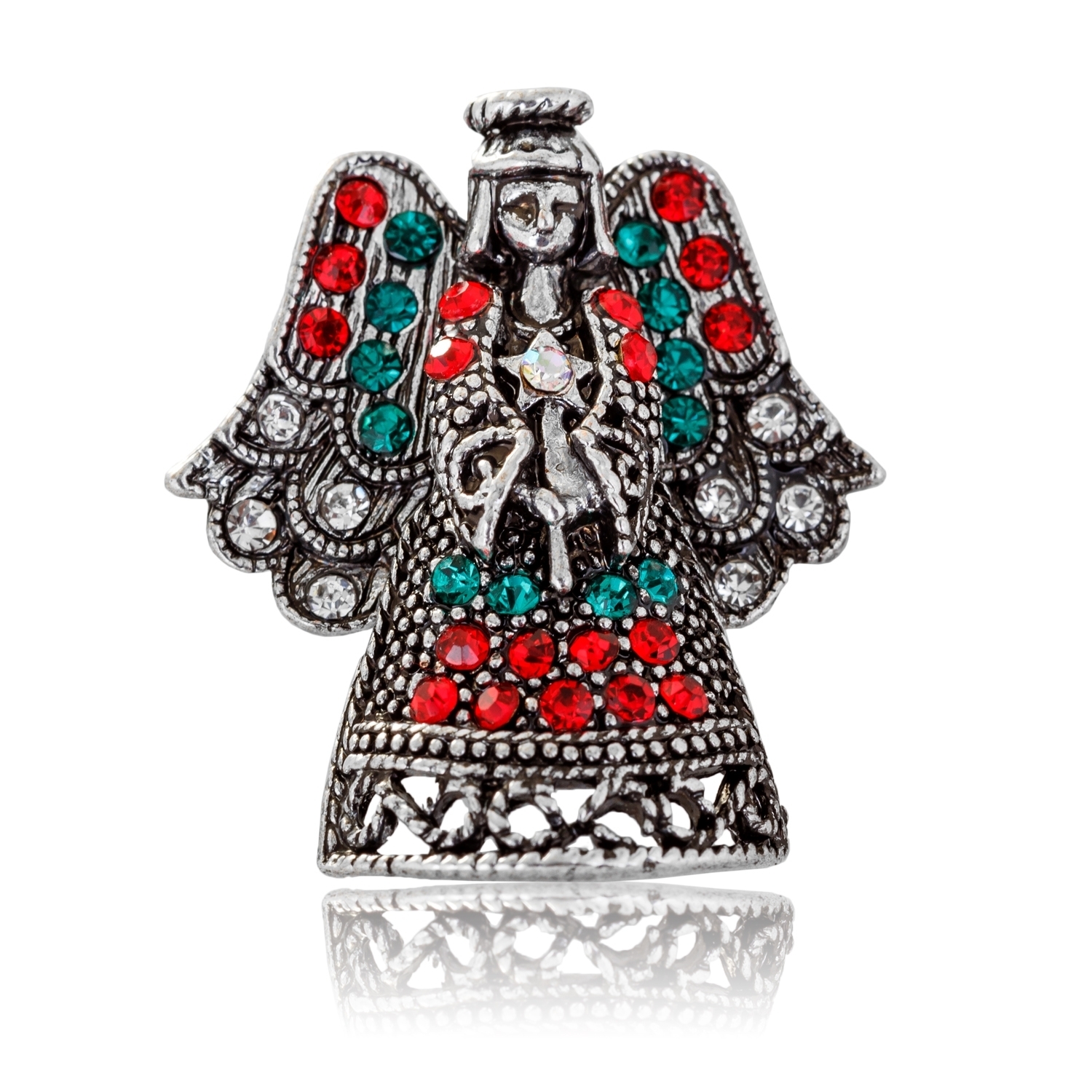 Apropierea sarbatorilor de iarna ne da o stare de bine, de bucurie si de incantare. Alege sa iti asortezi tinutele cu aceasta brosa din metal comun inoxidabil sub forma de Ingeras. Pietricelele albe, rosii si verzi sunt Zirconii si te vor introduce pe loc in atmosfera sarbatorilor. Aceasta brosa este perfecta atat sa o purtati dvs cat si sa o oferiti cadou unei persoane dragi. Suntem siguri ca va fi foarte apreciata. Ingerasii sunt vestitorii nasterii lui Hristos, sunt spiritele bune care umplu vazduhul de cantec si inimile oamenilor cu bucurie speranta si iubire.
