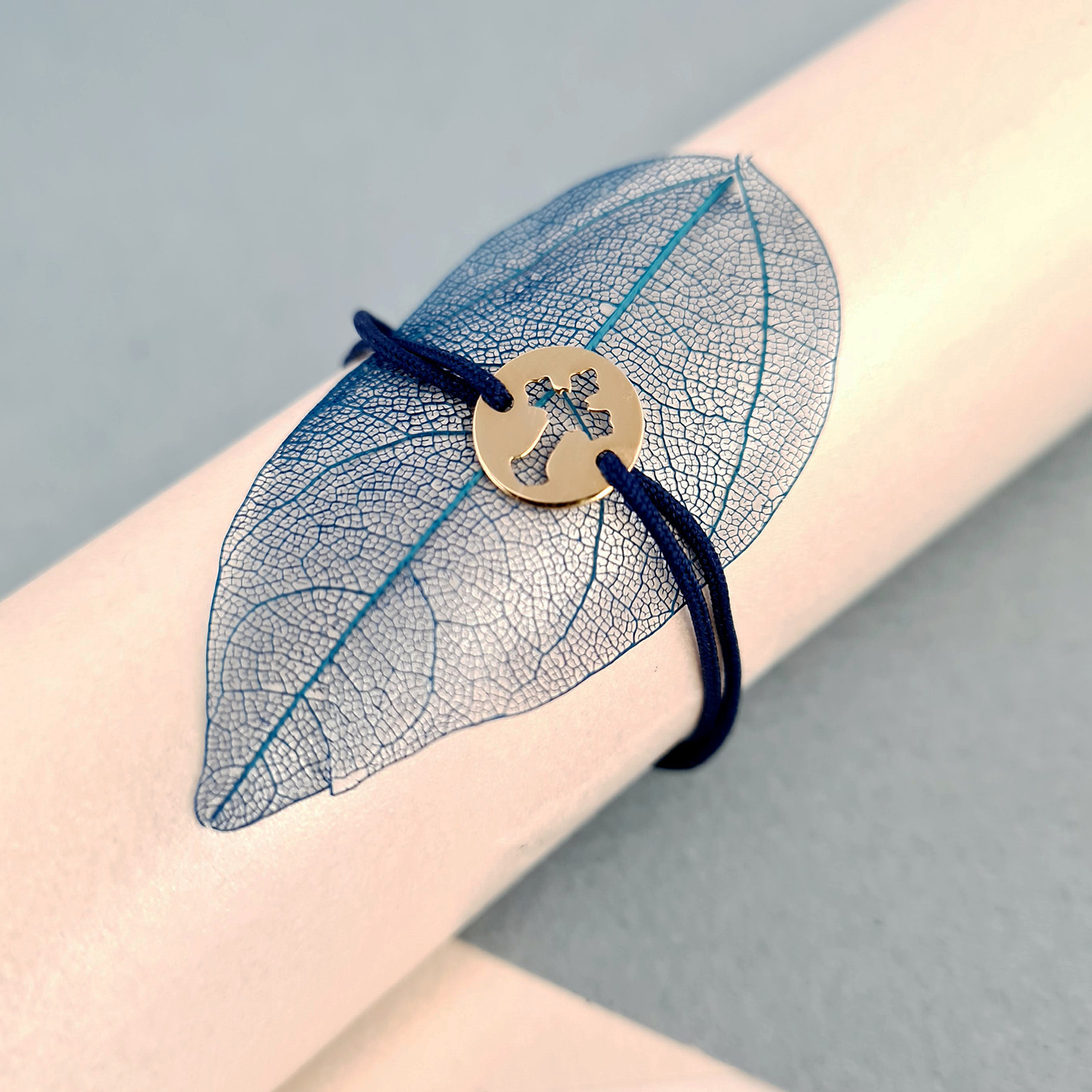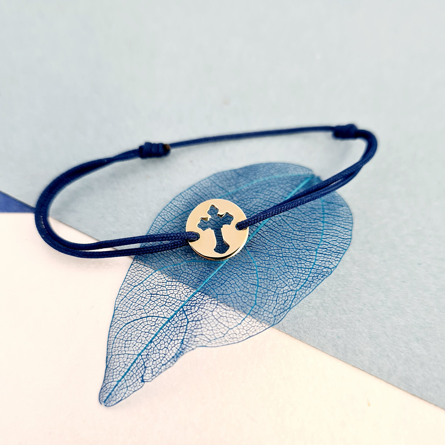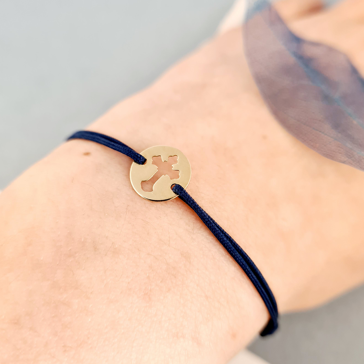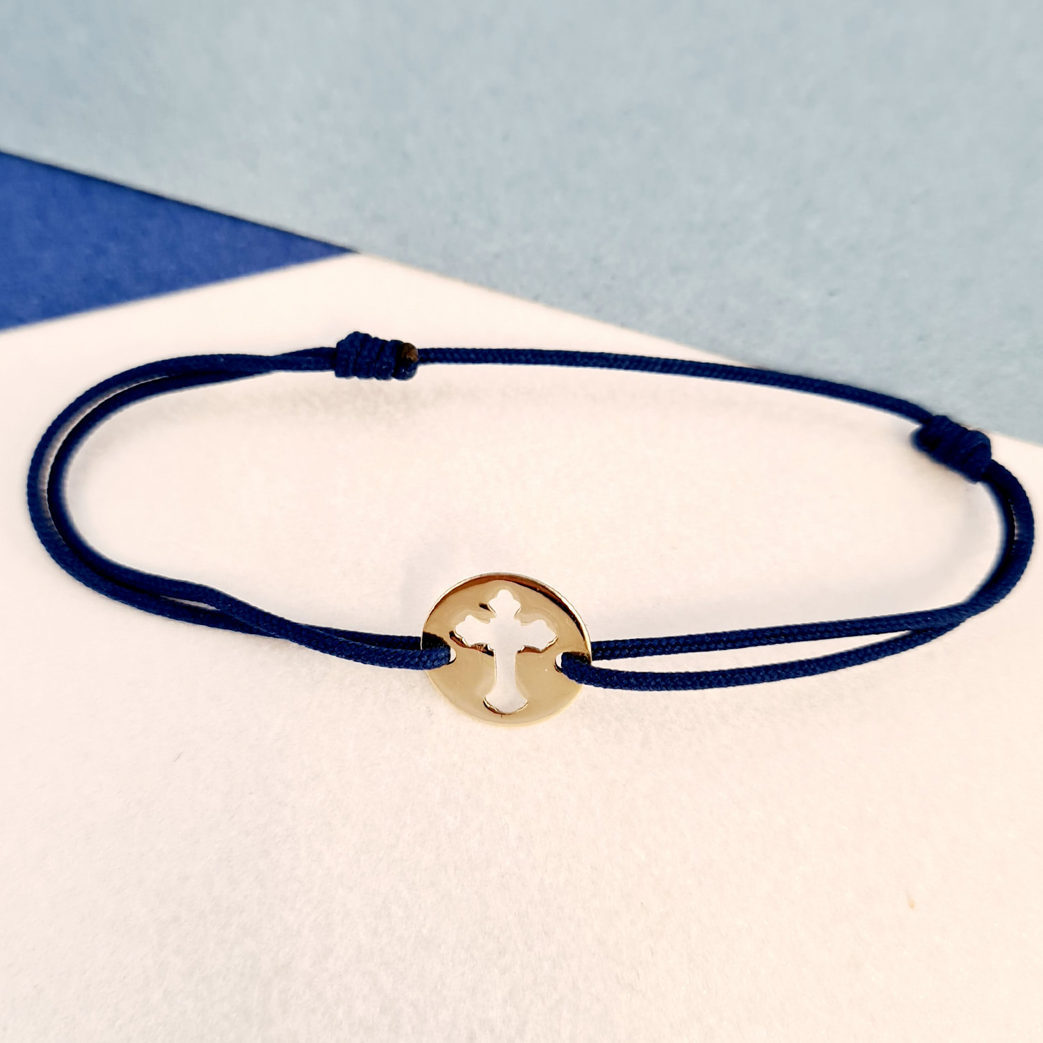 Bratara banut - Cruce decupata - Aur Galben 9K - snur reglabil