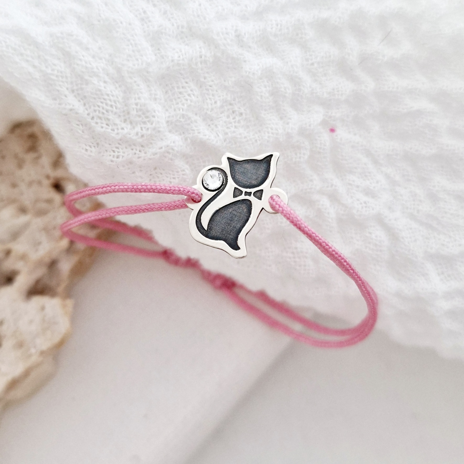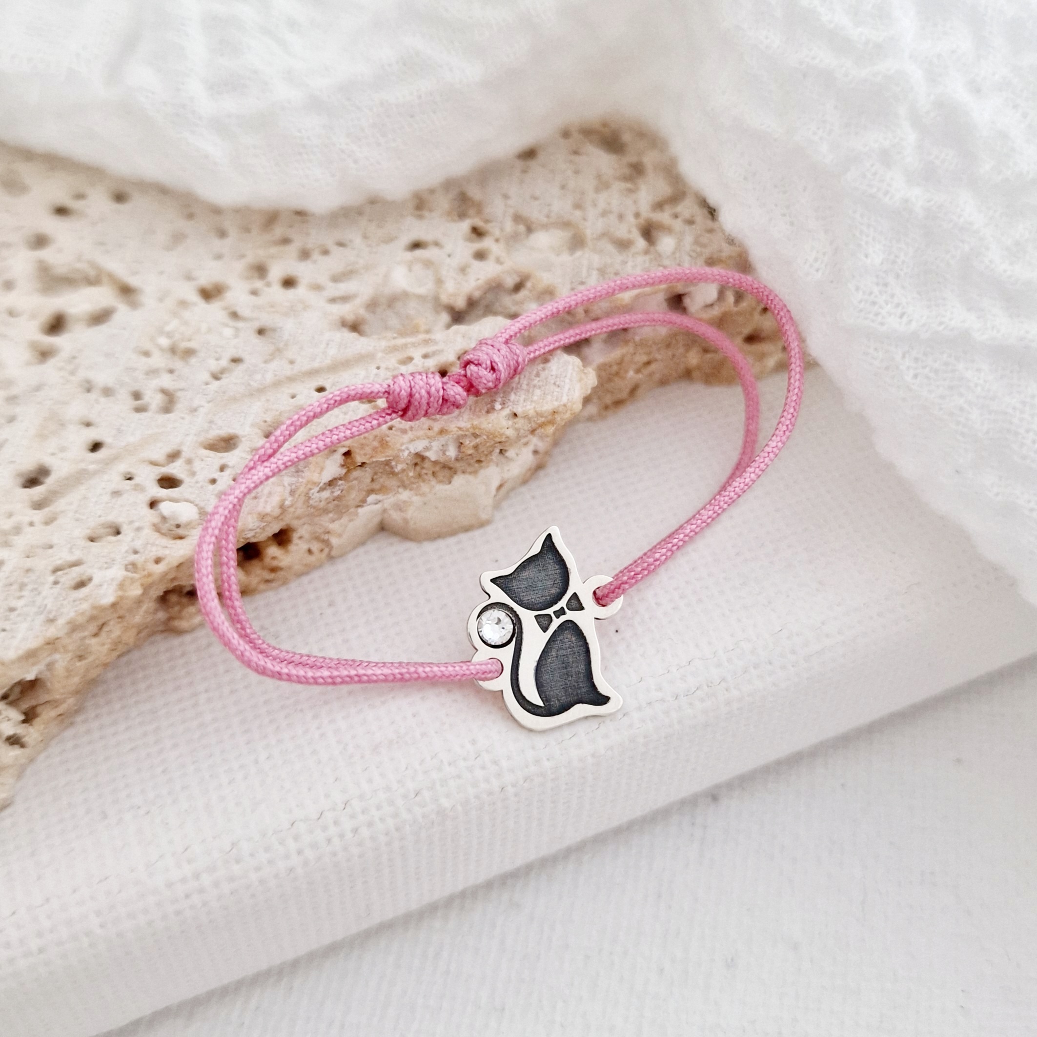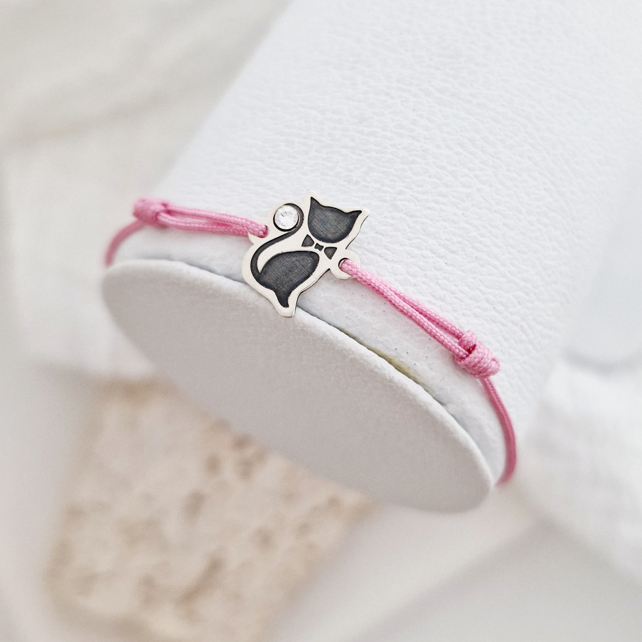 Bratara Pisica cu papion - Argint 925 - cristal Swarovski - snur reglabil