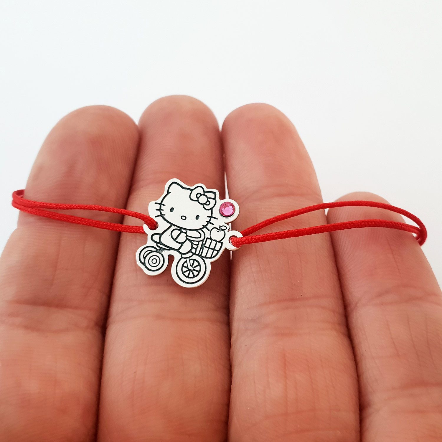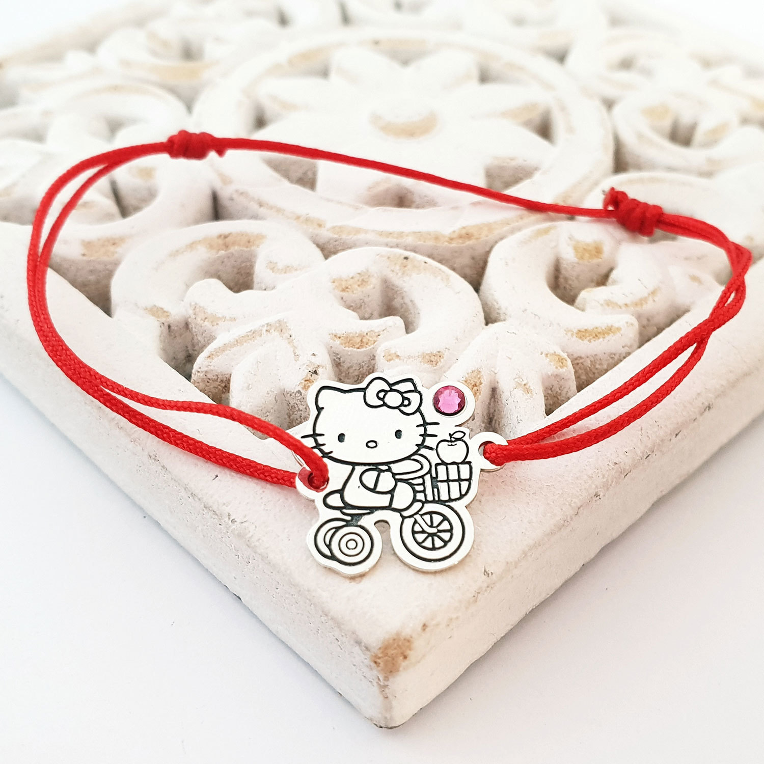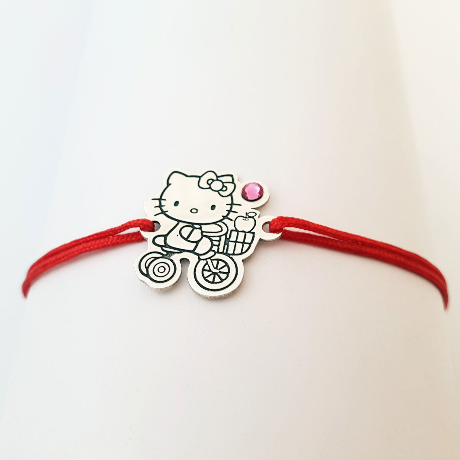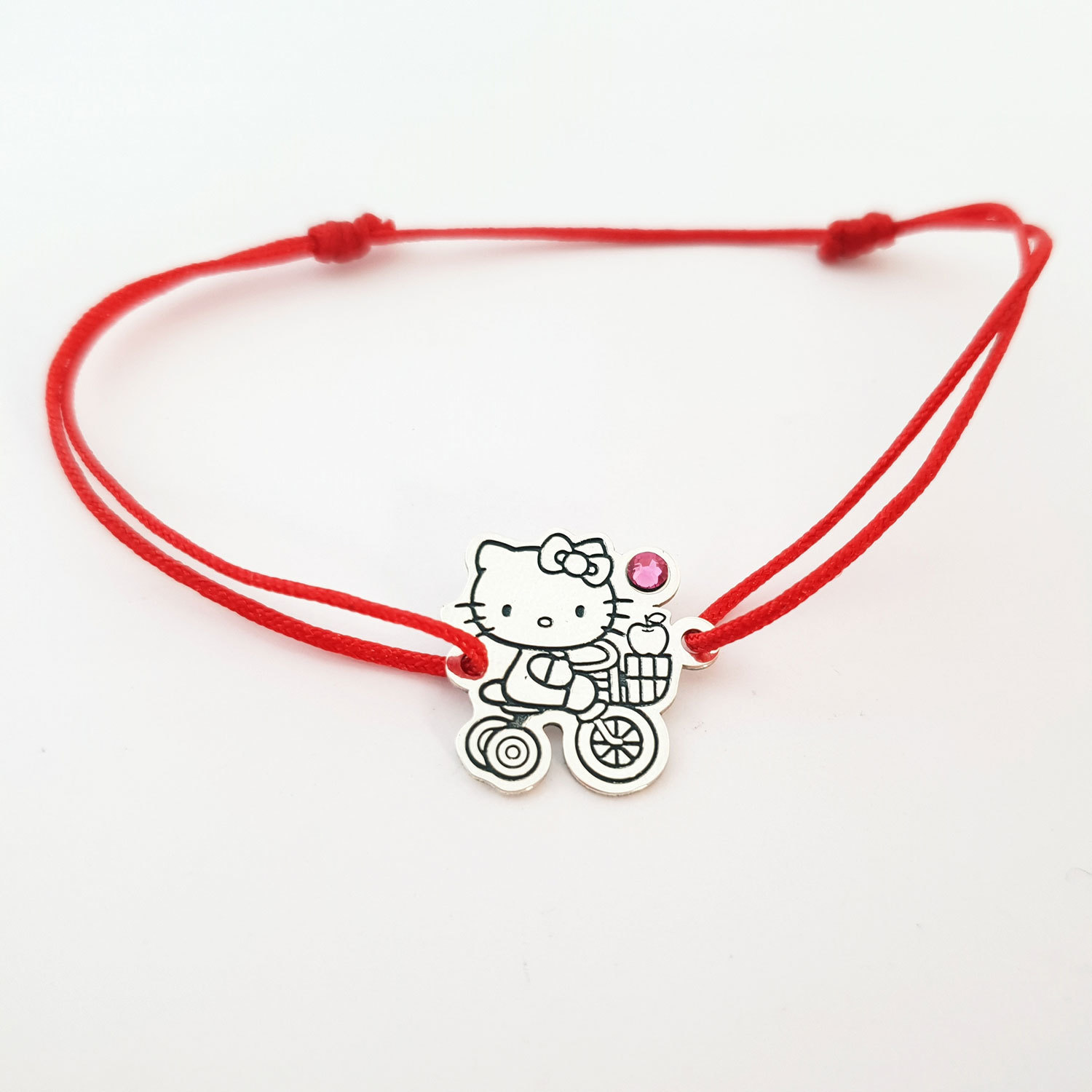 Bratara personaj - Hello Kitty - model decupat - Argint 925 - cristal Swarovski - snur reglabil