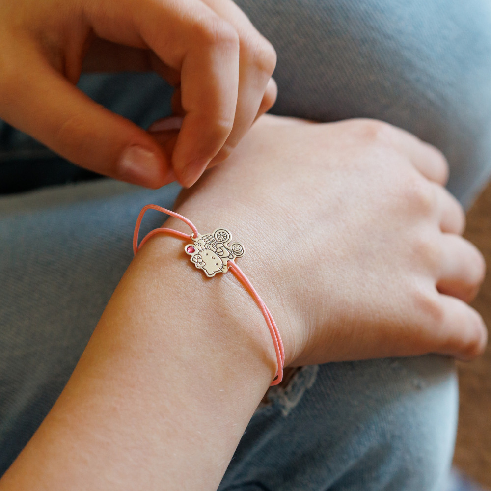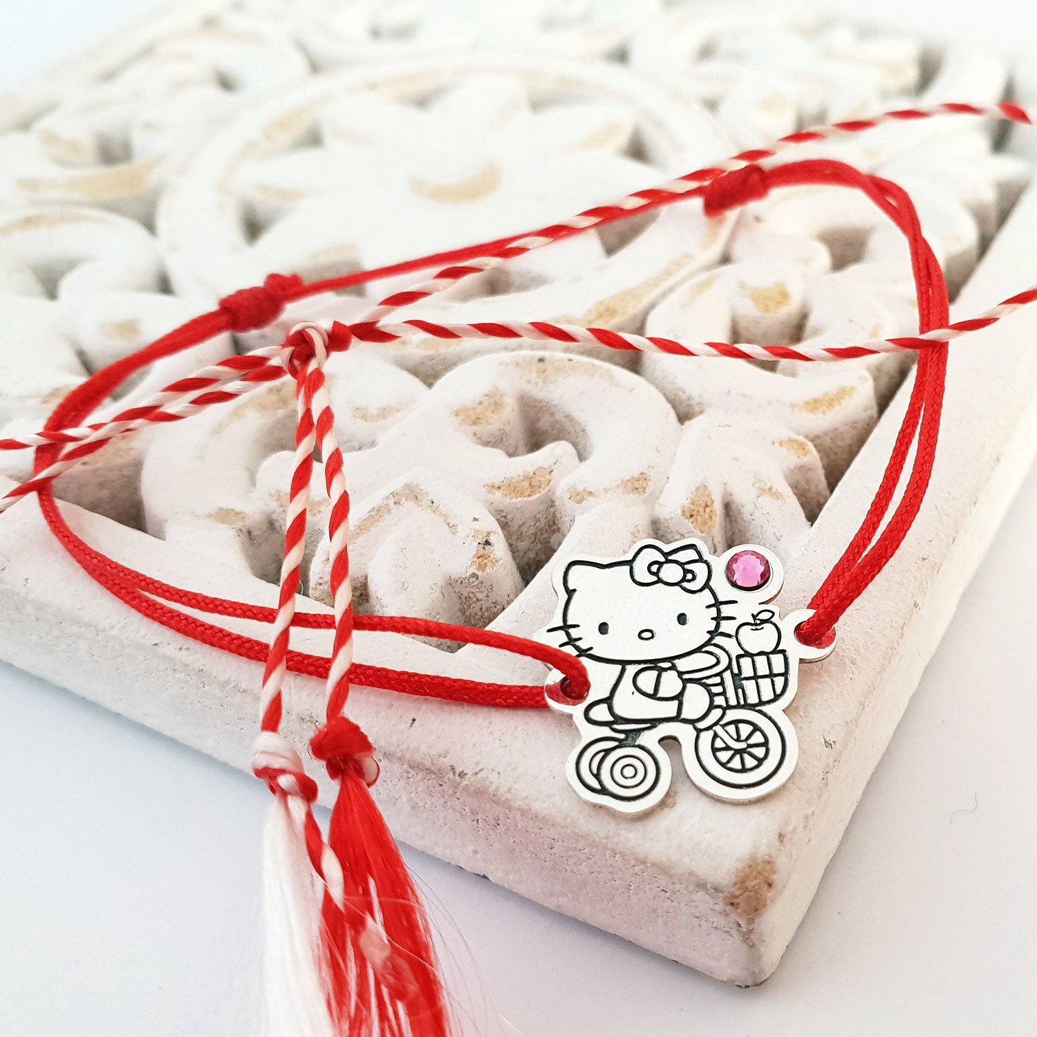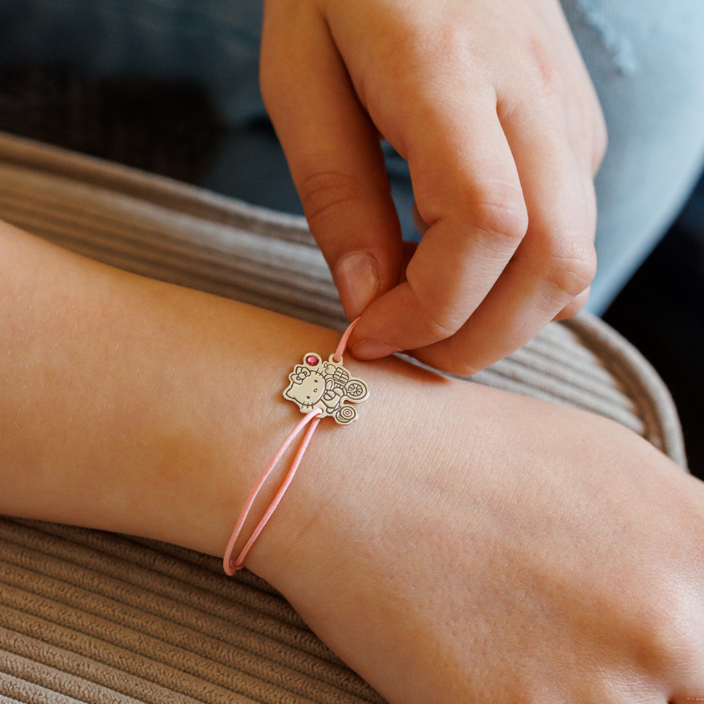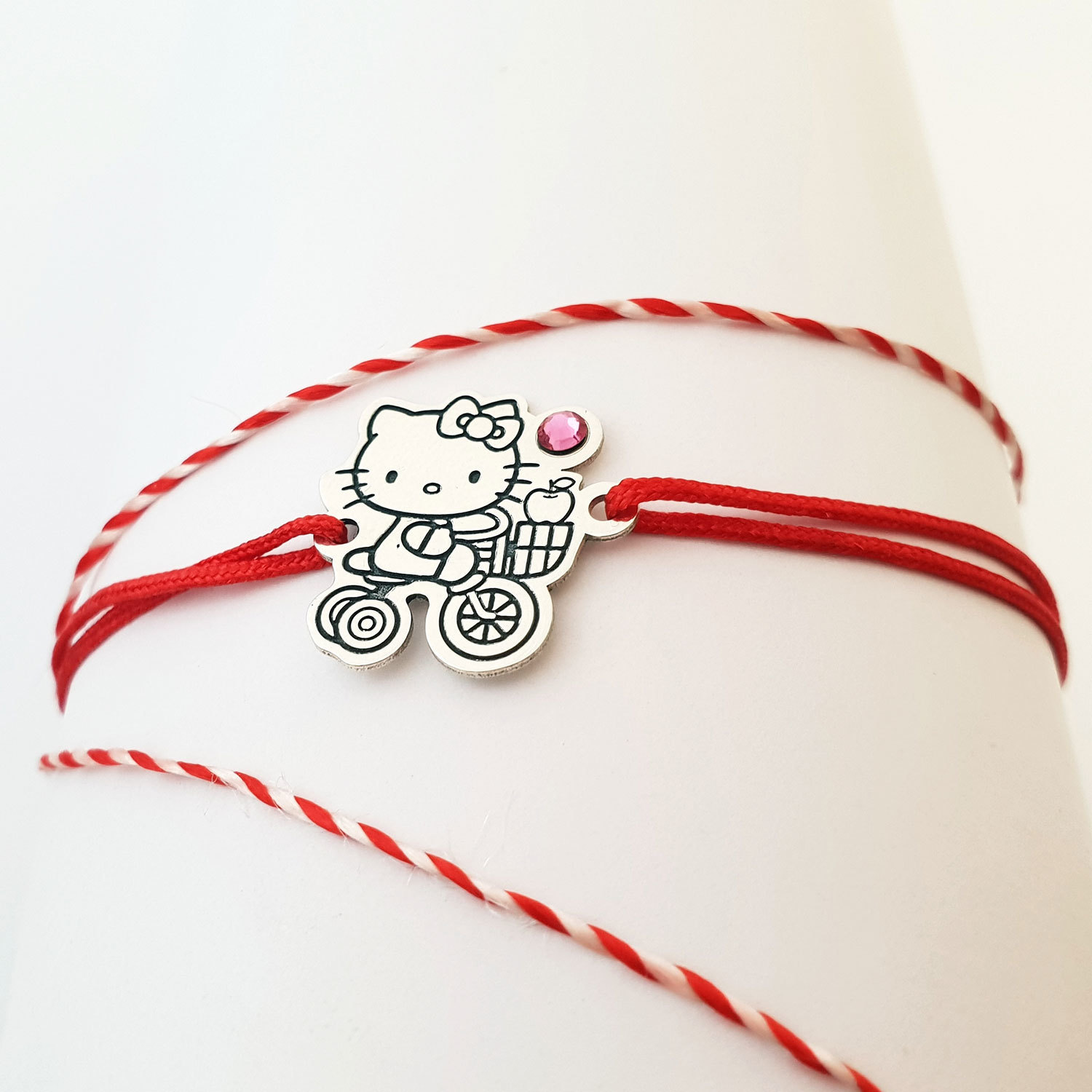 Bratara personaj - Hello Kitty - model decupat - Argint 925 - cristal Swarovski - snur reglabil