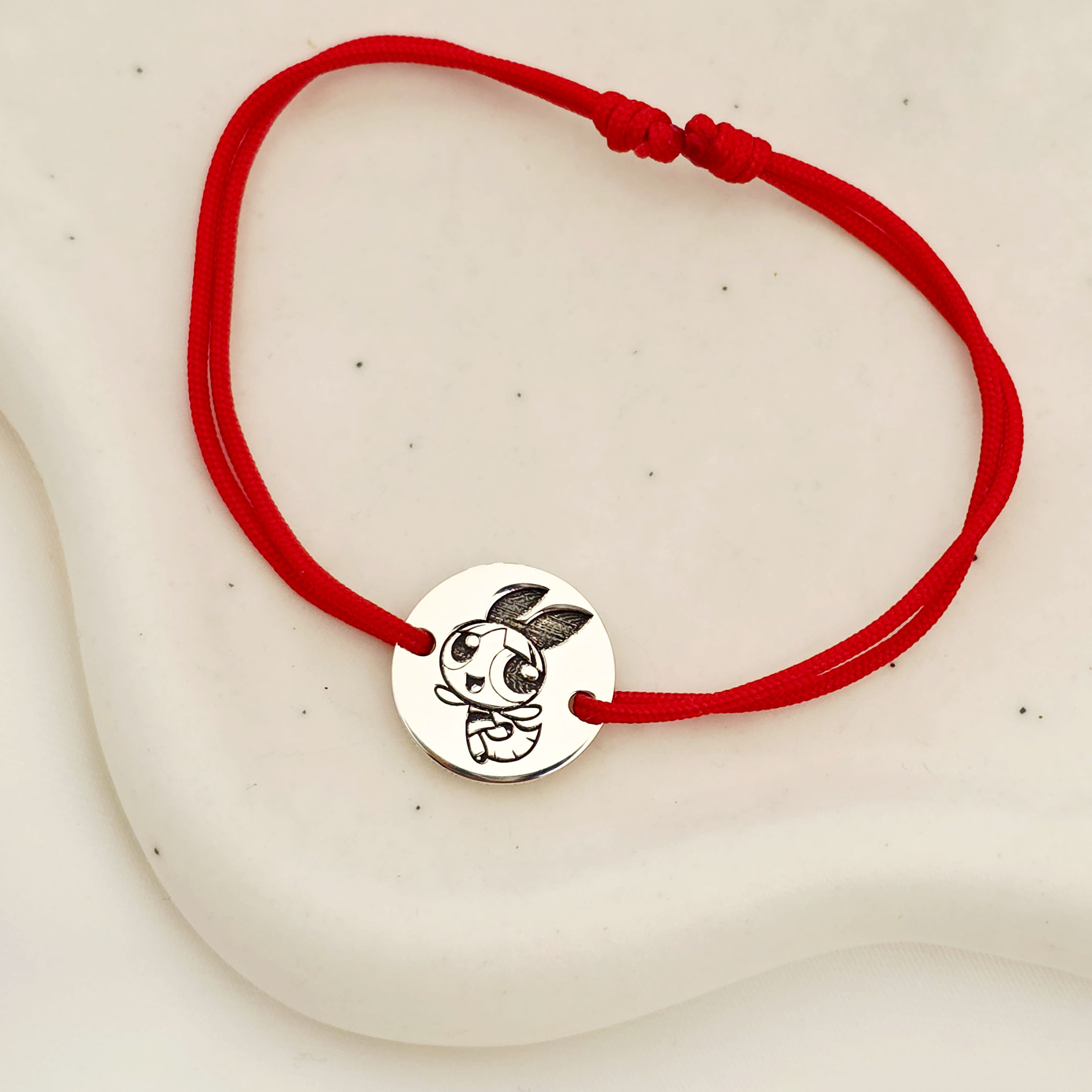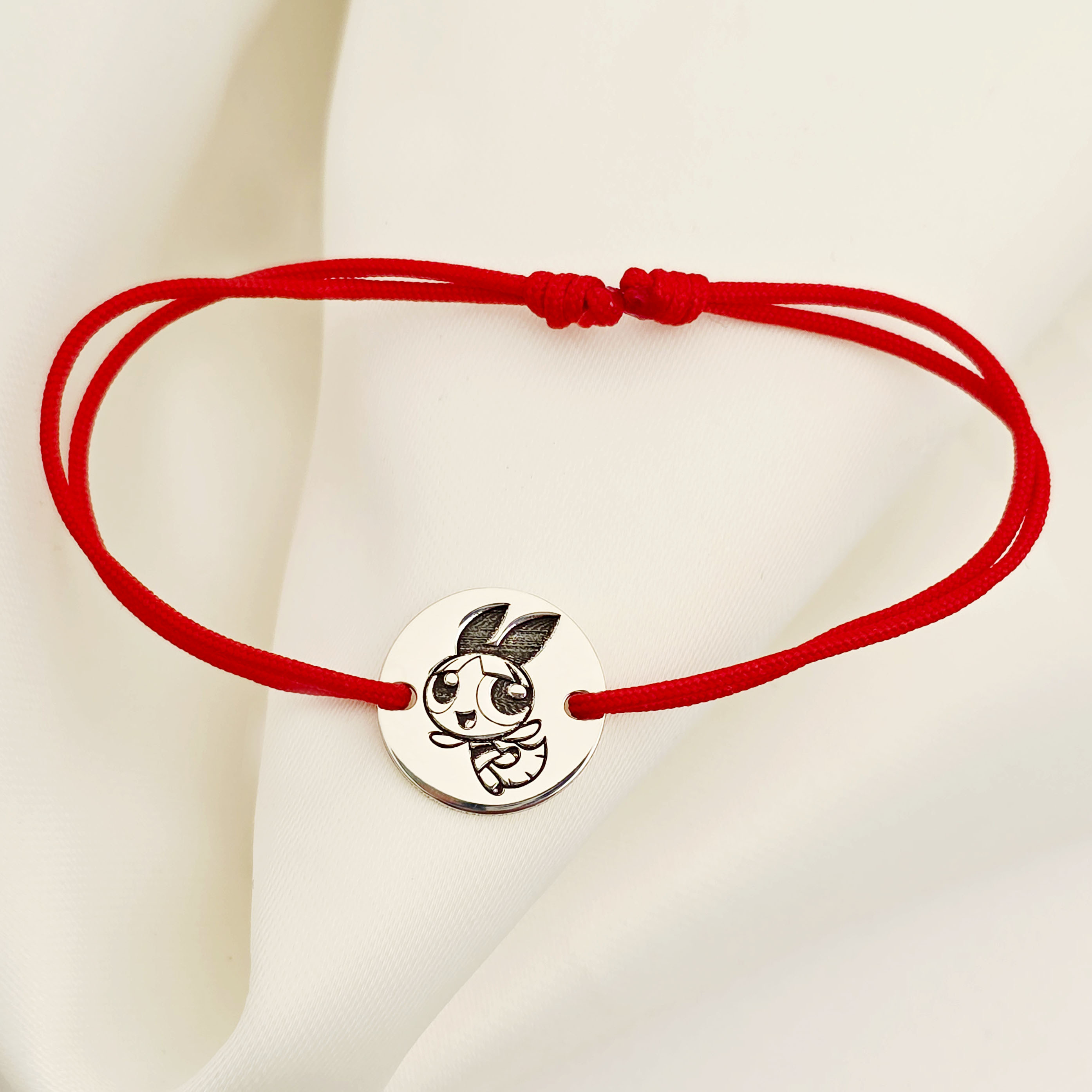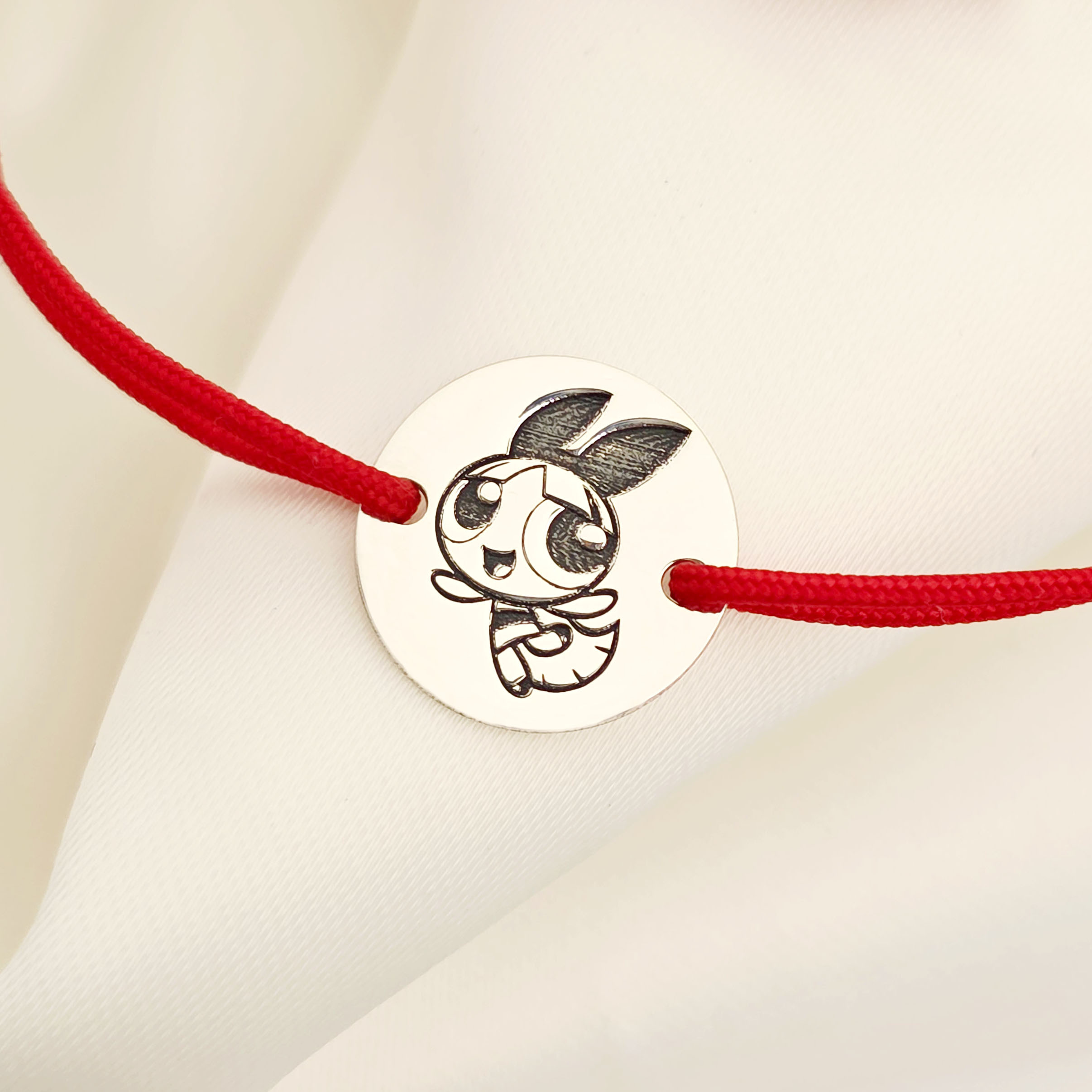 Bratara personalizata - Banut 12mm - Blossom - Fetitele Powerpuff - Argint 925 - snur reglabil rosu