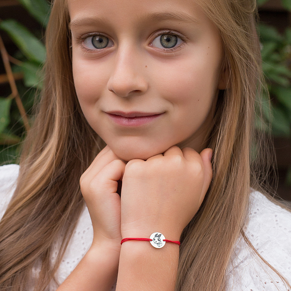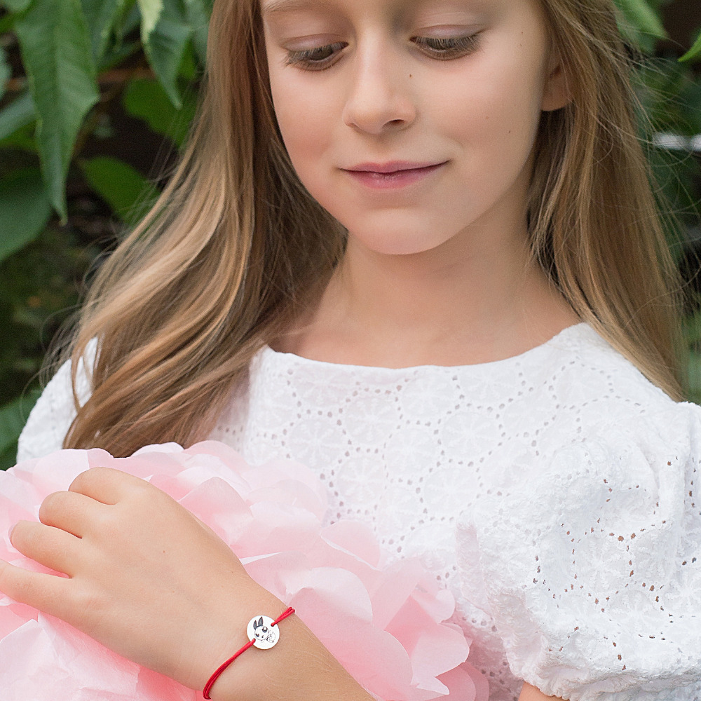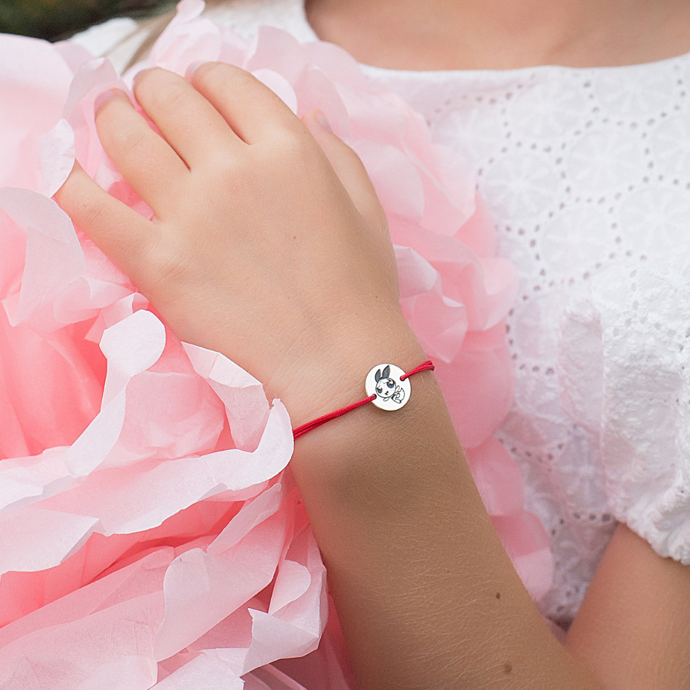 Bratara personalizata - Banut 12mm - Blossom - Fetitele Powerpuff - Argint 925 - snur reglabil rosu