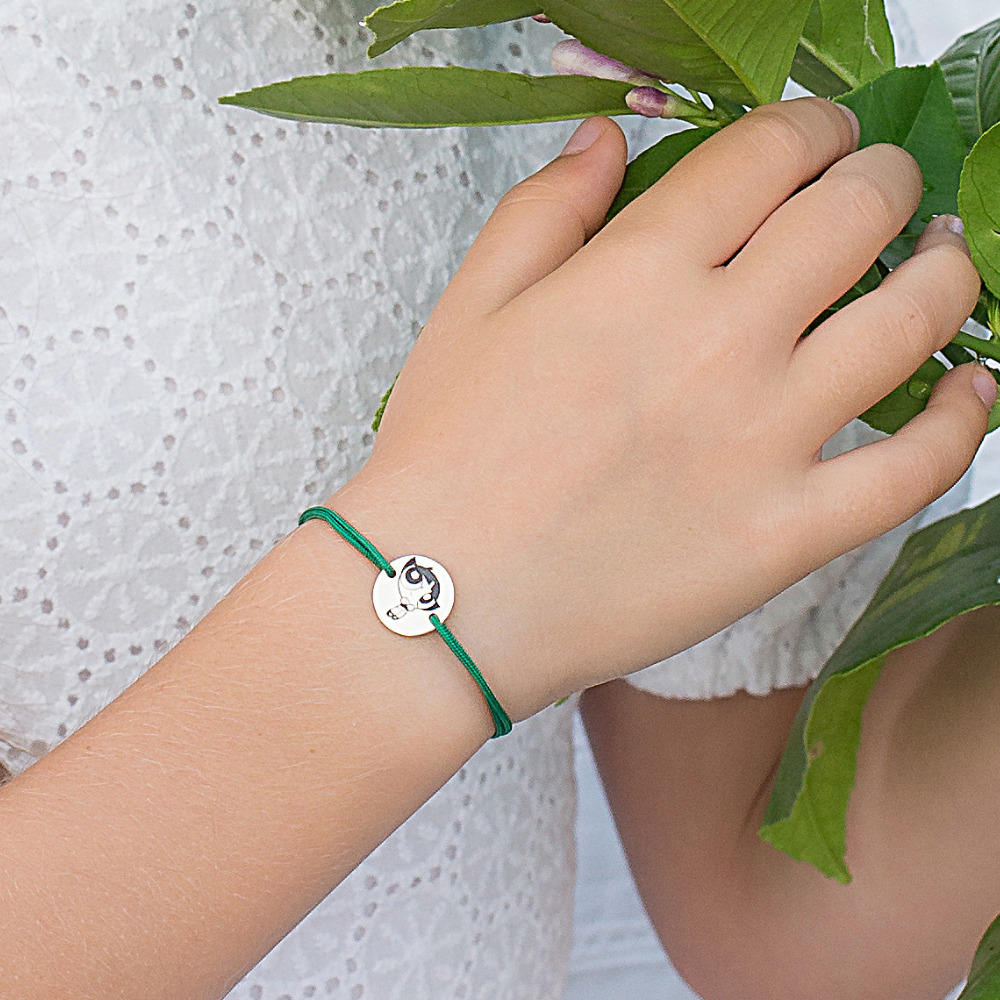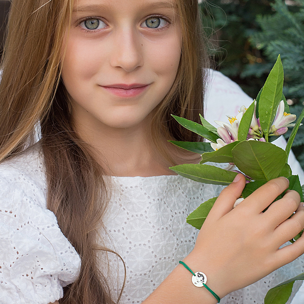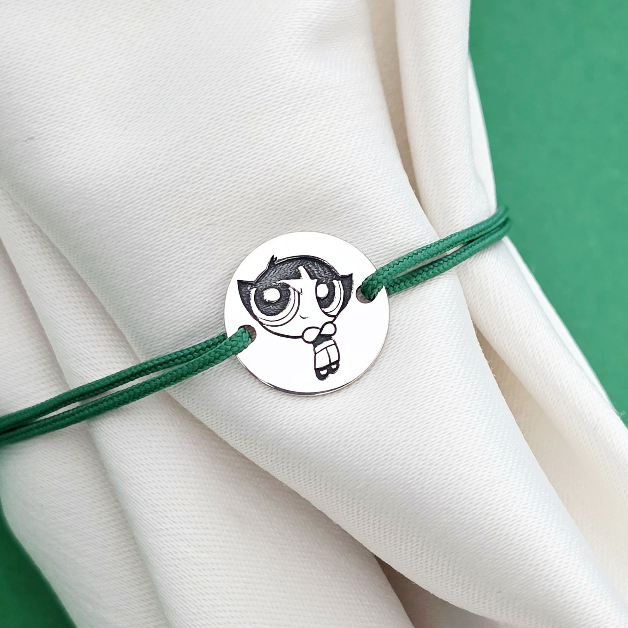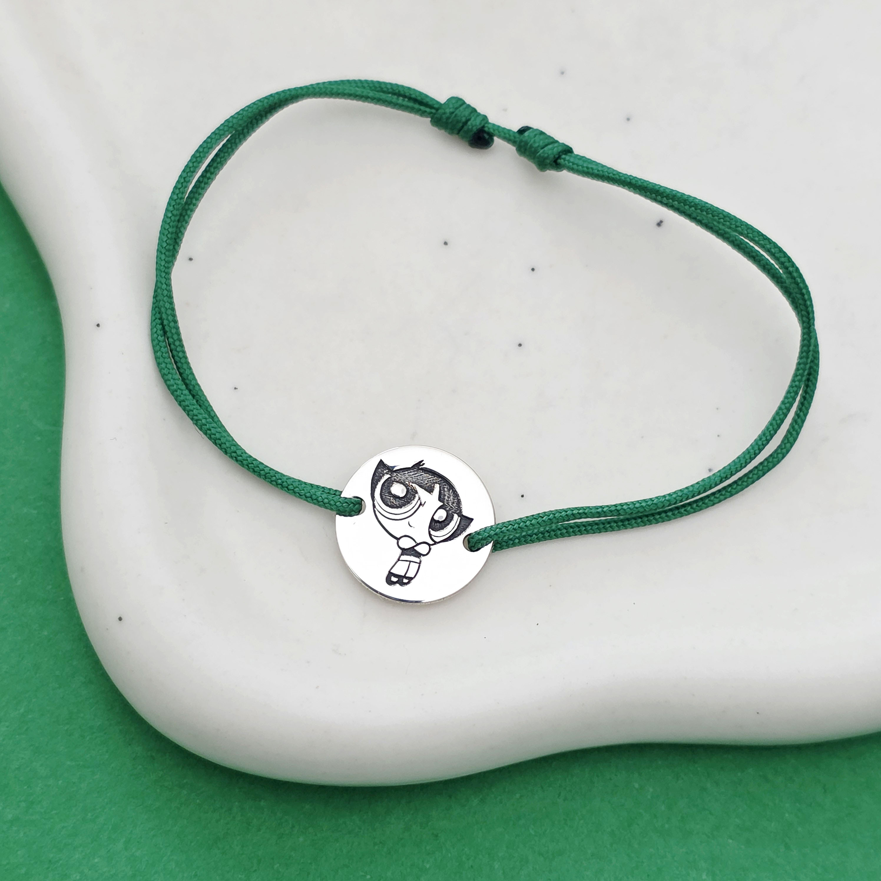 Bratara personalizata - Banut 12mm - Buttercup - Fetitele Powerpuff - Argint 925 - snur reglabil verde