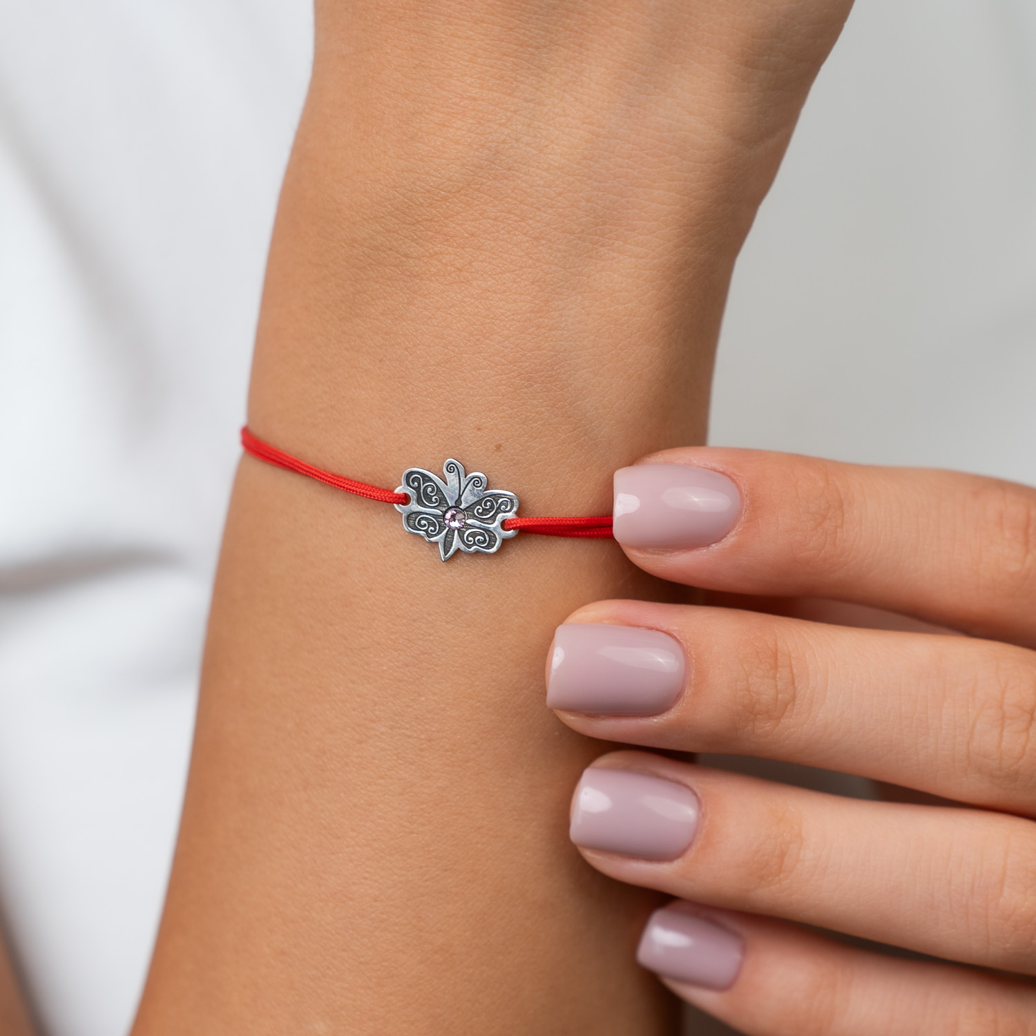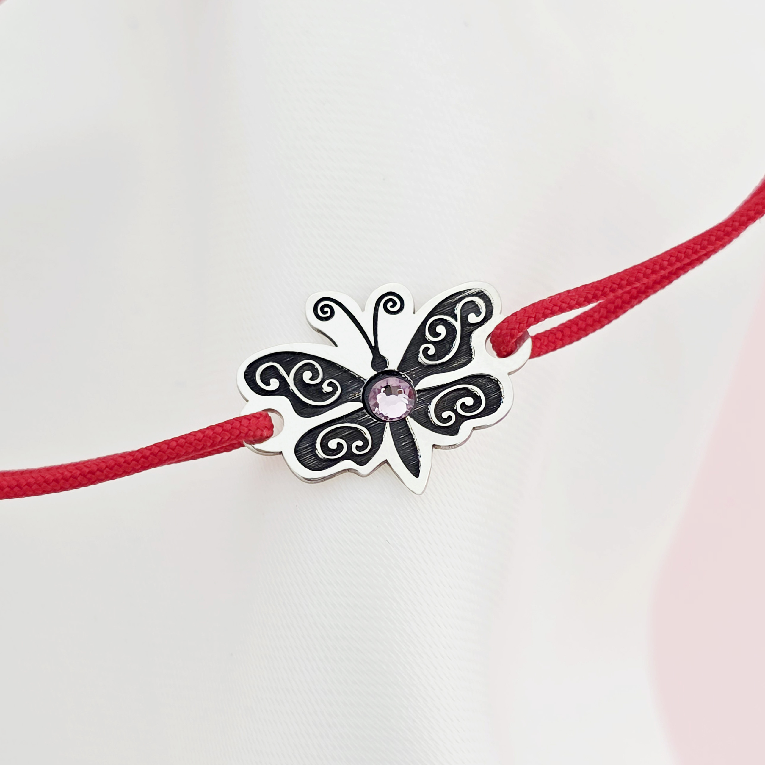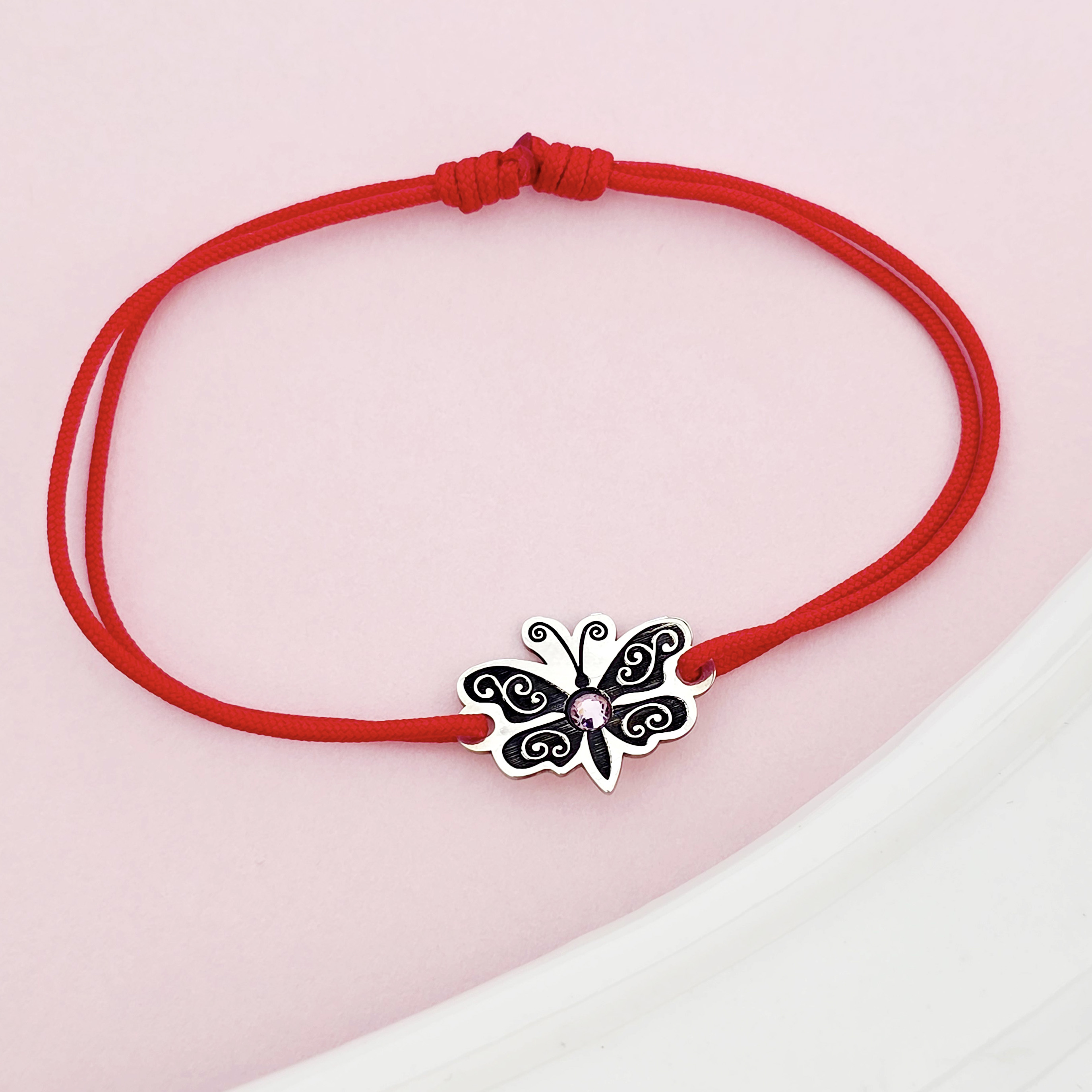 Bratara Fluture cu aripile deschise - Argint 925 - cristal Swarovski - snur reglabil