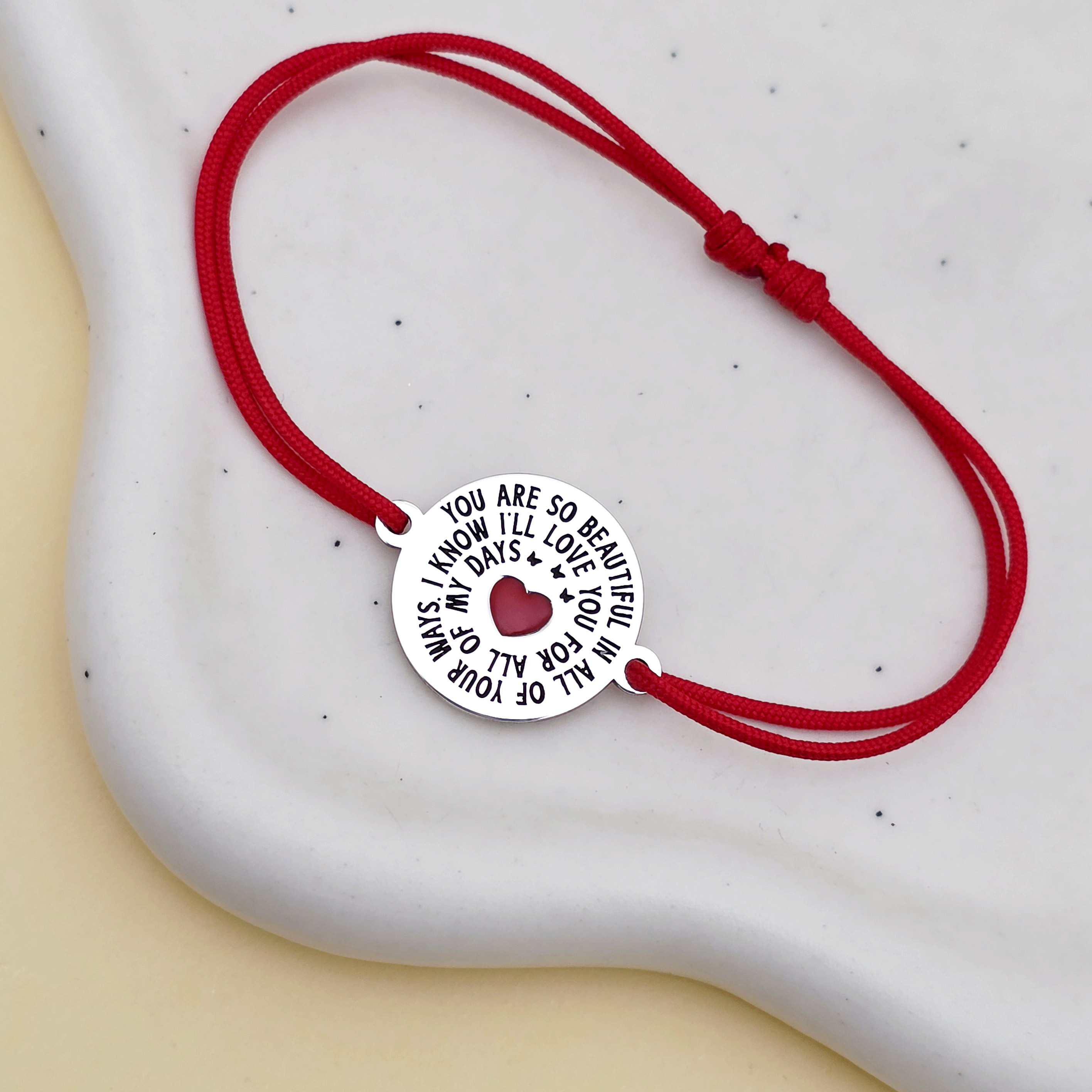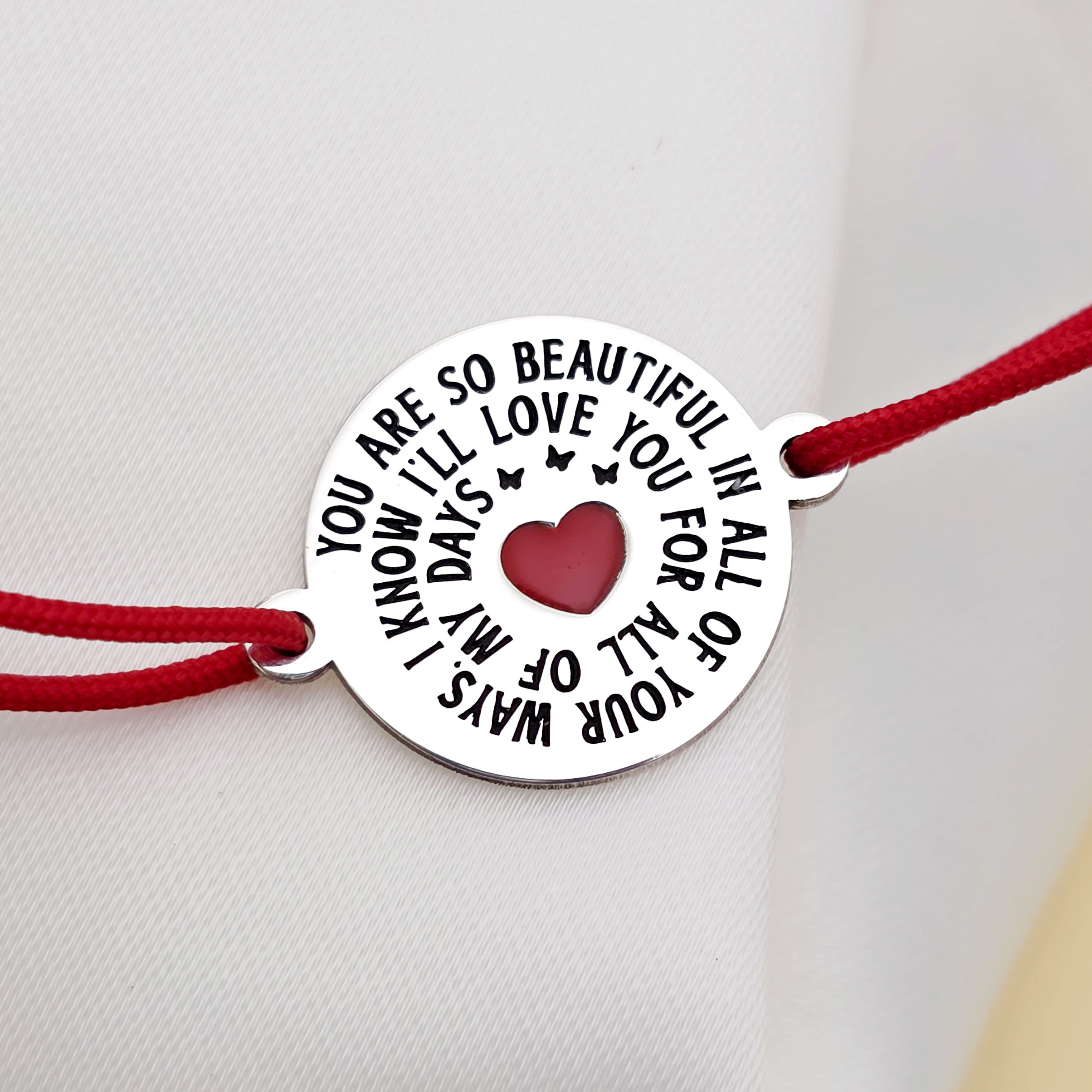 - Bijuteria are o inima din eamil rosu in mijloc, iar de jur imprejur un text gravat.