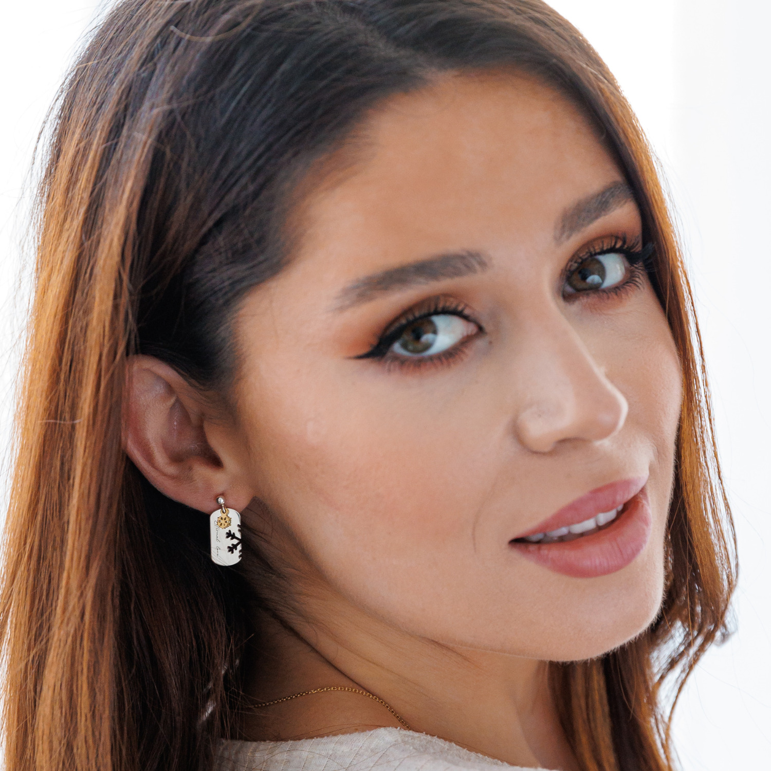 Cercei festivi - Urma de Fulg - Placuta din Argint 925 si Fulg din Argint 925 placat cu Aur Galben 18K - Inchizatoare surub