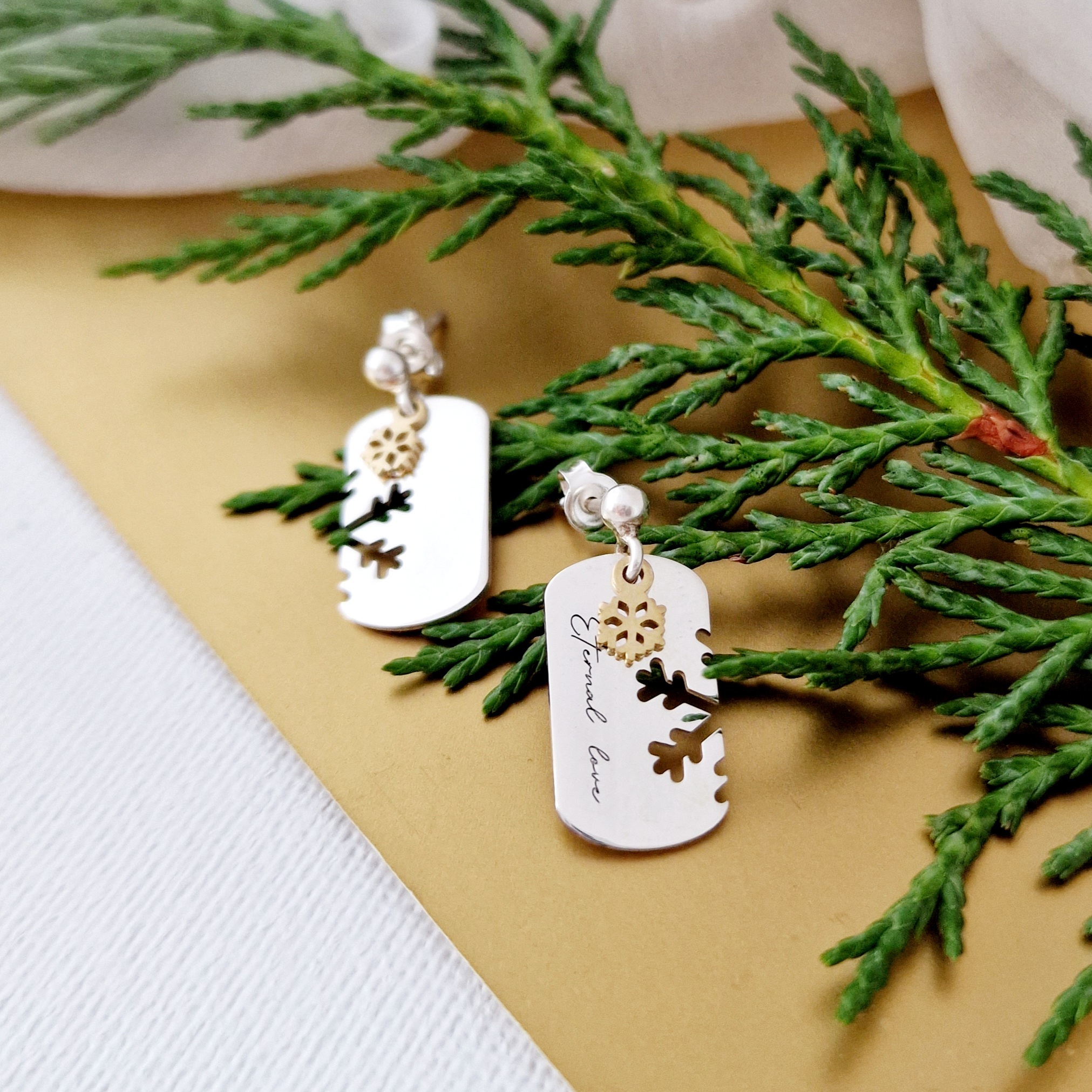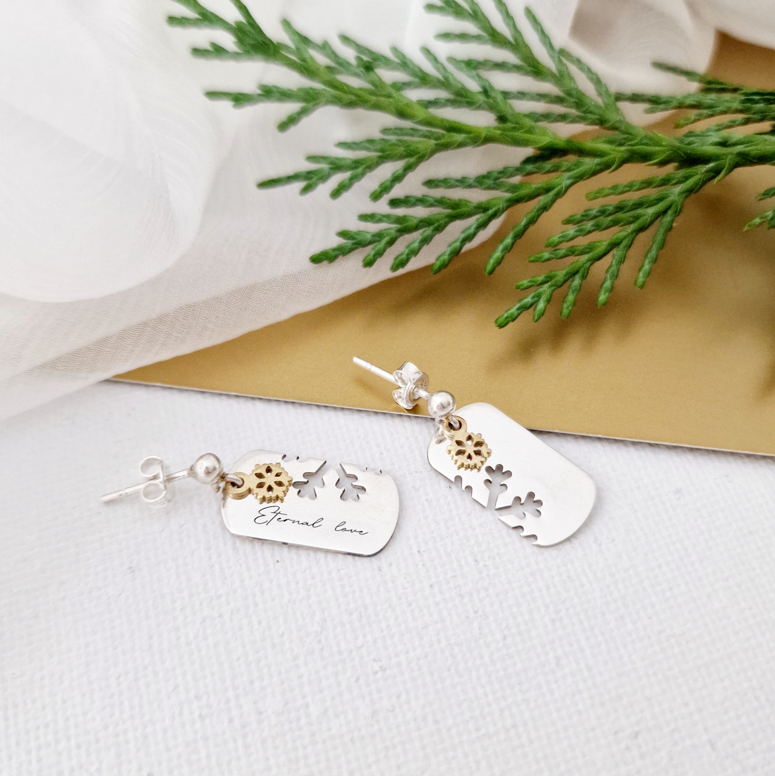 În lumina sărbătorilor, eleganța devine emoție pură. Cerceii „Urma de Fulg” din colecția de Bijuterii Festive poartă un mesaj discret, dar intens, gravat pe ua dintre piese: „Eternal Love”.