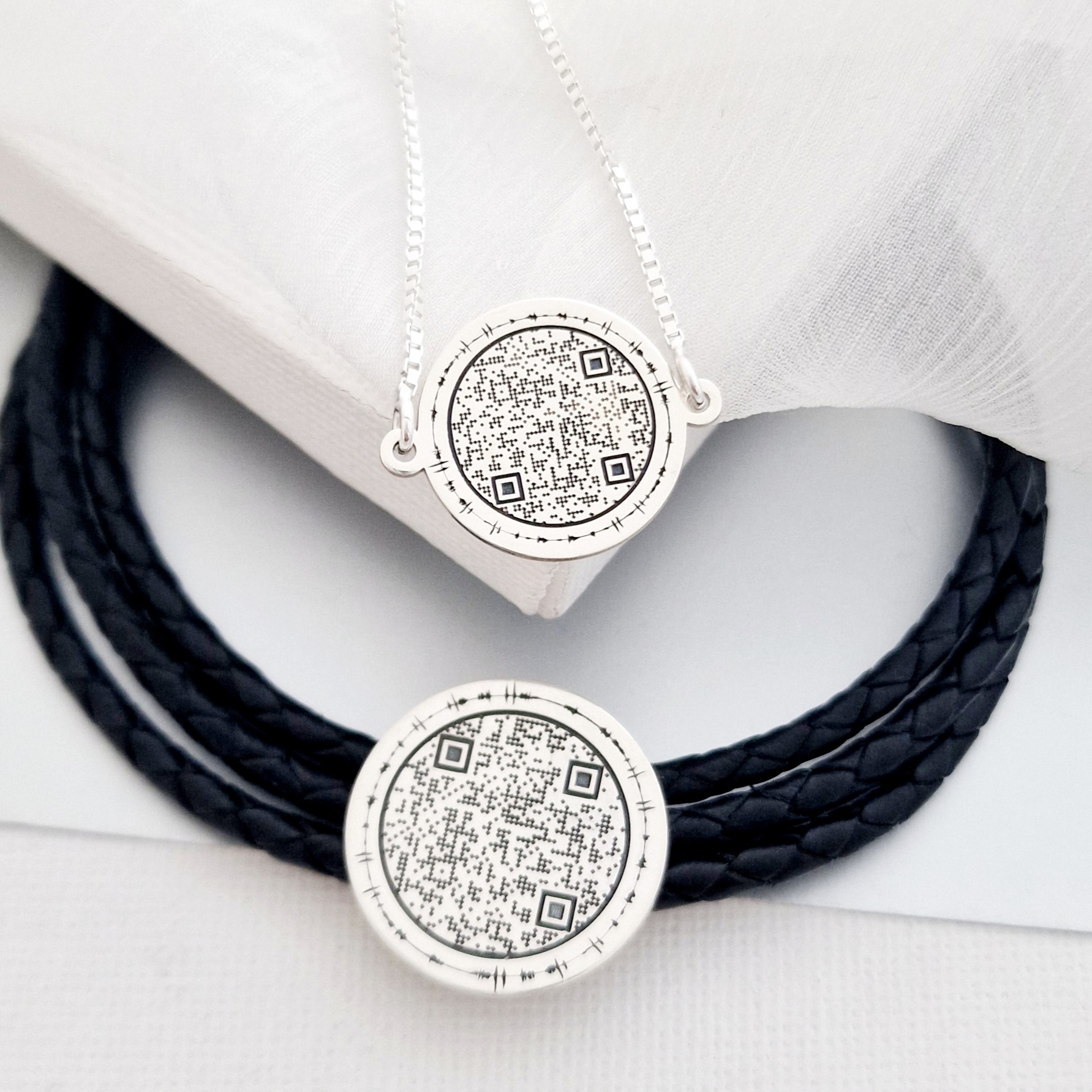 Alege bijuteriile cu QR code gravat si ai un mod unic de a transmite persoanei iubite un mesaj de dragoste, o amintire, un link sau chiar o cerere in casatorie inedita!