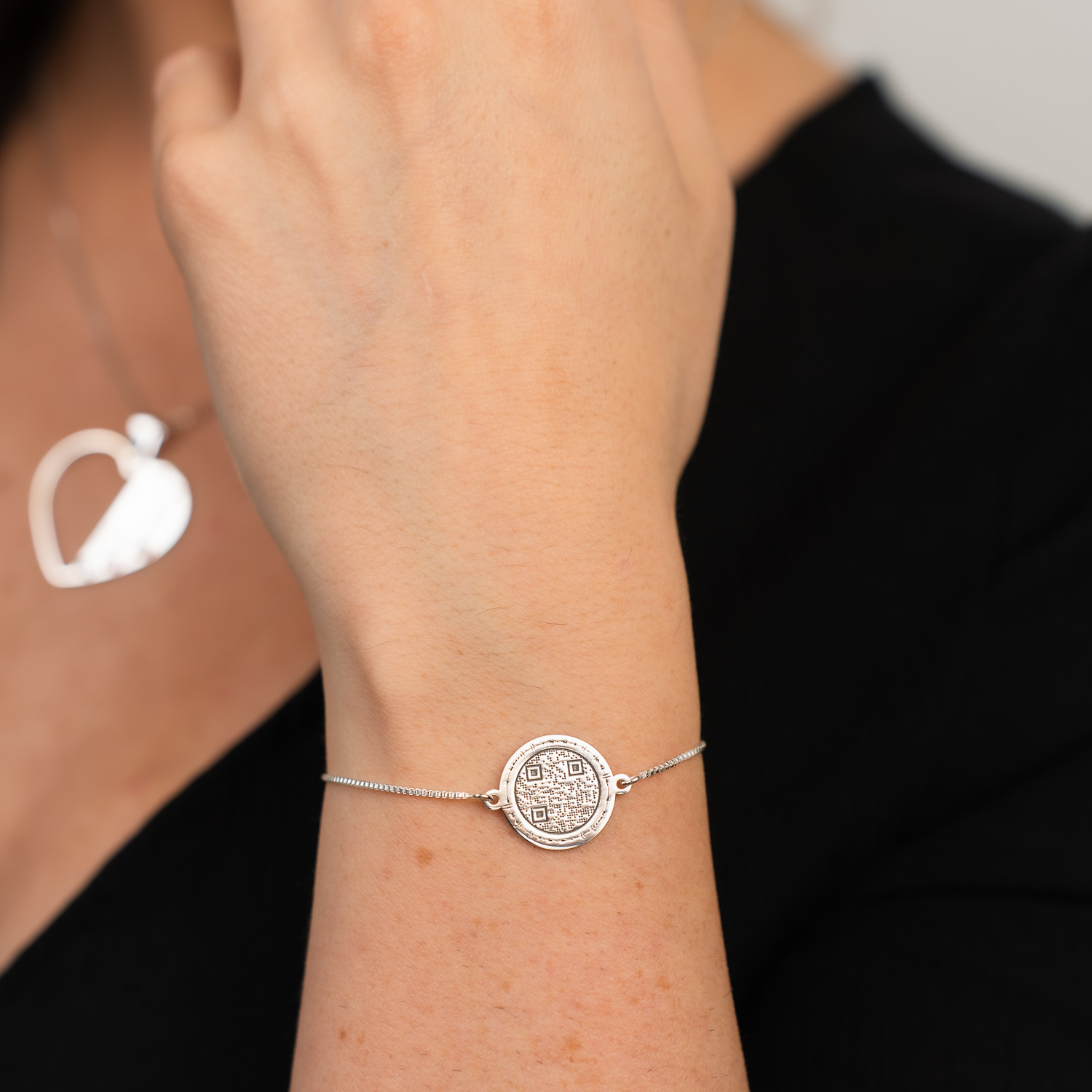 Bratara Iubire transmisa - Banut 16 mm cu amprenta vocala si Qr Code - Argint 925 - Lant glisant