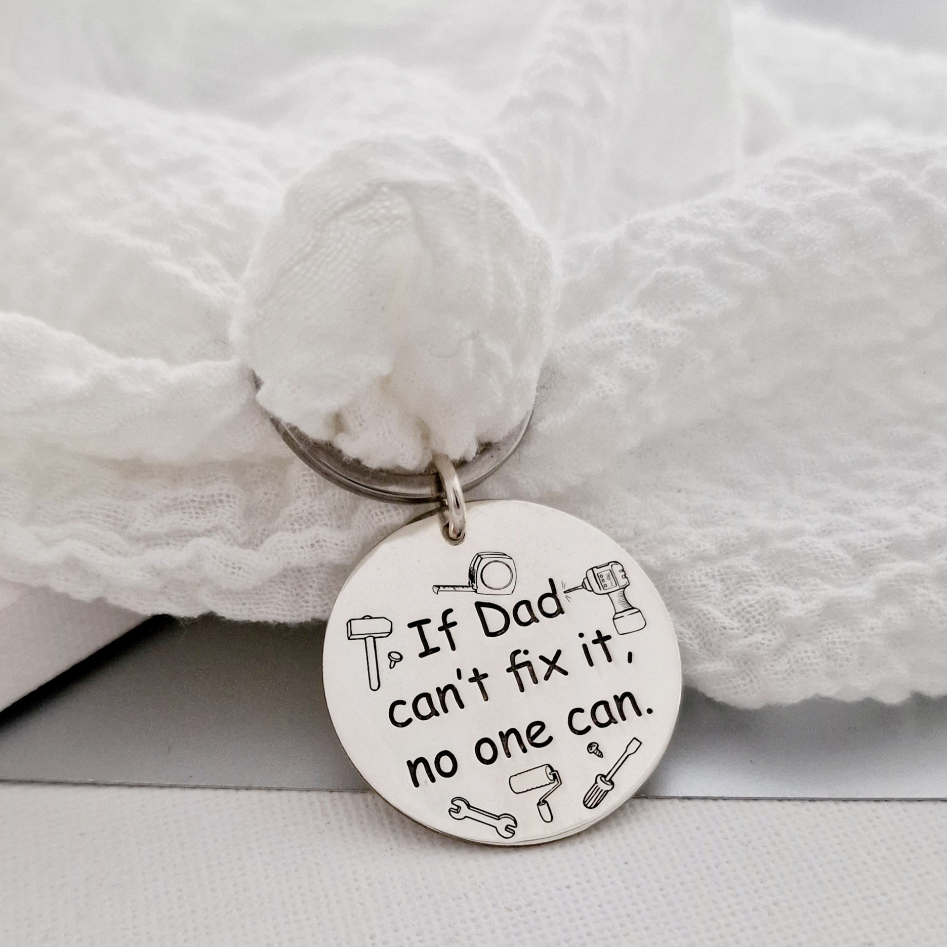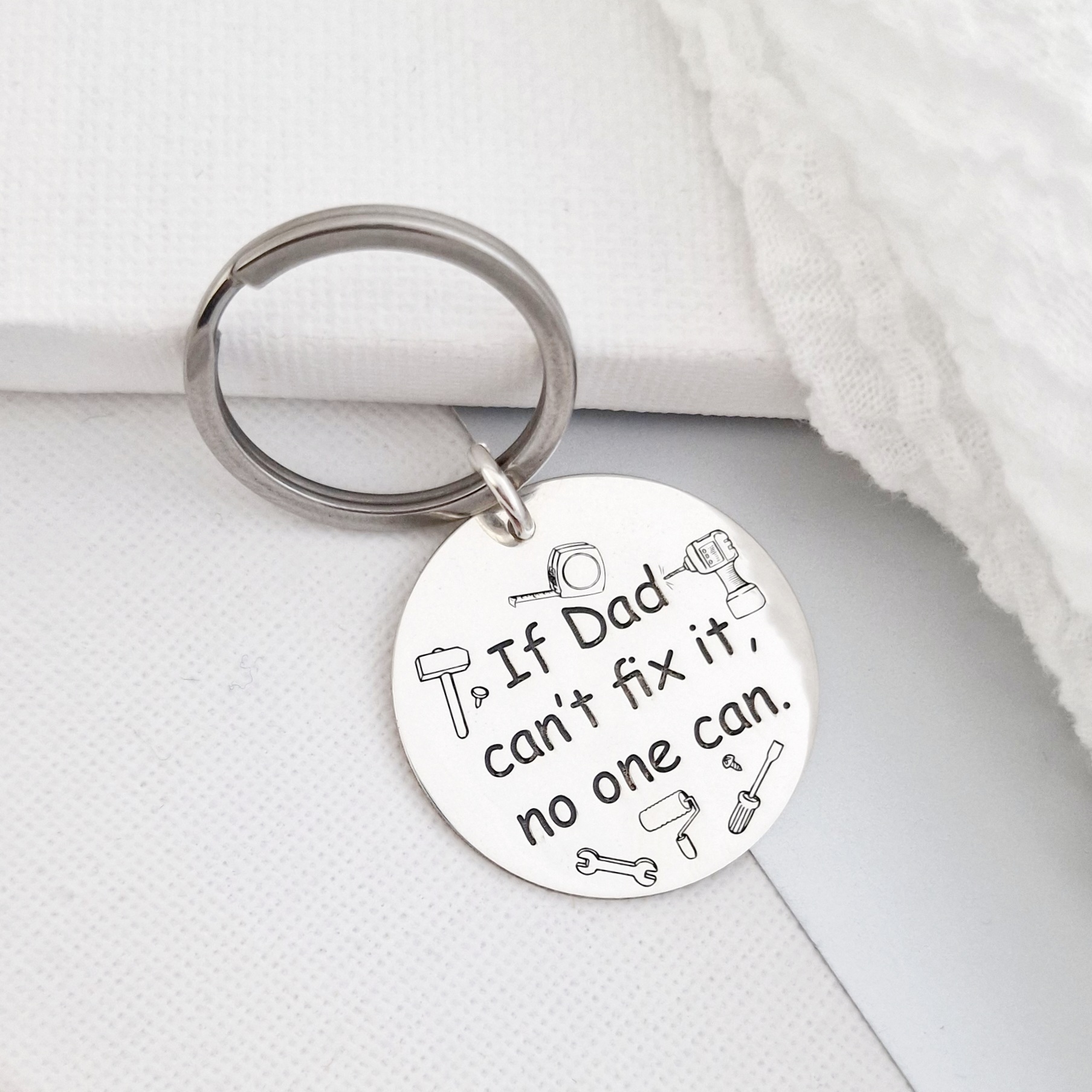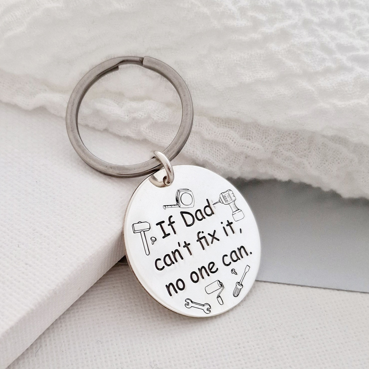 Breloc personalizat - Dad can fix it - Model rotund 30 mm din Argint 925 - Inel otel inoxidabil