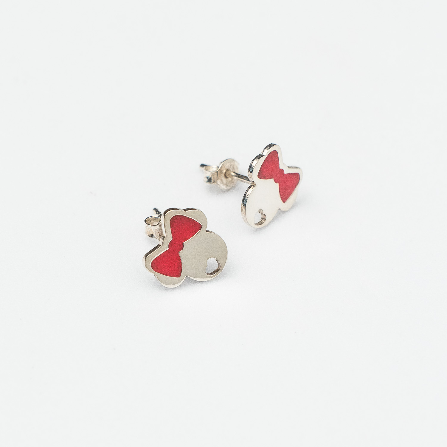 Cercei delicati din argint 925, decorati cu email roz si infatisand un cap de soricel cu fundita roz. Designul adorabil si inchiderea cu tija si fluturas ii fac potriviti pentru purtarea zilnica. Un accesoriu fermecator si usor de asortat!